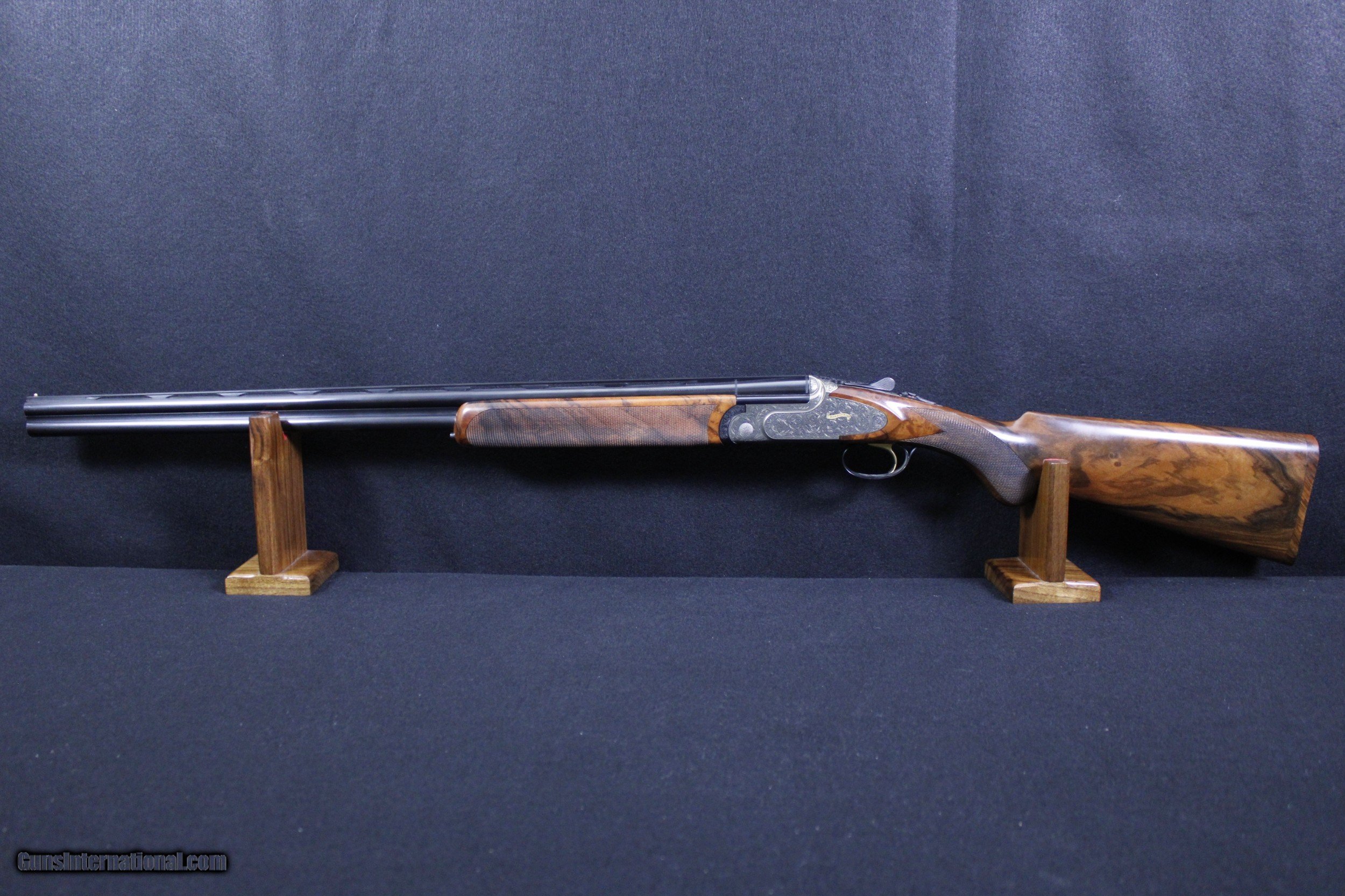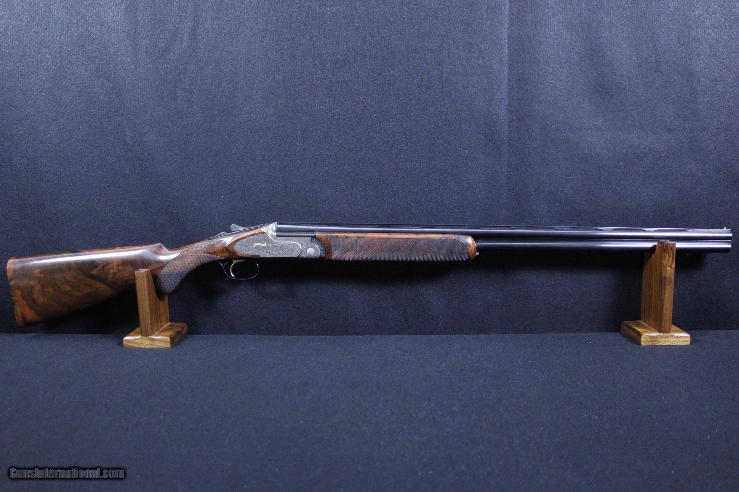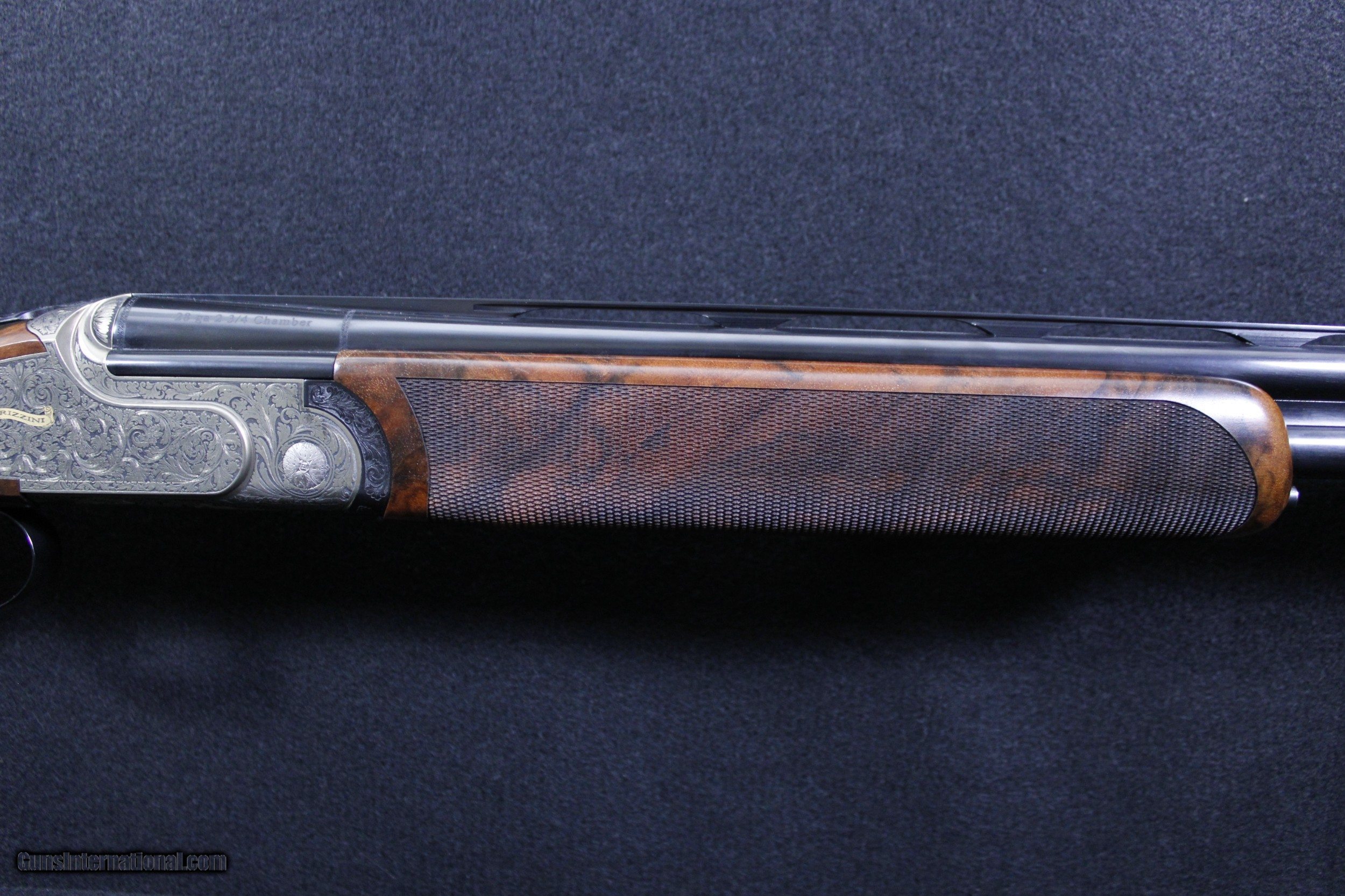Description: New in box Rizzini Artemis Light 28GA with beautiful select Turkish walnut wood. This lockbox, automatic ejectors, single selective trigger shotgun features light alloy sideplates, chrome lined barrels, Prince of Wales pistol grip stock, vent rib and beatiful ornamental scroll engraving. Dimensions are as follows; BBL 28"-2 3/4" chamber, Rizzini Mobil Chokes WT. 5LB 8OZ DIM. 14 1/4" x 1 3/8" x 2 3/8 On Sale!! Was $5295 Now $4295 SOLD |