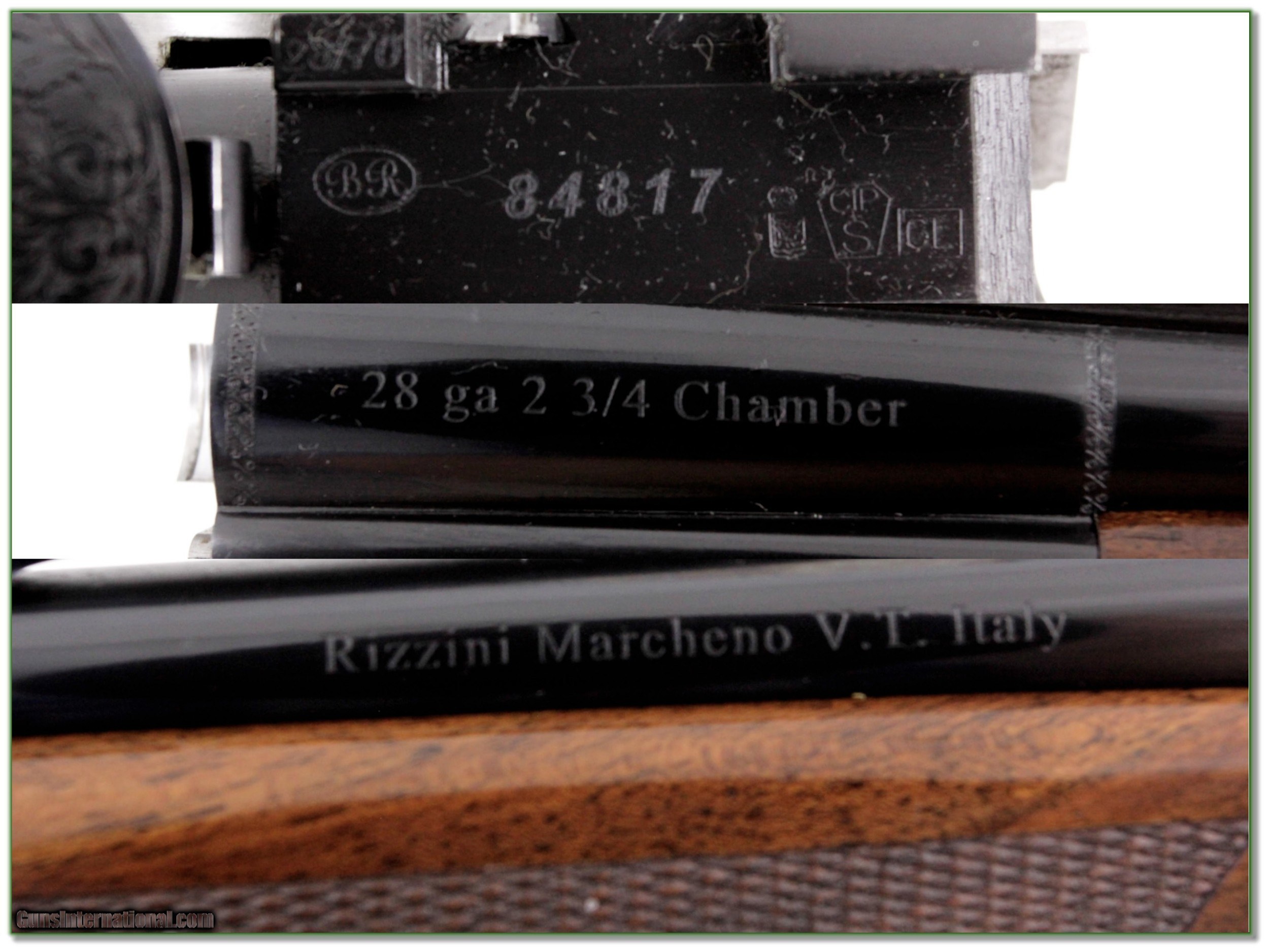 Description: This is a beautiful Rizzini Aurum 28 Ga. It has 28in barrels with choke tubes. It is in excellent condition and comes as seen in case with papers and accessories. I am sure just a few shells fired and I see no marks. I am selling this one on consignment and as such lay-a-way can’t be used. It does of course have the standard 3-day inspection. Shipping with insurance is $59. Please email me with any questions or larger pictures. (Consign your quality firearms with Shooting Investments for only 12%! Let me know if you have any you would like to sell!) 18-0852 Payment: Payment is by Money Order, Cashiers Check or Personal Check. I can now also accept MasterCard and Visa with a 3% convenience fee. PayPal can be used for some items but never firearms. Please let us know if you would like to pay via PayPal. Shipping: The shipping charge will be listed in each description. It is $39 for most long guns and $29 for most handguns. Some heavy guns or those insured for over $2000 will be higher. Shipments to Alaska and Hawaii are higher because air shipment is required. Most firearms are shipped on Tuesday and Thursday and usually in 5 days of receipt of payment. We package all shipments carefully and insure them. For long guns you can purchase a new Plano case for $19. They now cost us $22 when buying 100 at a time. Optics are shipped Priority Mail and most other non-firearm shipments are shipped First Class. Returns: Our return policy is simple. If for any reason you are not pleased with your purchase, you may return your item for a full refund of purchase price. Ammunition cannot be returned. It is important to us that you are happy. Guns cannot be fired or dissembled before returning them and they must be returned in the same condition as received. Notification of a return must occur with-in 3 days of receipt at your dealer. Shipping, convenience and dealer fees are not refundable and are the responsibility of the buyer. Lay-a-way: If needed, we offer a 60 day lay-a-way option on most firearms. It is 1/3 now, 1/3 in 30 days and 1/3 in 60 days. Lay-a-way firearm sales are final and if not completed the first payment cannot be returned. Consigning your firearms with Shooting Investments: We will help you get top dollar for your firearms. While most local guns shops charge 20% or more, our fee is only 12% with a minimum of $75. At your local gun shop it might take months to sell. Selling on-line provides instant access to thousands of interested buyers. You won’t find any other on-line dealer willing to sell your firearms for only 12% or listing every gun on 3 separate s. Selling through an House typically costs the seller 15% and the buyer an addition 15% (so 30%) and you have to wait several months to sell and longer to receive funds. If properly priced, we will sell your firearms in a few weeks. Send us an email or give us a call and we’ll explain how easy it is for you to get top dollar. Trading: Trading for use is really just buying your gun to re-sell. If you have a gun you want to trade, please email a picture and we will let you know what we can give or it. You will always get more if we sell it for you on consignment. Help for California Buyers: We are happy to ship to California. It is the buyer’s responsibility to make sure any item you buy is legal in your state. We are also happy to help with your purchase of a firearm from someone other than us. If you see a gun you would like to buy but the seller can’t or won’t ship to California they can ship to use and we’ll then ship it to your California dealer. The cost for this service is only $30 + shipping. Let us know if we can help! SOLD |