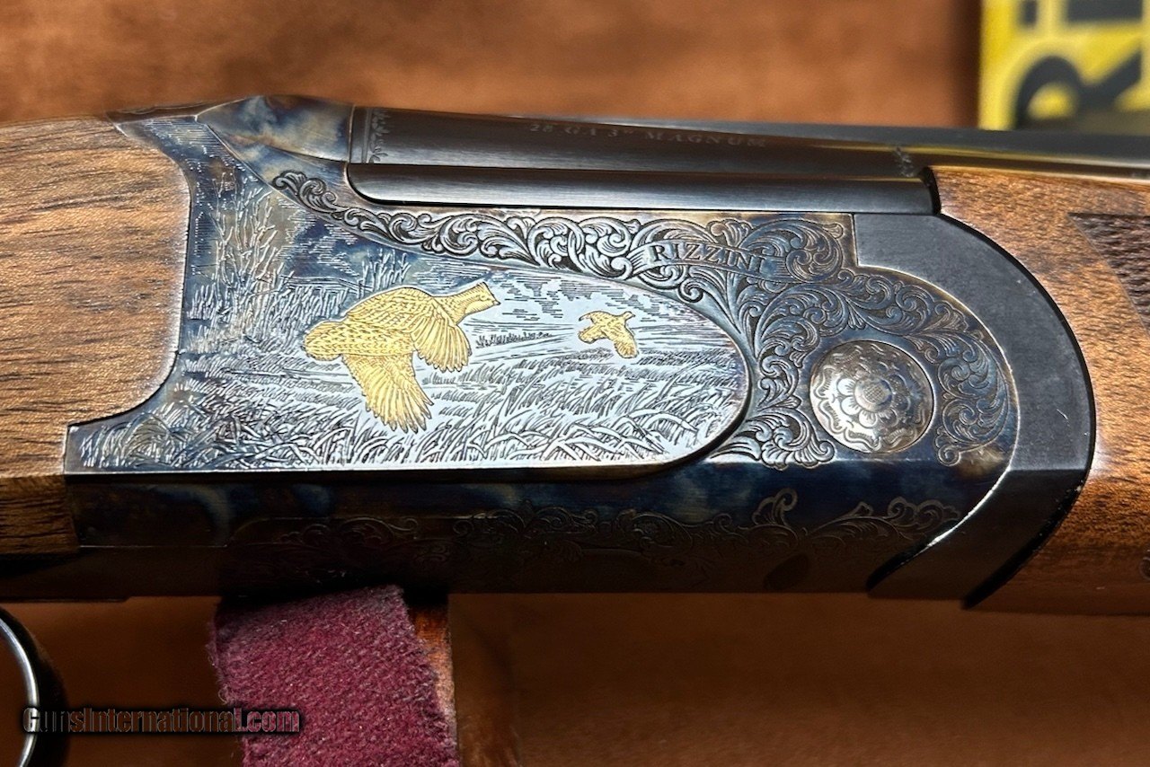 Description: Just Arrived at Royal Sporting Arms | Rizzini Aurum EVO Classic 28GA 28" Over-Under Shotgun | NEW The New Aurum Evo Classic is an upgraded evolution of the proven Aurum field gun. It distinctly separates itself from the BR110 line with a select-grade Prince of Wales stock and enhanced game scene plus ornamental scroll engraving on the case colored frame, offering a refined shooting experience. Features of the Rizzini Aurum EVO Classic 28GA 28" | 141107: