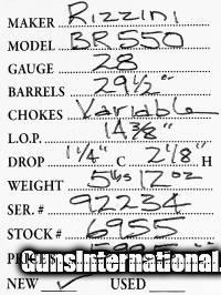 Description: Rizzini BR 550 RB 28 gauge SOLD Serial Number: 92234 Barrels: 29 1/2 Stock Comb: 1 1/4 Stock Heel: 2 1/8" LOP: 14 3/8 Weight: 5lbs 12oz Chokes: Variable |