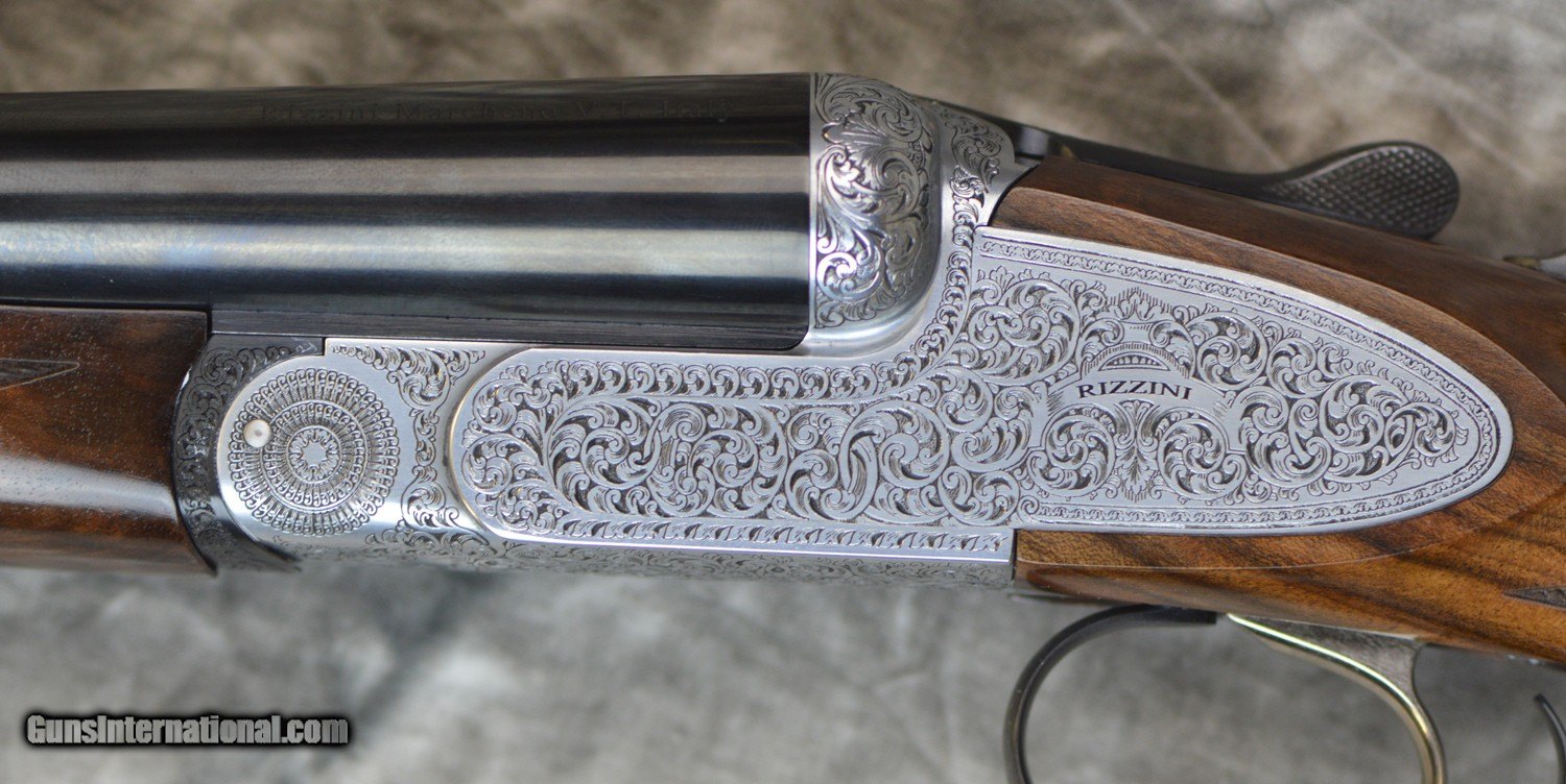 Description: New Rizzini BR552 Boxlock Ejector side by side field 12GA with 29" factory choke tubed barrels, coin finished action with fully engraved side-plates. Factory single selective trigger, factory English straight-hand stock to removable wooden butt plate, splinter forearm. Includes factory case, chokes and tools. SOLD Shotgun Gauge: 12 Gauge |