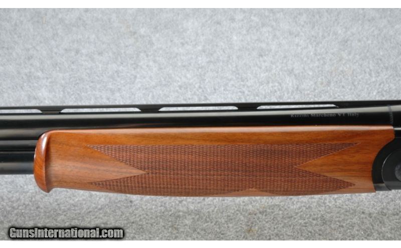 Description: Rizzini's BR110 Over & Under Shotgun's alloy frame is scaled to the gauge for the perfect balance and swing. Matte-black, low-profile receiver combines with a nickel-chrome steel vent-rib barrel with chrome-lined bore. Deeply blued barrel and action for long-lasting durability. Handsomely finished Turkish-walnut pistol-grip stock and Schnabel forearm with 26 lines-per-inch checkering provide a sure grip in any condition. Other highlights include heavy-duty ejectors, oversized ejector cams, manual safety, front bead sight and single selective trigger. Includes five interchangeable screw-in choke tubes – cylinder, improved cylinder, modified, improved modified and full. New in Factory Case SOLD Manufacturer: 2018 Caliber Info: 12 Gauge Chambers: 3 inch Metal Condition: NEW Wood Condition: NEW Bore Condition: NEW Barrels: 28 inch barrels Triggers: Single selective trigger Stock: Checkered walnut pistol grip stock Stock Dimensions: 14 5/8 inch LOP Fore End: Checkered walnut fore end with Schnabel tip Butt Pad: Factory rubber pad Weight: 7 lbs. 5 oz. Sights: Vent rib with single bead Chokes: Five interchangeable screw-in choke tubes ¿ cylinder, improved cylinder, modified, improved modified and full Extras: Box and accessories Item Location: Lehi, UT |