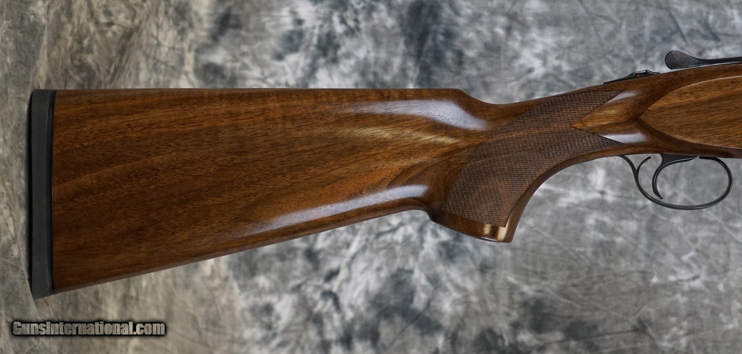 Description: New Rizzini BR110 Game 12GA with 28" factory choke tubed barrels, narrow parallel game rib and solid side-ribs. Factory selective trigger, blued action. Factory Purdey style pistol grip stock and fully checkered round forearm. Includes factory case, chokes and tools. SOLD Shotgun Gauge: 12 Gauge |
