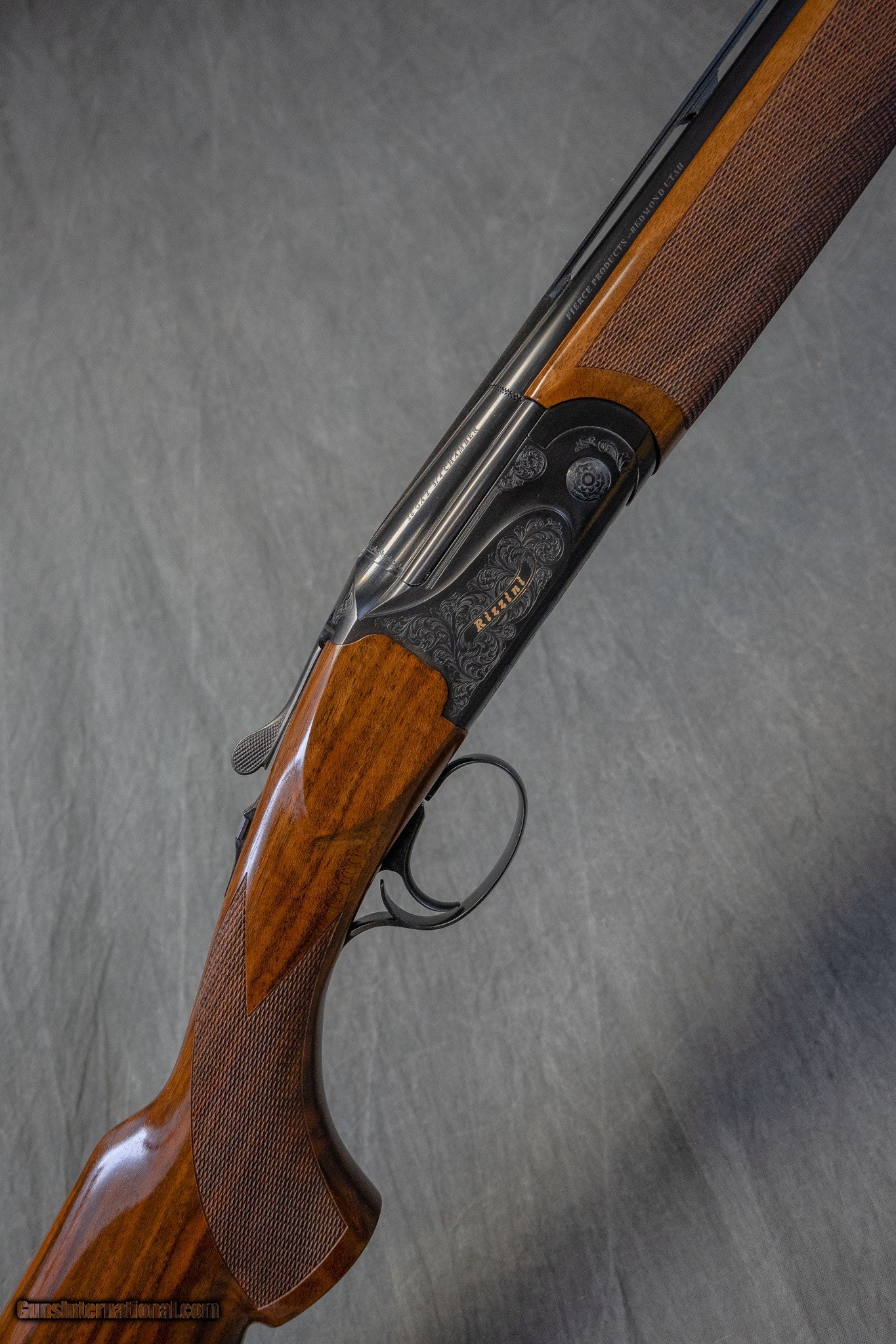 Description: Specifications Maker:RIZZINI Model:BR 110 LIMITED Gauge/Caliber:28 GA Barrel Length:29" Chambers:2 3/4" Rib Design:FLAT VENTED Weight:6 lbs 1 oz Bore/Chokes Choke Tubes:5 NICKEL-COATED FLUSH CHOKES: C, IC, M, IM, & F Stock Dimensions Drop At Comb:1 7/16" Drop At Face:1 13/16" 4 1/2" Drop At Heel:2 5/16" Cast At Face:1/16" OFF 4 1/2" Cast At Heel:1/8" OFF Length Of Pull:14 3/4" Pitch:3 1/2" / 7° Special Features: *LIMITED RUN* *PAINTED QUAIL GAME SCENE ON BOTTOM OF RECEIVER* *UPGRADED HIGHLY FIGURED OIL FINISHED TURKISH WALNUT STOCK* ORNAMENTAL SCROLL ENGRAVING BLACK COLORED RECEIVER SINGLE SELECTIVE TRIGGER EJECTORS PISTOL GRIP STOCK ROUNDED FOREARM MANUAL SAFETY MADE IN ITALY MAKERS HARD CASE CONDITION: NEW CIRCA: NEW/ SERIAL # 119794 NUMBER: N8813 PRICE: $2595. SOLD |