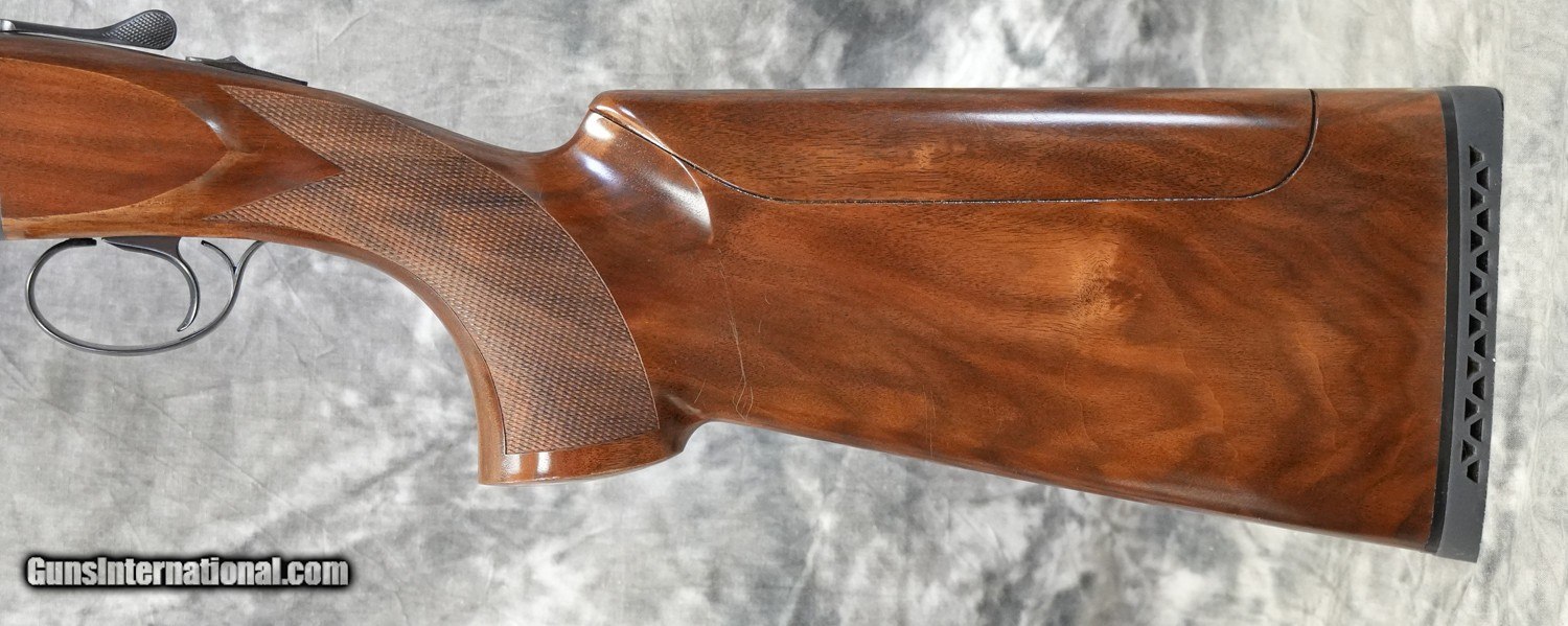 Description: Pre-Owned B. Rizzini BR110 Olympic Trap 12GA with 30" fixed choke (IM/F) barrels, parallel trap rib. Matte blue receiver with only minor wear, non-selective trigger. Factory pistol grip trap stock with right-hand palmswell, factory ad. comb and beavertail forearm. Minor scuffs and scratch on stock. Includes case, tools. SOLD Shotgun Gauge: 12 Gauge |