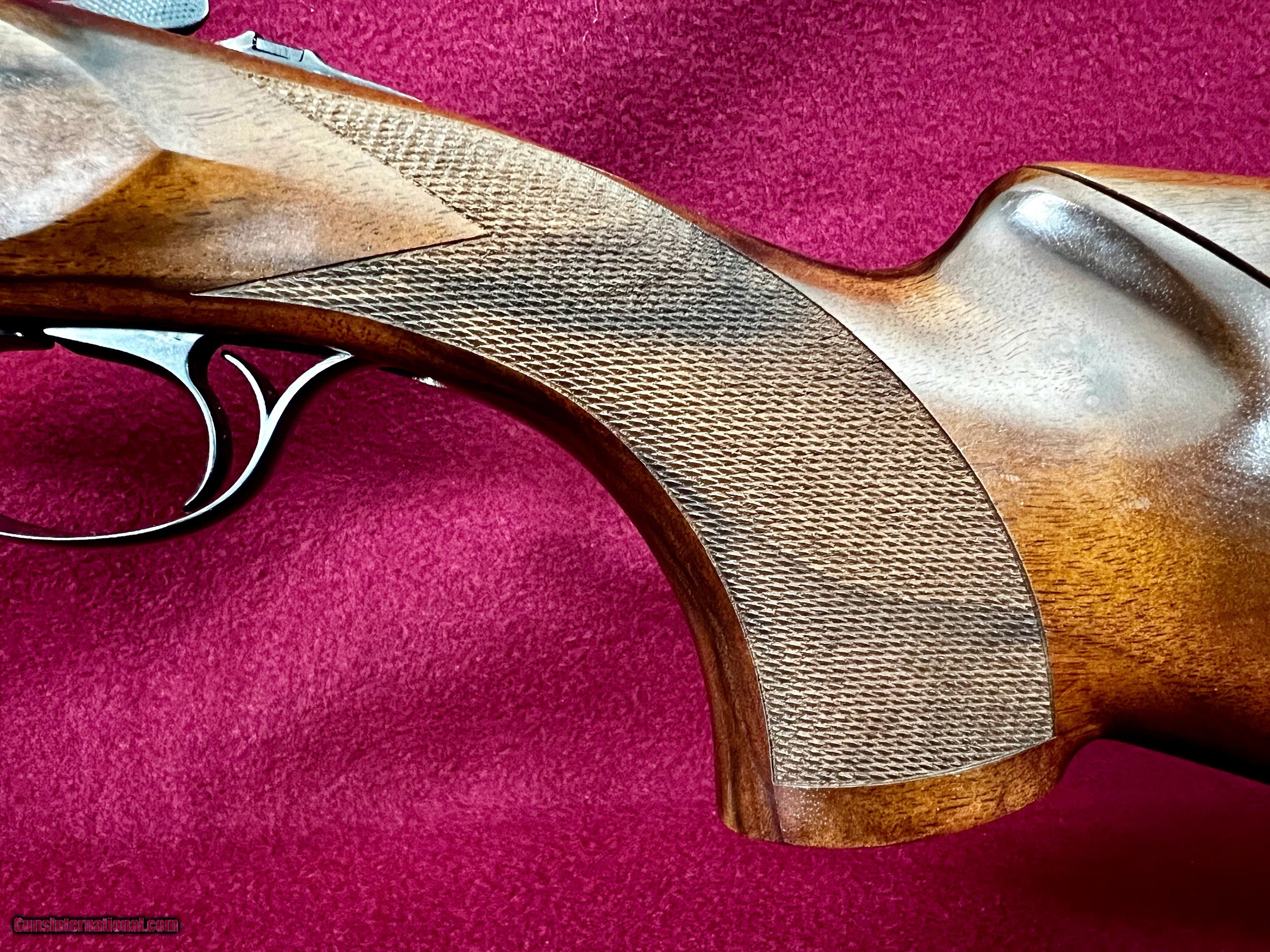 Description: I have for sale a like new Rizzini BR110 Sporter in the fun to shoot 410 gauge. These are great little guns, well balanced and fun to shoot. The gun has 30 inch, vent ribbed barrels and comes with everything it came with from the factory. The gun features single selective trigger, ejectors, 26 lines per inch checkering, and a weight of 6.5 pounds. The grade 2 turkish walnut stock has dimensions of 1 3/8 X 2 1/4 X 14 3/4 over the original thin pad. The stock has a factory adjustable comb which is only available on the Sporter Model. The gun came from the factory with 5 flush choke tubes and two additional tubes have been added, Cylinder, skeet, skeet, Improved cylinder, modified, improved modified, and full, giving you an excellent assortment to cover any situation. Condition of this gun is a conservative 98% or higher, basically as new with only the very smallest of impressions. Take a look at the pictures and I believe you will agree this is a very nice little gun that is still tight as new. Price of the gun is $2550 plus $50 shipping to your FFL. As always there is a three day non-firing inspection period with the buyer paying all shipping charges if returned. SOLD Shotgun Gauge: .410 Gauge Manufacturer: Rizzini Model: 110 Sporter Barrel Length: 30 Chambers: 3 Inch Ejectors: Selective Well Timed Condition: As New in Luggage Case Action: Boxlock Triggers: Single Selective Stock: Grade 2 Turkish Walnut Stock Comb: 1 3/8 Stock Heel: 2 1/4 Fore End: Field Style Butt Pad: Factory Original LOP: 14 3/4 Rib: Vent Rib Weight: 6.5 pounds Sights: Front and Middle Bead Chokes: 7 Flush Tubes Extras: Manual, stock tools, etc Case: Factory Hard Plastic |