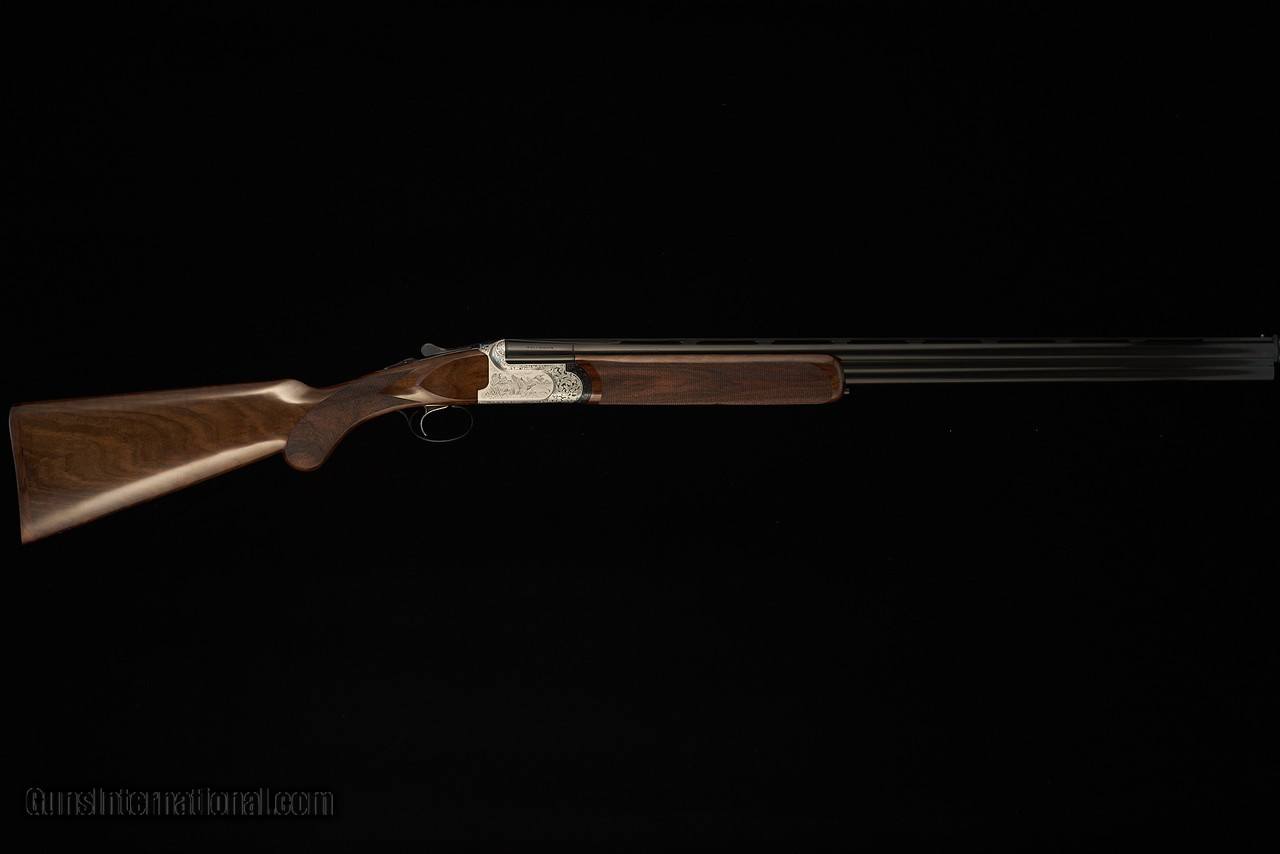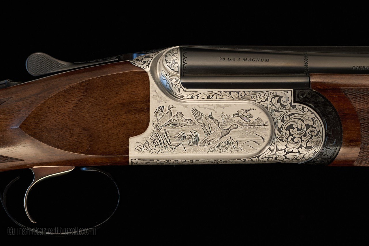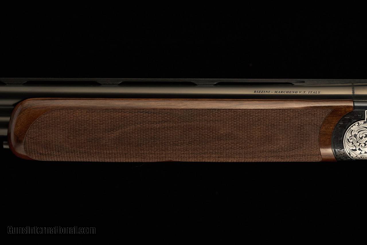 Brand new Rizzini BR220 in 20ga with 28” barrels, featuring a selective trigger, screw-in chokes, solid side ribs, and ventilated top rib. The coin-finished action is adorned on the side panels with game bird motifs and hand-chased scroll on the remainder. The Prince-of-Wales stock and rounded forearm are made of Turkish walnut with semi-gloss oil finish over a nicely blended wooden buttplate. Barrel selection is done via a safety-mounted toggle in the traditional Italian fashion.