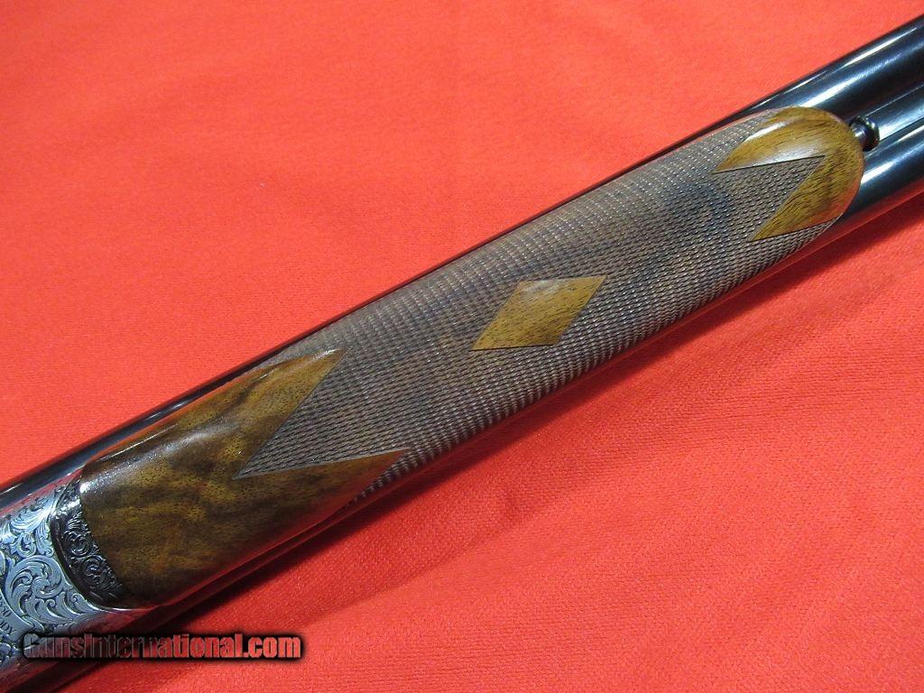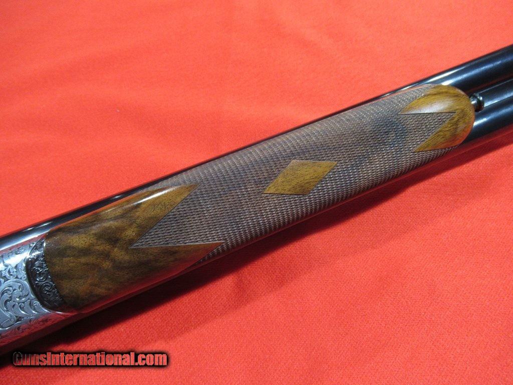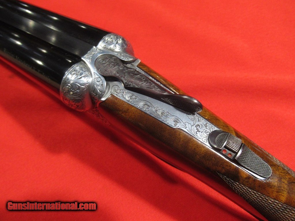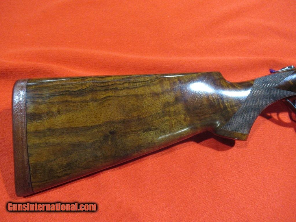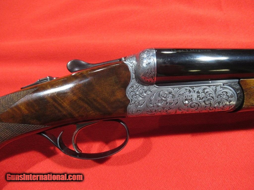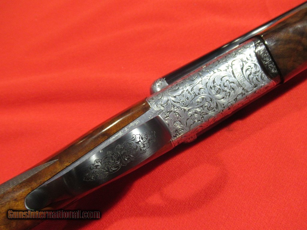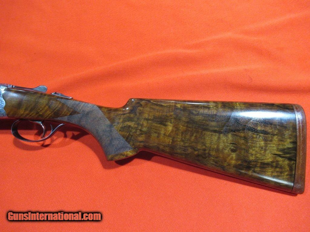 Description: Rizzini BR550 12ga/29" Multichoke -- Coin finished round body boxlock with full coverage ancanthus scroll engraving, upgraded pistol grip stock and semi-beavertail forend, single selectiver trigger, and a very well-executed leather covered recoil pad. This gun measures 1 1/2" x 2 3/8" x 14 3/4". It weighs 6lbs 15oz. This gun has been fired approximately 200 times and remains in virtully new condition. It includes the factory Negrini case, five choke tubes, and the wrench. This is a very nice gun overall for the money. SOLD |