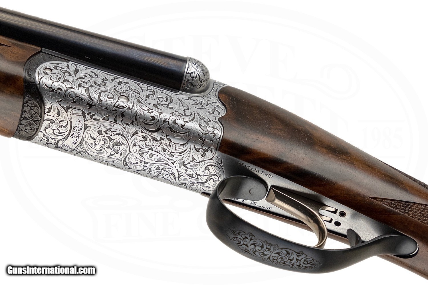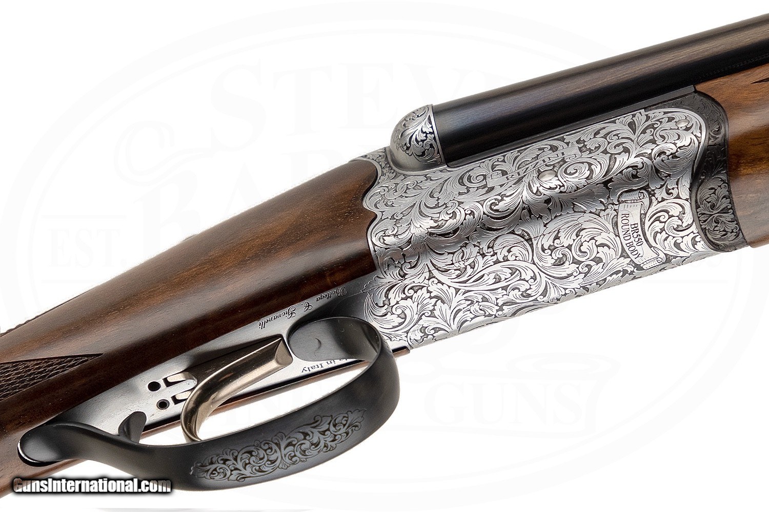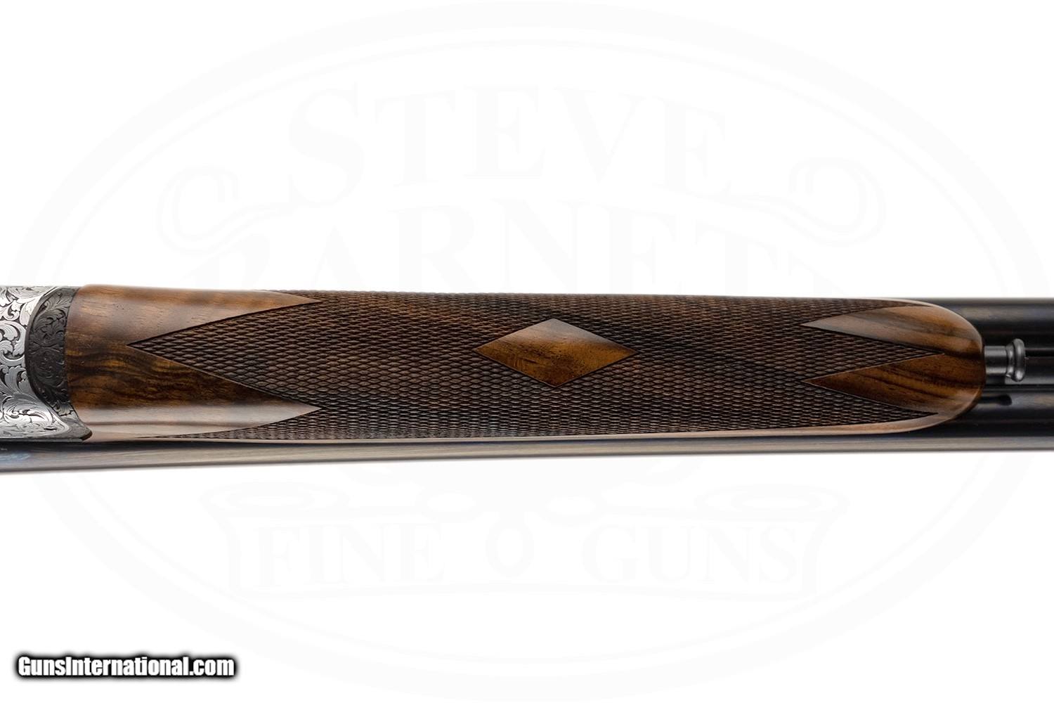 Description: SN# 922XX BOTTEGA GIOVANELLI ENGRAVED 29" SOLID RIB BARRELS WITH SCREW IN CHOKES CHOKES: CYL, IC, MOD, IMP MOD, MOD, FULL 2 3/4" CHAMBERS SINGLE SELECT TRIGGER EJECTORS SLINTER FOREARM PISTOL GRIP CHECKERED WOOD BUTT PLATE EXCELLENT LIKE NEW CONDITION MAKERS CASE 5LBS 11 OZ 2 1/2" DAH 1 5/16" DAC 14 1/2" LOP SOLD |