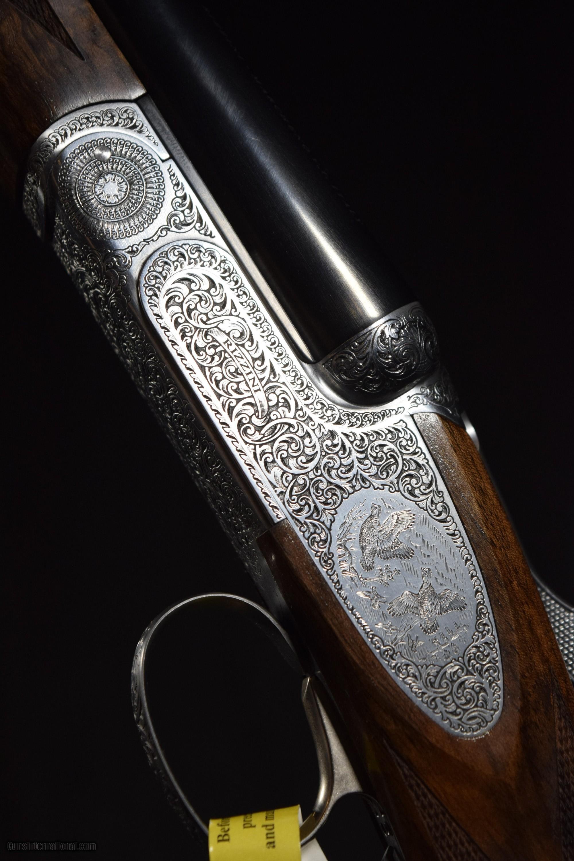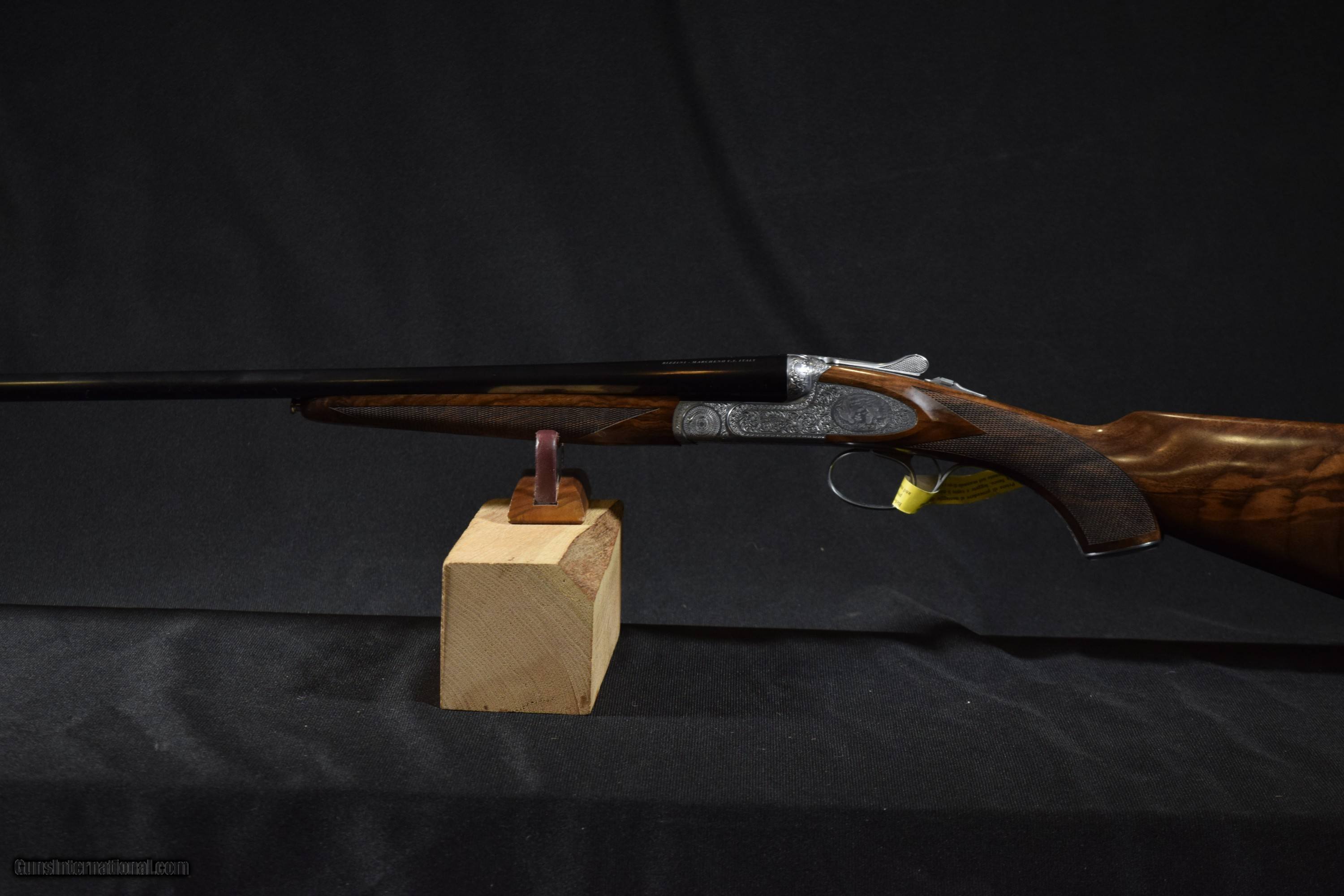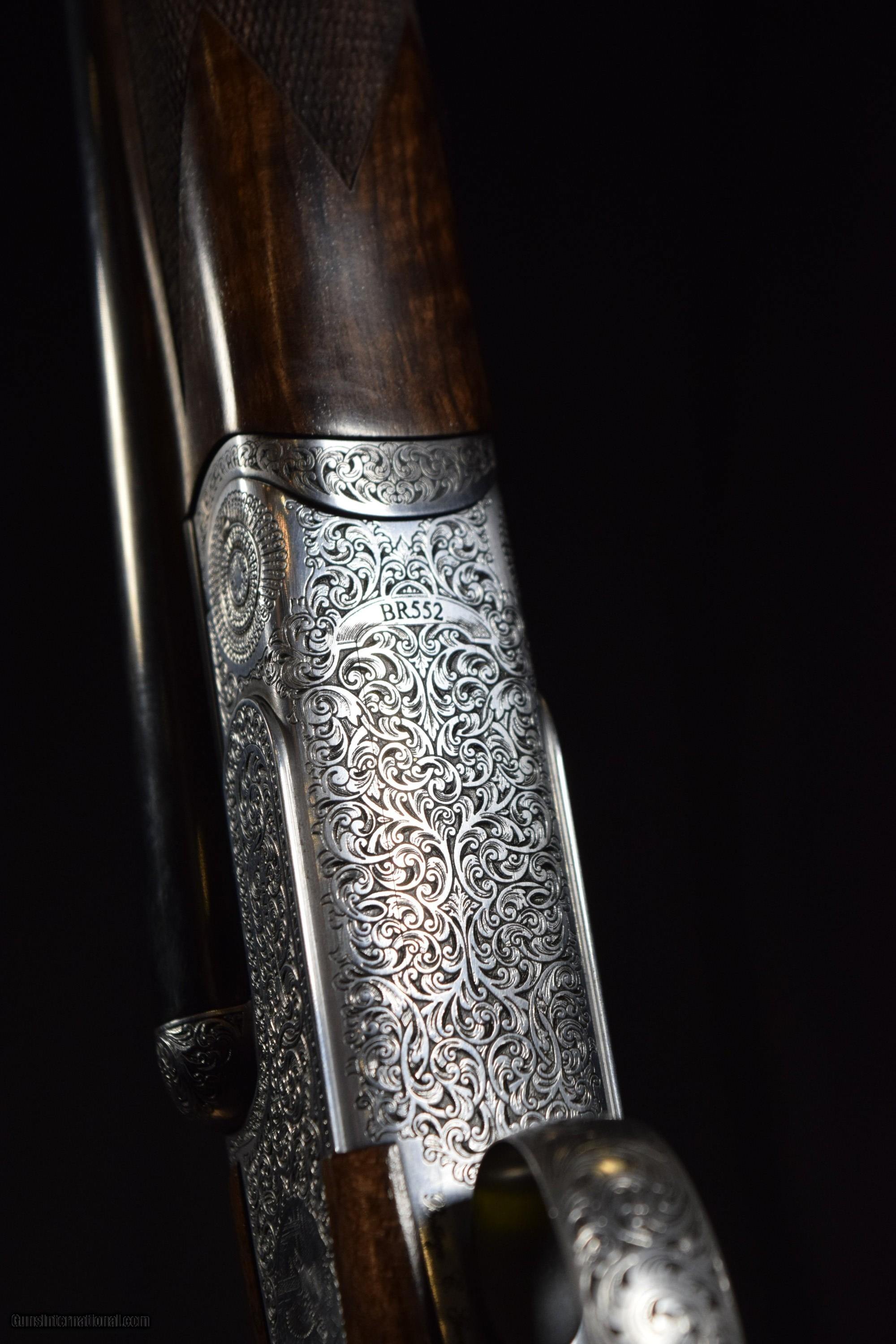 Description: The BR552 side-by-side model is built with tradition and quality in mind. The monolithic frame is scalloped with an attractive streamlined design. This design is enhanced by an ornamental scroll engraving on the frame and side plates. The BR552 features several technical devices devised for long-lasting performance and increased safety. Rizzini BR552 Special Deluxe 28Ga 29"