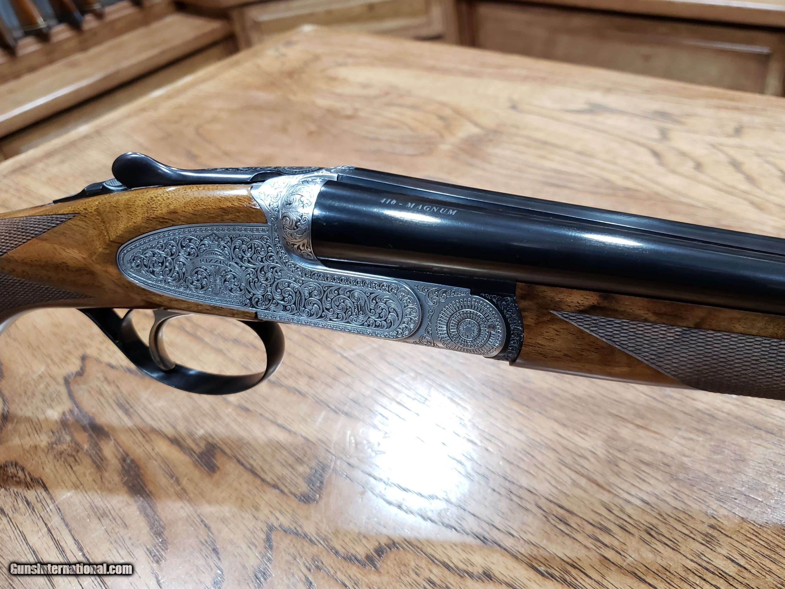 ------------------------------------------------------------- WE BUY GUNS AND GUN COLLECTIONS! We're always looking for any mid to high-grade shotguns whether collectible or shooter-grade. Send us an email with photos or give us a call. We will travel. Store Info: South Georgia Outdoors is located at 260 4th St SE in Cairo, GA 39828. Phone 229-378-4534. Store hours: M-F 8a-6p and Saturdays 8a-4p est. Closed Sundays. Payment: We accept Visa, M/C, Discover & Amex, USPS Money Orders, Cash (for local pick up only), and business and cashier's checks. Checks are held until cleared. GA residents are subject to 8% sales tax. Shipping: Firearms ship to FFL holders in the lower 48 states for a flat $30 unless stated otherwise. AK and HI extra. Heavy guns or guns requiring extra insurance will be higher. We usually ship within one to two business days upon receipt of payment and the receiving dealer's FFL. Returns: If you're not pleased with your purchase, you can return it for a refund minus the actual shipping and insurance charges. Return shipping and insurance charges are the buyer's responsibility. Notification of intent to return must take place within 3 days of the gun's arrival at your local FFL dealer. Guns cannot have been fired and must be returned in the same condition as they were received. SOLD Shotgun Gauge: .410 Gauge |