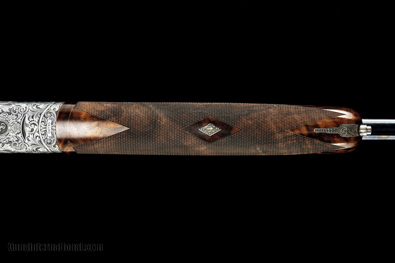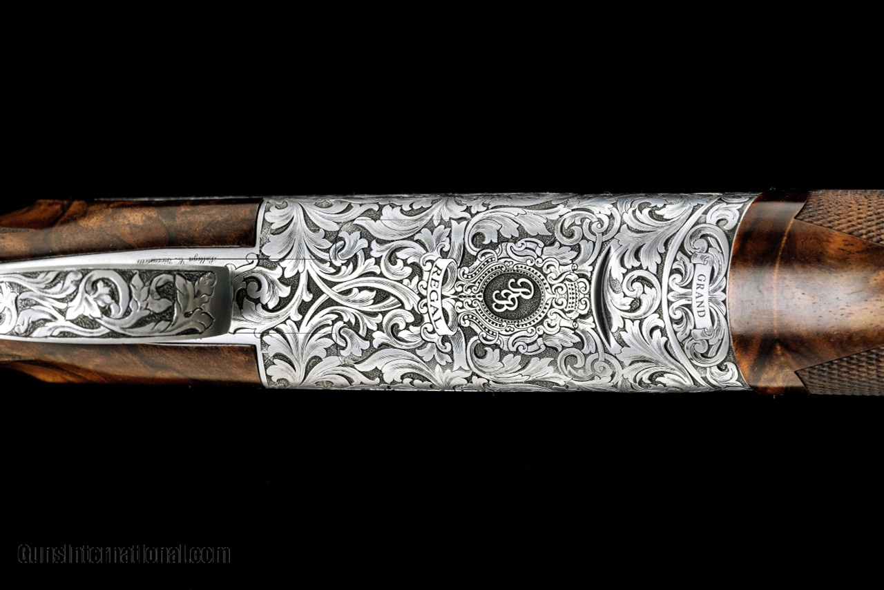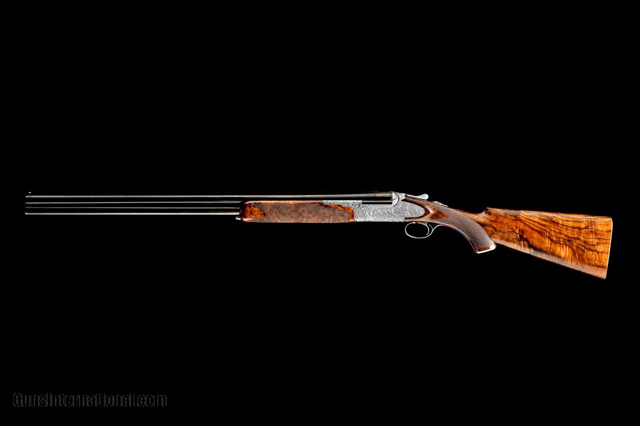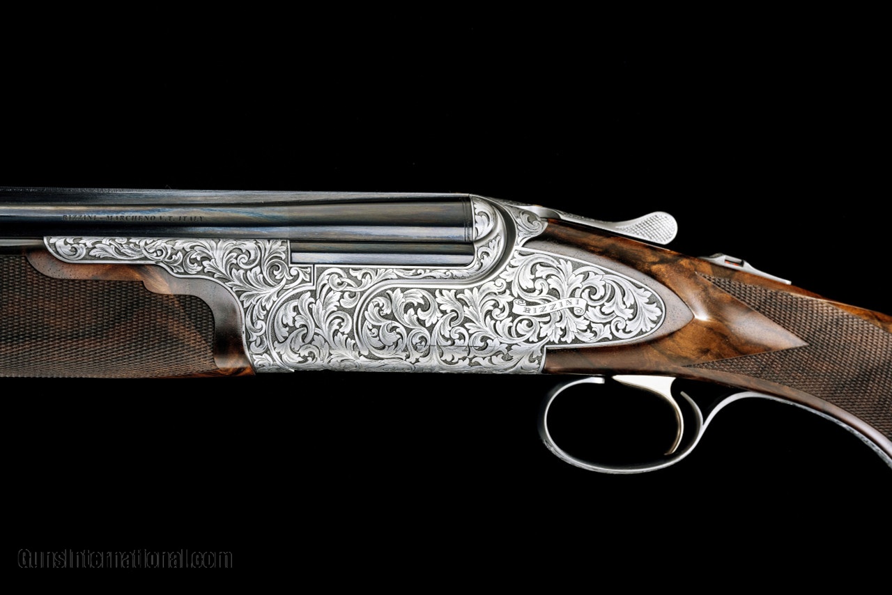 Description: Rizzini Grand Regail Deluxe 16ga True Matched Pair Number 1 & 2 and are consecutive serial numbers the guns have 29" barrel, screw in chokes, solid flat filed rib to a brass bead. The gun features a true Prince of Wales grip with a long trigger gaurd to the grip cap. These guns were especially made for Gordy & Sons and feature our G&S logo on the grip cap. The engraving done by Bottega Giovenelli is beautifully done in a deep releif scroll with a pheasant game scene on the rear of the side plate. SOLD Manufacturer: Rizzini Caliber Info: 16 Gauge Barrels: 29 Action: Over / Under Triggers: single selective Gauge Info: 16 Gauge Stock Comb: 1 1/2 Stock Heel: 2 1/4 Stock Cast: 1/8 off LOP: 14 1/2 Rib: solid flat filed Weight: 7.11 Chokes: screw in chokes |