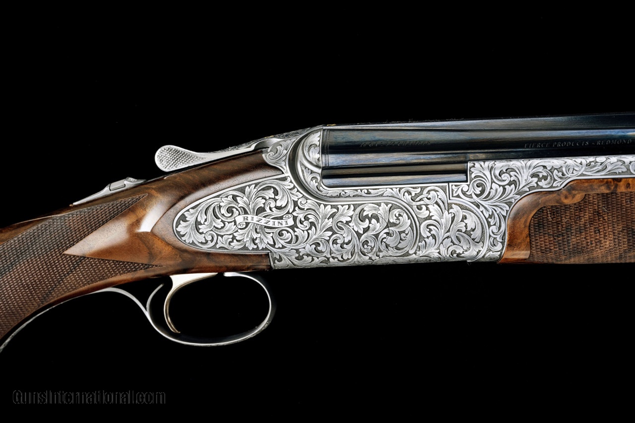 Description: Rizzini Grand Regail Deluxe 16ga True Matched Pair Number 1 & 2 and are consecutive serial numbers the guns have 29" barrel, screw in chokes, solid flat filed rib to a brass bead. The gun features a true Prince of Wales grip with a long trigger gaurd to the grip cap. These guns were beautifully engraved in a deep relief scroll. Price listed is per gun in pair. SOLD Manufacturer: Rizzini Caliber Info: 16 Gauge Barrels: 29 Action: Over / Under Triggers: single selective Gauge Info: 16 Gauge Stock Comb: 1 1/2 Stock Heel: 2 1/4 Stock Cast: 1/8 off LOP: 14 1/2 Rib: solid flat filed Weight: 7.11 Chokes: screw in chokes |