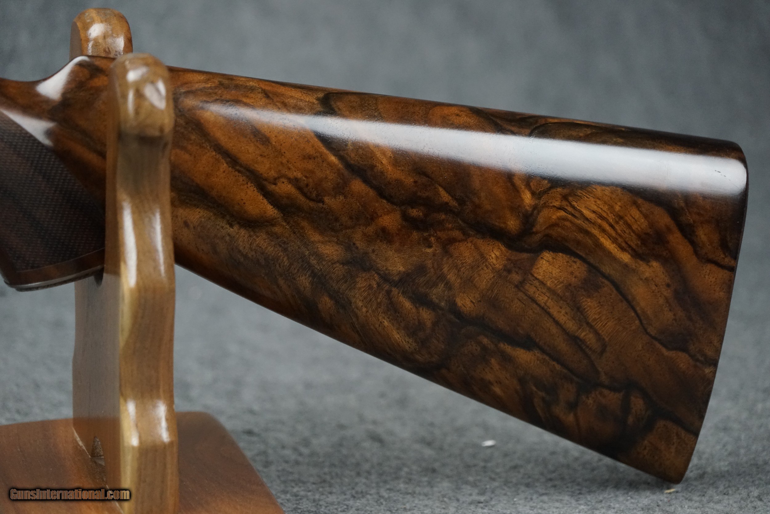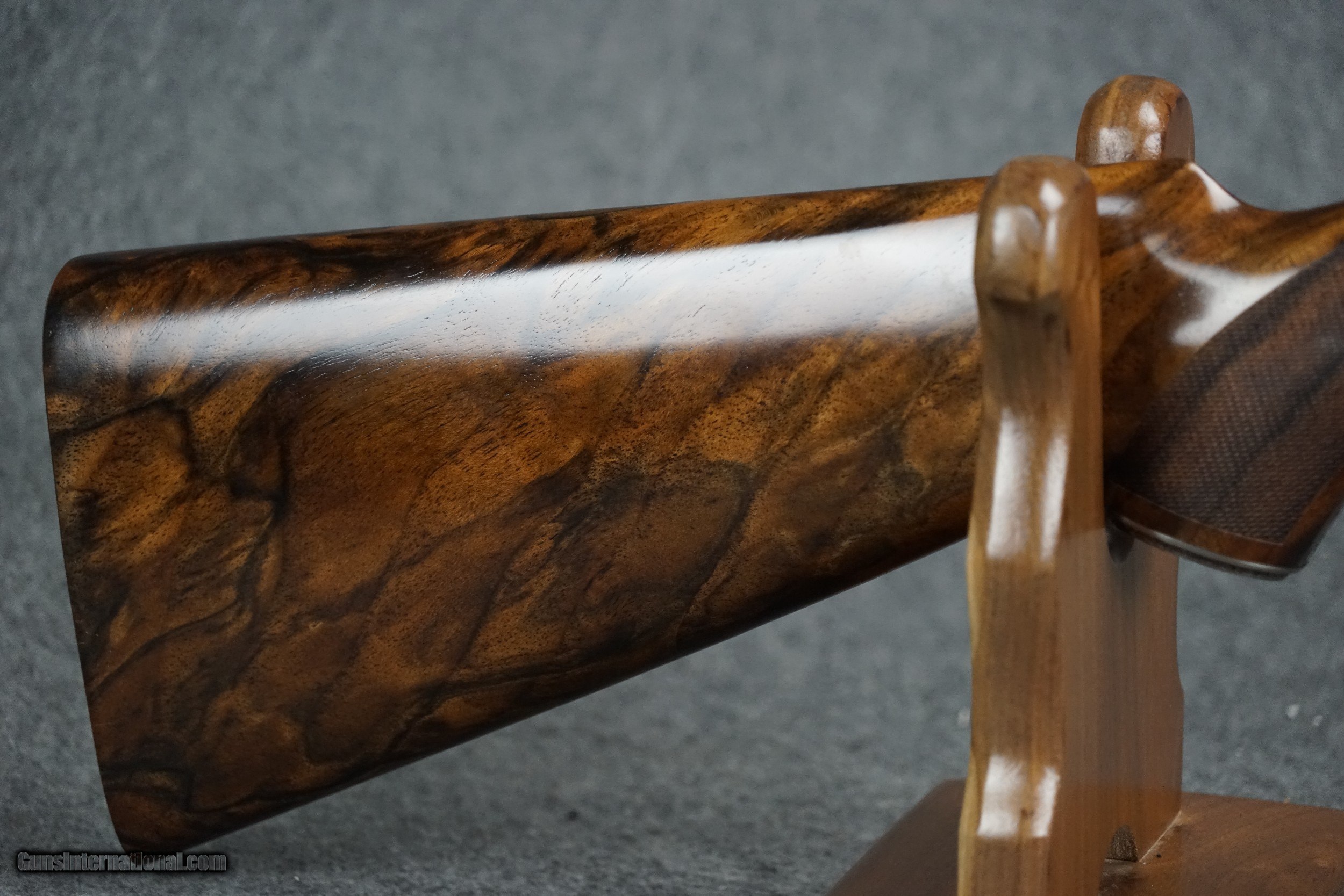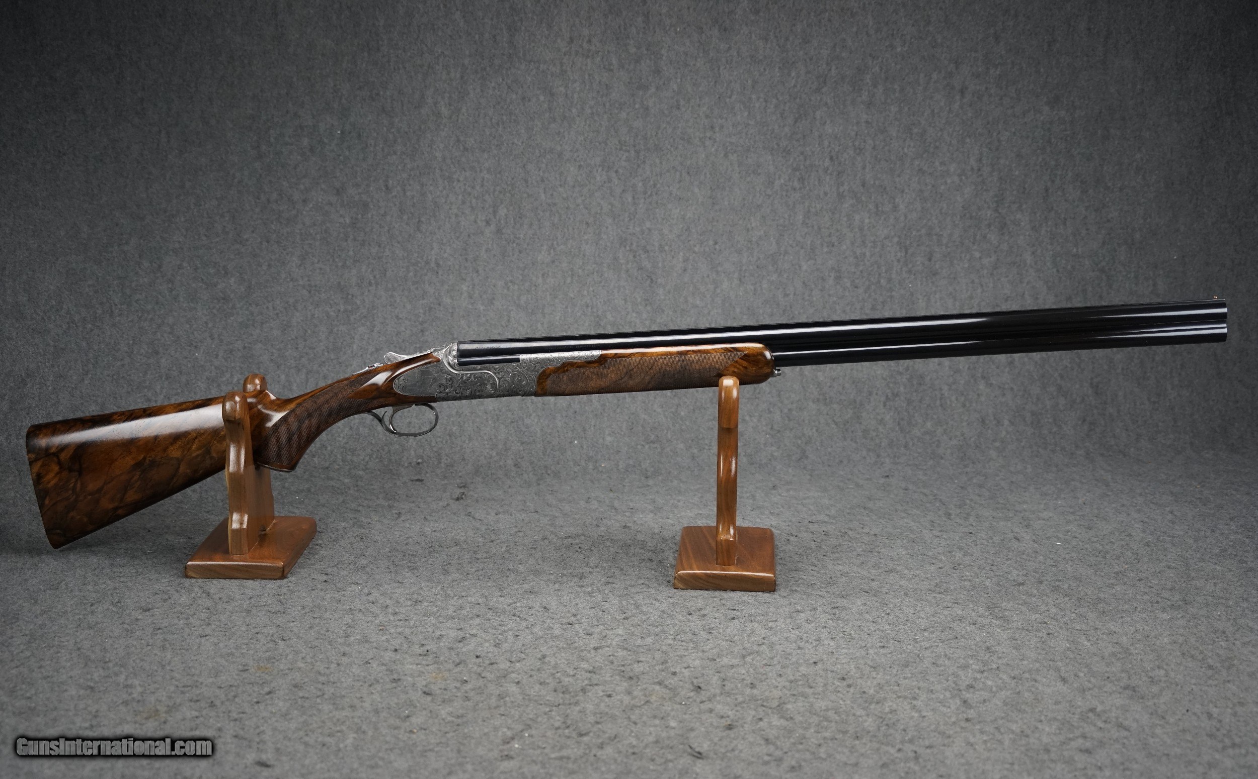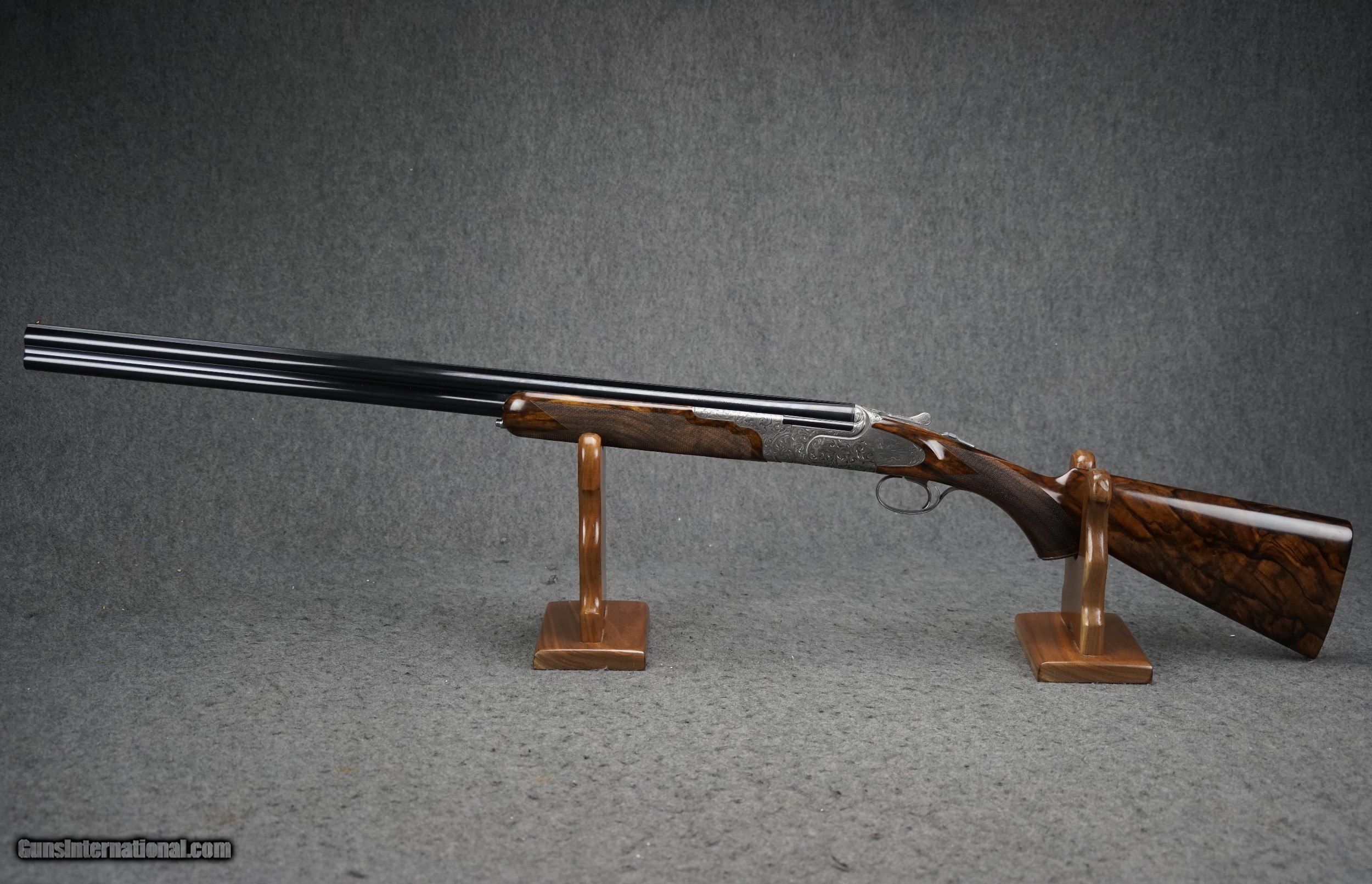 Description: Rizzini USA Grand Regal Extra 20ga 29" barrels, screw in chokes, solid flat filed rib to a brass bead. The gun features a true Prince of Wales grip with a long trigger guard to the grip cap. This Grand Regal Extra features luxurious full coverage engraving. The engraving is done by the masters at Bottega Giovenelli it is executed in deep relief scroll with bulino quail game scene on the rear of the side plate. Features Full Set of Flush Choke tubes Grade 5 wood Stock Upgrade Roundbody Steel frame with sideplates + Hand finished scroll engraving Sideplate game scene. Engraved trigger guard and extended trigger tang. Flawless hand finished Rizzini internal mechanics, components + classy engraved, extended trigger tang Barrels: 29 Action: Over / Under Triggers: single selective Gauge: 20ga Stock Comb: 1 1/2 Stock Heel: 2 1/4 Stock Cast: 1/8" off LOP: 14 1/2 Rib: solid flat filed Chokes: screw in chokes This Rizzini is extremely dynamic and nimble, makes absolute puff balls out of clays on the course and dominates in the field. This Purpose built Regal Elite is a joy to carry and points exceptionally well, a true representation of what a top tier Rizzini is supposed to be. SOLD Shotgun Gauge: 20 Gauge Manufacturer: Rizzini Model: Grand Regal Extra Barrel Length: 29 |