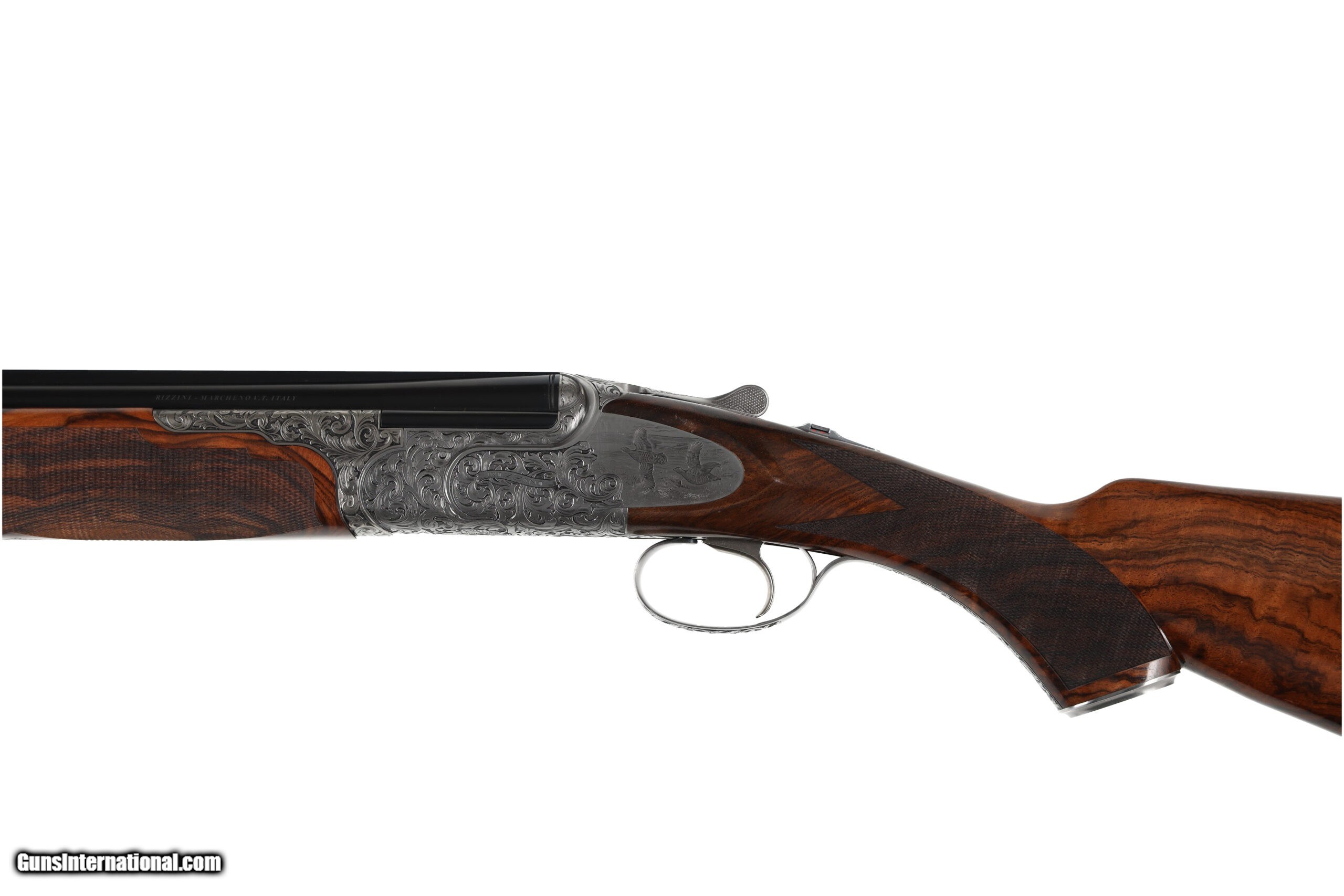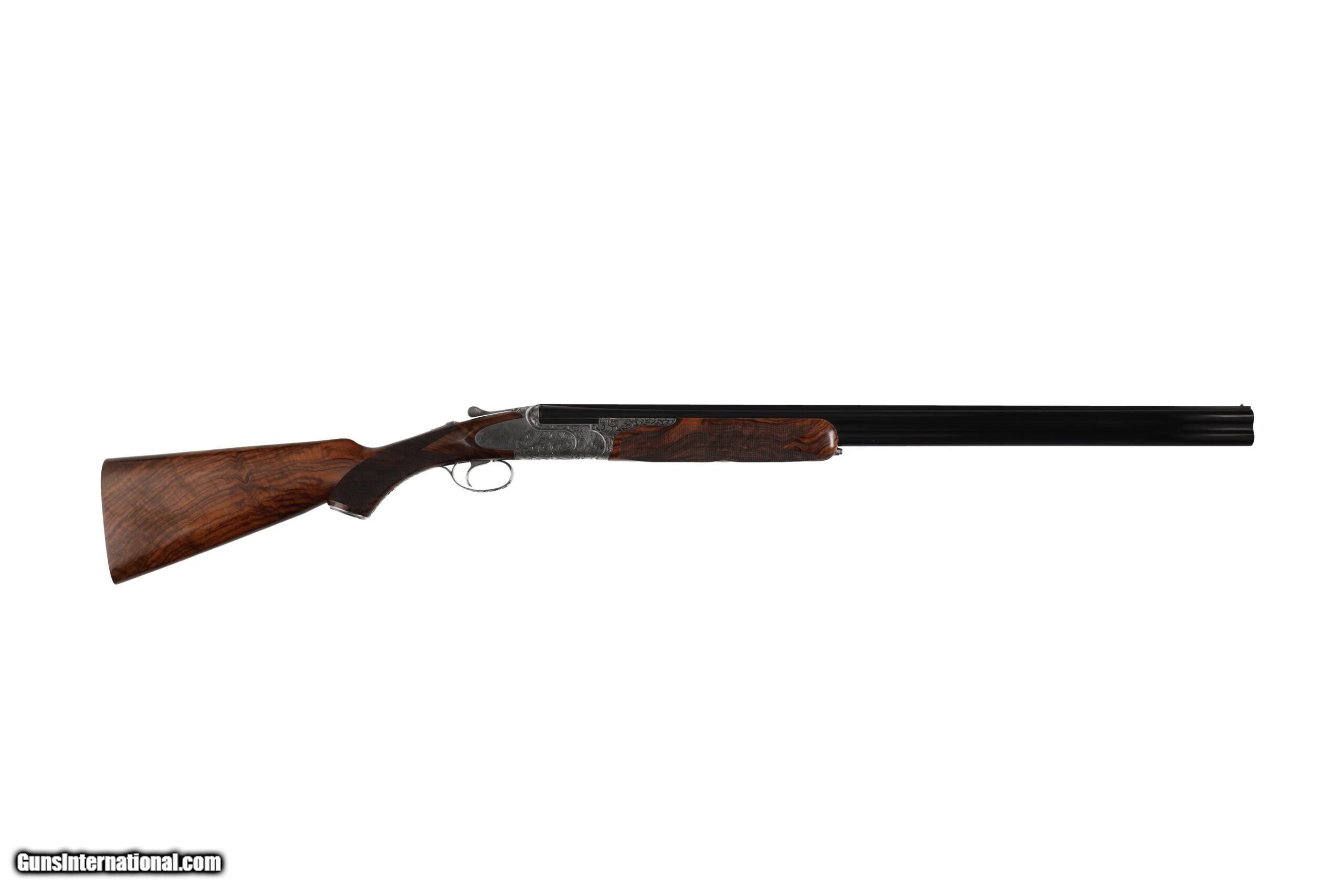 Description: Makers case with five choke tubes. Manufactured in: Italy Hand: Right Hand Action Finish: Coin & Black Metal Finish: Original Barrel Length: 29" Barrel Condition: New Stock Finish: Original Stock Condition: New Type of Butt: Checkered Wood Grip: Pistol Forend: Checkered Cast Amount: 1/8" Extra Barrels: No. Manufacturer: Rizzini Model: Regal Chambers: 3 Ejectors: Yes Condition: New Metal Condition: New Action: Boxlock Triggers: Single Gauge: 20 Gauge Stock Comb: 1 1/2 Stock Heel: 2 3/8 Stock Cast: Off Fore End: Checkered LOP: 14 3/4 Rib: Solid Finish: Original Chokes: 5 Factory Chokes Extras: No. Case: Makers ABS Case Price: $14,435.00 Contact Seller |