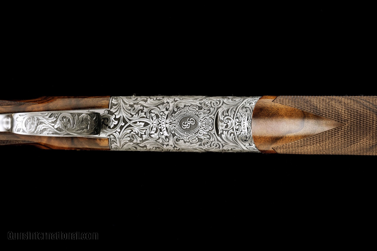 Description: Rizzini Grand Regail Deluxe 410ga 29" barrel, screw in chokes, solid flat filed rib to a brass bead. The gun features a true Prince of Wales grip with a long trigger gaurd to the grip cap. These guns were especially made for Gordy & Sons and feature our G&S logo on the grip cap. The engraving done by Bottega Giovenelli is beautifully done in a deep releif scroll with quail game scene on the rear of the side plate. SOLD Manufacturer: Rizzini Caliber Info: 410 Barrels: 29 Action: Over / Under Triggers: single selective Gauge Info: 410 Stock Comb: 1 1/2 Stock Heel: 2 1/4 Stock Cast: 1/8" off LOP: 14 1/2 Rib: solid flat filed Weight: 6.01 Chokes: screw in chokes |