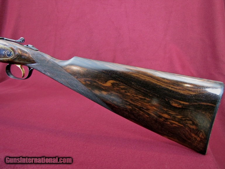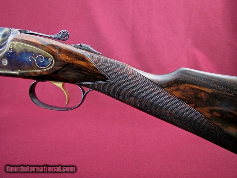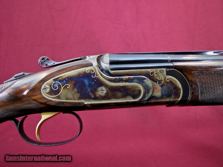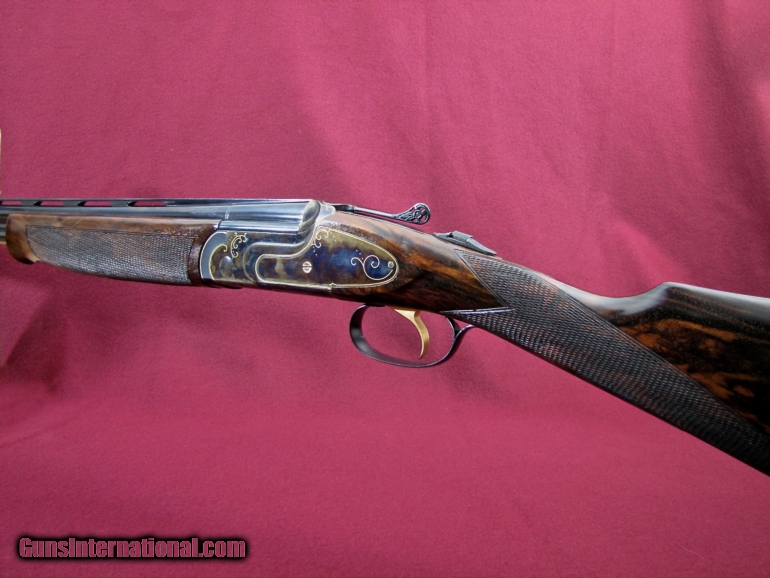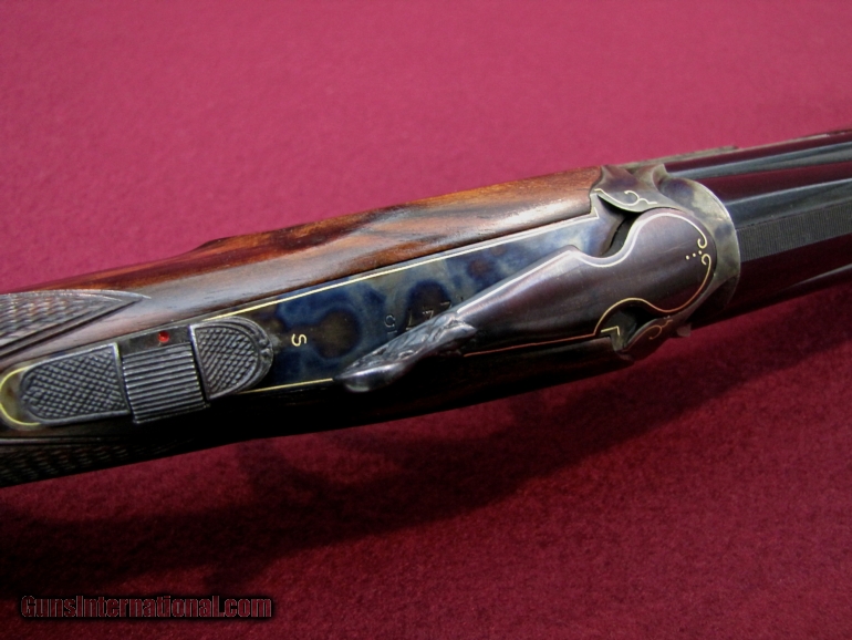 Description: I have for sale a very pretty Rizzini imported by New England Arms in Kittery Point Maine. This particular gun is the Model 702 in 28 gauge with 28 inch vent ribbed barrels. Barrels have factory installed choke tubes and the gun comes with 2 tubes (cylinder & cylinder). Gun features a straight English stock of very nice dark grained Walnut with an oil finish. Stock dimensions are 1 3/8 X 2 1/4 X 15 inches over the factory butt plate and is cast off for the right hand shooter. Forend is a schnabel with push button latch and nicely checkered. Weight of the gun is 5 pounds 15 ounces and it balances 1/4" ahead of the hinge pin giving the gun a great feel. The receiver is very nicely case hardened with very tastefully done gold border engraving. Trigger is single, selective and the top lever is pierced giving the gun a very nice look. Condition of the gun is 99+% with no marks to be found and the gun may be unfired. This is a very pretty, well made gun. Have a look at the pictures and I believe you will agree this is a lot of gun for the price of $2300 plus $40 shipping to your FFL. As always there is a three day inspection period on this gun with the buyer paying shipping charges if returned. Contact me with any questions you might have on this great little upland gun. SOLD |