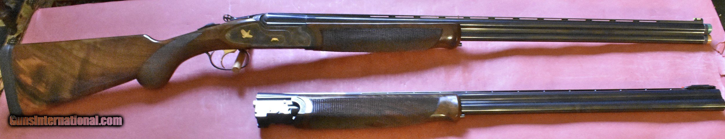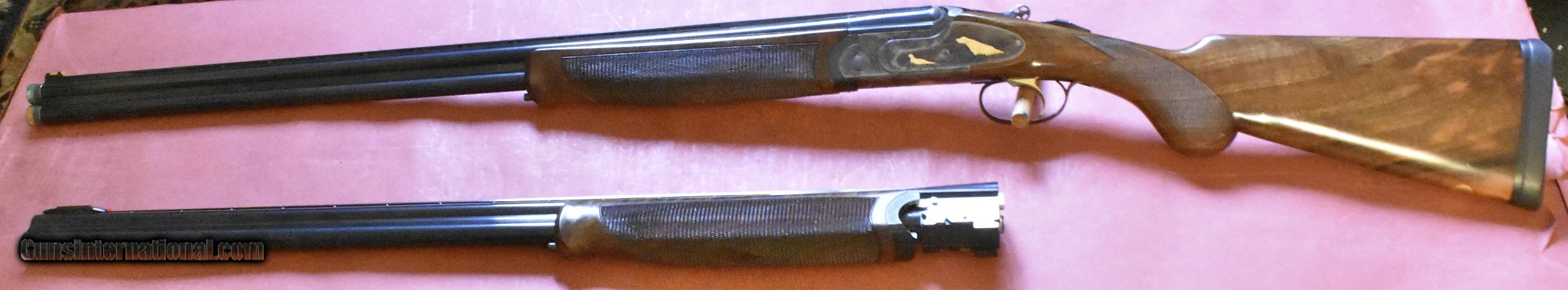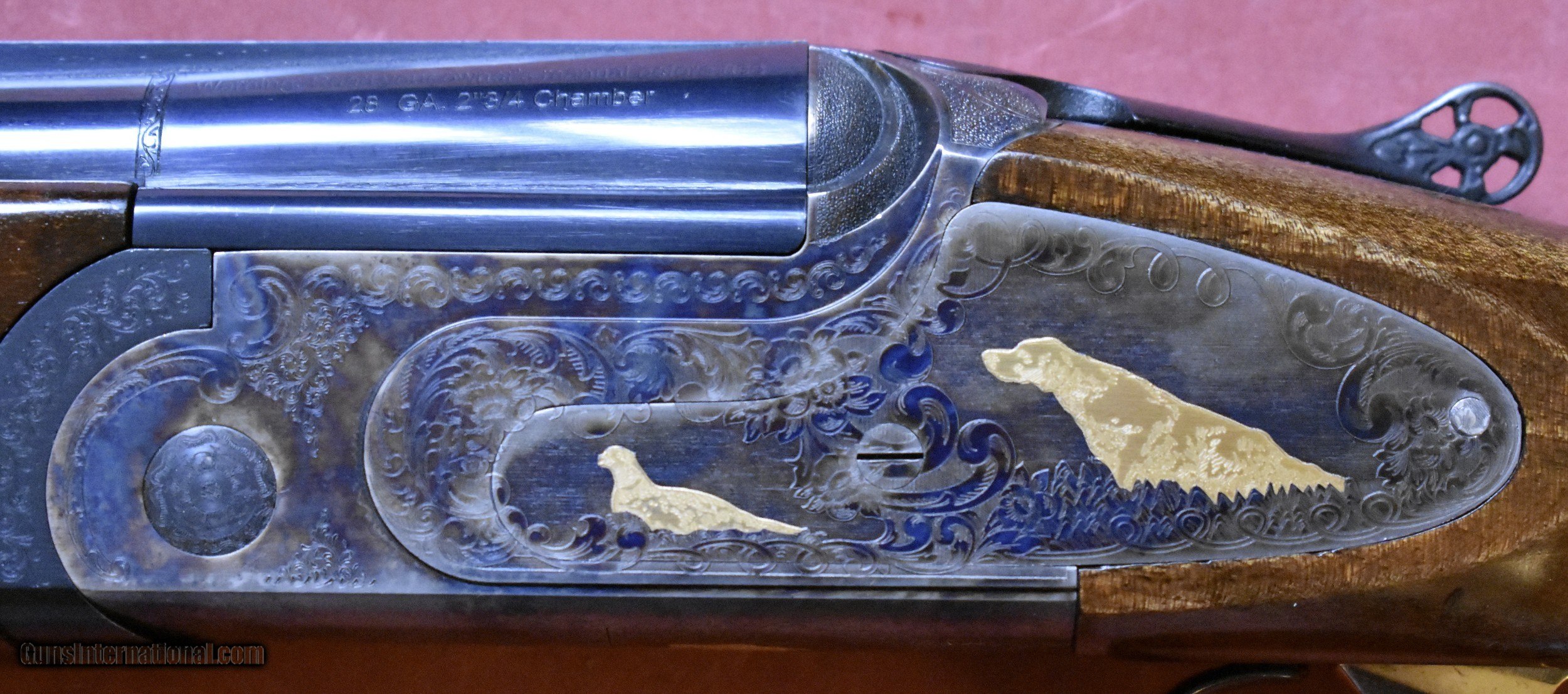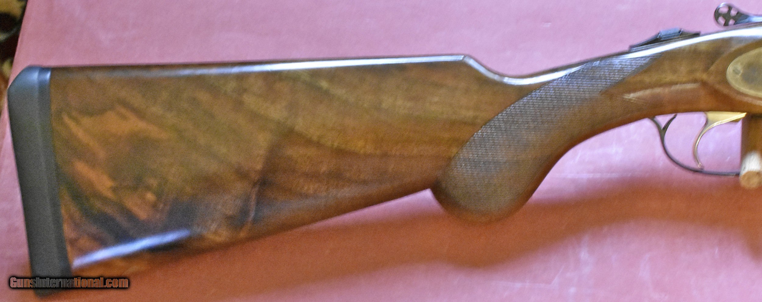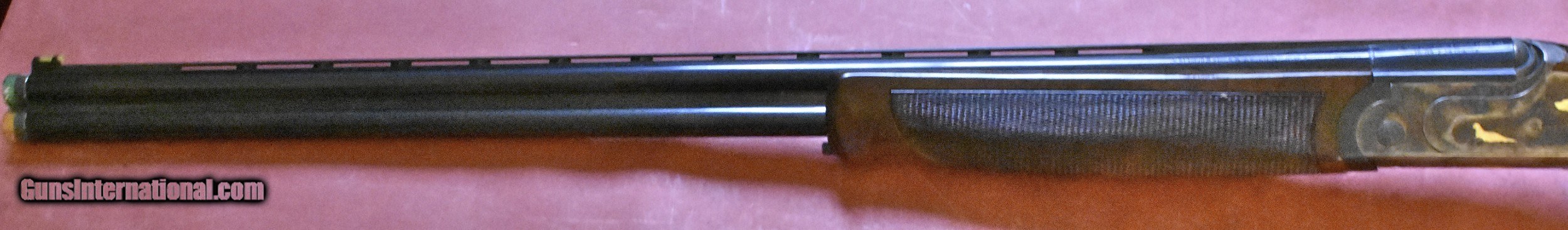 Description: Rizzini Prestige 28 gauge, 20 gauge two barrel set.Both barrels are 28" with vent ribs and Rizzini extended chokes.The sideplated action is fully engraved with scroll surrounding gold game scenes.The action is case colored and retains all of the colors.The barrels retain 100% of the original blue and the wood retains 100% of the original finish.Each barrel has its own forearm.The stock has a 141/4"LOP over a properly fitted Kickeze recoil pad.This is a great all around upland bird gun or clays gun. SOLD Manufacturer: Rizzini Model: Prestige Serial Number: 222997 Chambers: 23/4 Ejectors: yes Metal Condition: mint Wood Condition: mint Bore Condition: mint Action: over under Triggers: single selective Gauge Info: 28ga and 20ga Stock Dimensions: 141/4"x11/2"x21/4 Butt Pad: Aftermarket recoil pad Chokes: Rizzini chokes |