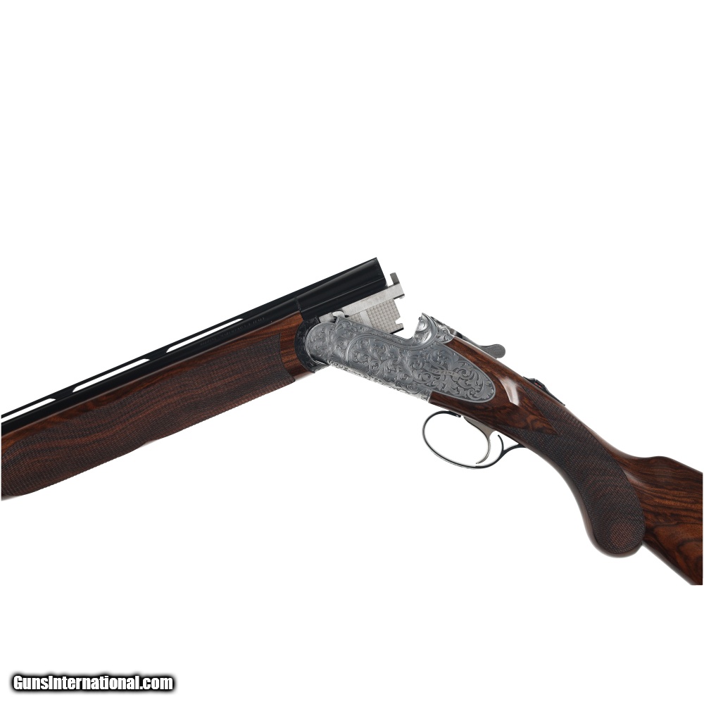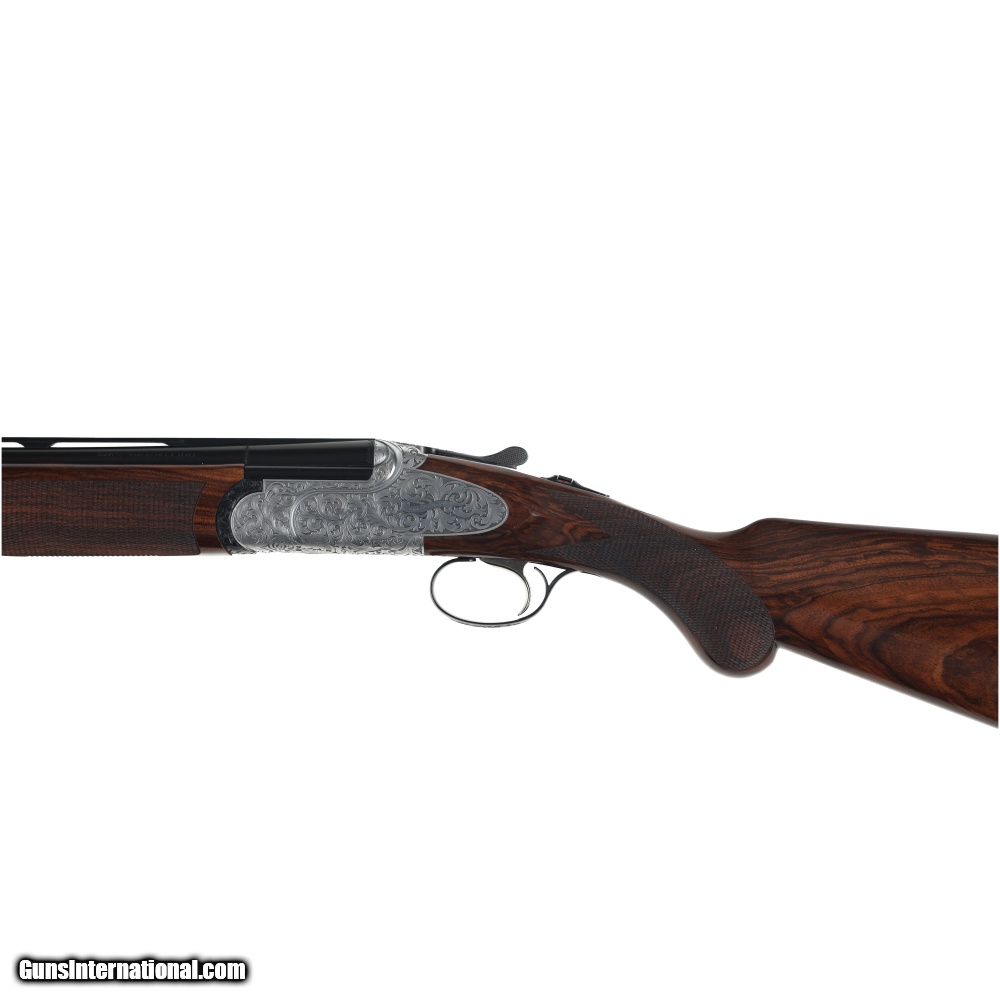 Description: The Rizzini Regal EM's elegant design starts with its compact rounded, side plated boxlock action and continues with the classic lines of its grade 3 Turkish walnut stocks. This is of course accompanied by the acanthus leaf engravings across the whole of the receiver and sideplates. these shotguns aren't just good to look at, they are also good to shoot, with fantastic balance, chrome lined bores and an assortment of factory chokes to suit any shooting task. Manufactured in: Italy Hand: Right Hand Action Finish: Engraved Action Description: Over / Under Metal Finish: Original Barrel Length: 29 Inches Barrel Condition: New Stock Finish: Original Stock Condition: New Type of Butt: Checkered Wood Grip: Round Knob Pistol Grip Forend: Checkered Cast Amount: 1/8" Extra Barrels: No. SOLD Manufacturer: Rizzini Model: Regal EM Chambers: 3 Inches Ejectors: Yes Condition: New Metal Condition: New Action: Boxlock Triggers: Single Gauge Info: 28 Gauge Stock Comb: 1 1/2 Stock Heel: 2 1/4 Stock Cast: Off Fore End: Checkered LOP: 14 5/8 Rib: Matted Vent Rib Finish: Original Weight: 6 lbs Chokes: 5 Factory Chokes Extras: No. Case: Makers ABS Case |