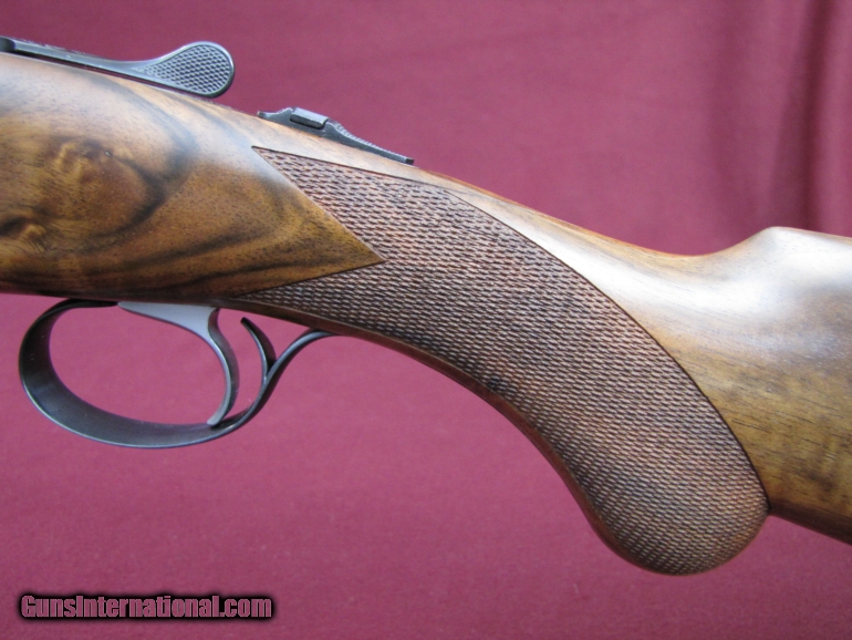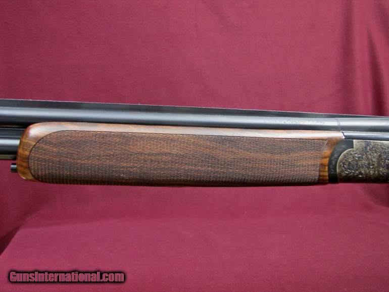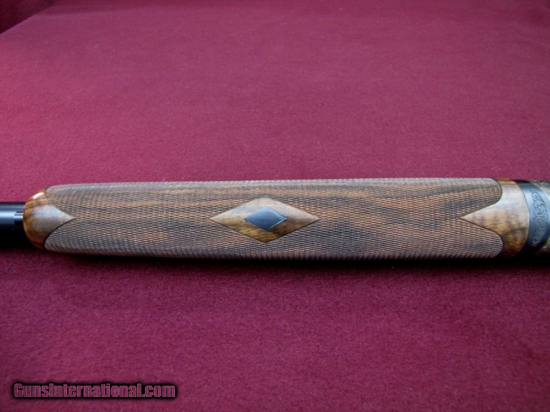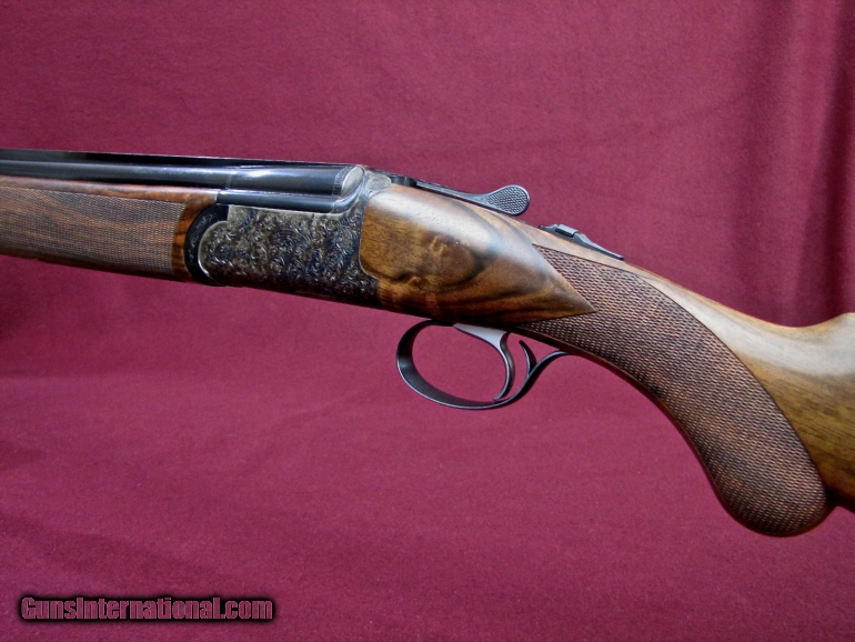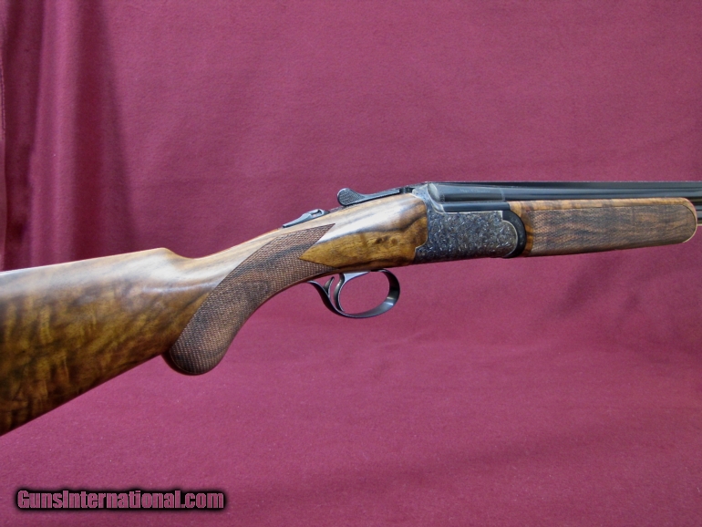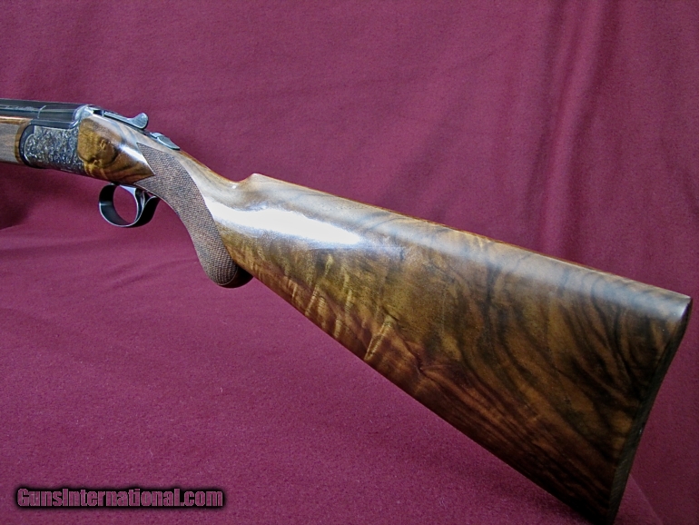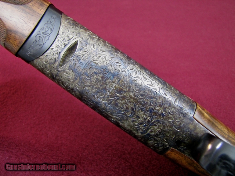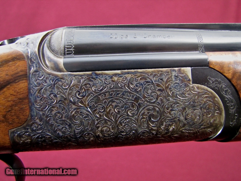 Description: I have for sale a B. Rizzini Round Body 20 gauge that appears to be unfired and in perfect condition, as new. Gun was purchased out of a large collection and most of the guns are unfired. This is the second one of these out of this collection and I have to say I'm very impressed with these guns. This particular gun comes with 29 inch barrels, solid hand filed rib, and factory installed choke tubes (two-cylinder & cylinder), and 3 inch chambers. As you can see in the pictures it has a beautiful Turkish Walnut stock with Prince of Whales grip and dimensions of 1 1/2 X 21/2 X 14 3/4 over the factory checkered butt. Gun weighs 6 pounds 7 ounces and is balanced exactly on the hinge pin. Stock is cast off for the right hand shooter. This gun exudes class with very nicely done full coverage engraving signed Bottega Giovanelli. The case hardened receiver is beautiful and the round body feels wonderful when handling the gun with no sharp edges and no exposed pins. Trigger is single and selective with non-automatic safety. Ejectors are crisp and well timed. Checkering is very fine and well executed. This is just a very classy gun inside and out. Price of the gun is $3700 plus $50 shipping to your FFL and as always there is a three day non-firing inspection period on the gun with buyer paying shipping charges if returned. This gun will not dissapoint you I promise. Contact me with any questions you might have. SOLD |