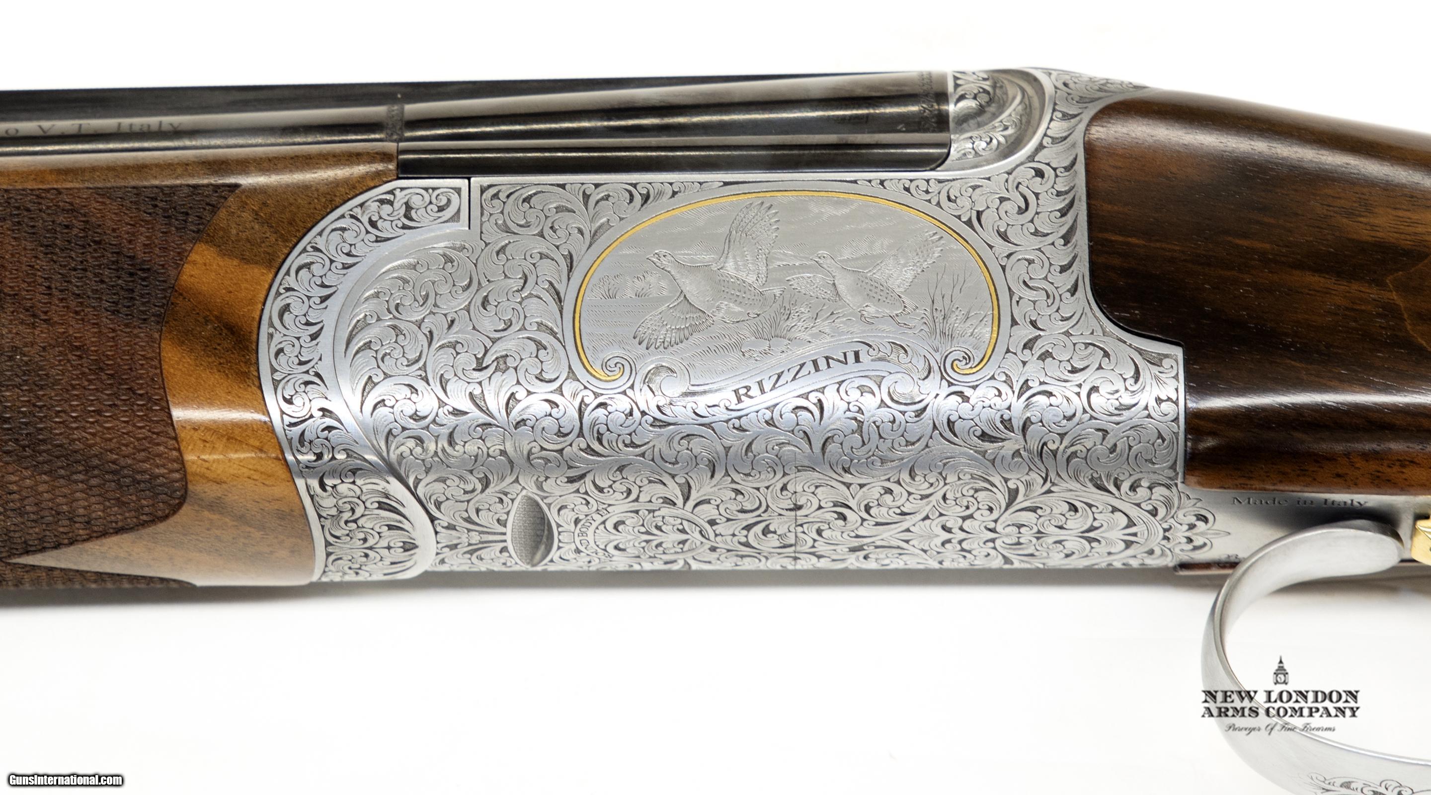 Description: Round Body EL Premier Hunting Shotgun - 20 Gauge 29" Barrels The Round Body EL features an elegant game scene engraving that is surrounded by gold inlay. This, combined with scroll engraving that is completely hand finished, gives the EL a discriminating look. The Turkish walnut stock is a high grade #3. The EL also comes with a solid rib and long tang trigger guard that finish off this Rizzini masterpiece. Our actions are scaled to the gauge offered. These delightful field guns handle as well as they look. Single selective trigger, ejectors,screw-in flush chokes, ventilated rib, coin or color case-hardened frame, engraving,cased. ACTION: Low profile, coin finished round box lock. ENGRAVING: Hand finished, full coverage foliate scroll. MECHANICS: Automatic ejectors, single selective trigger. BARRELS: Cr Mo steel, chrome-lined bores, glossy blued. RIBS: Comes standard with ventilated rib (solid rib is an option). STOCK AND FOREND: Prince of Wales pistol grip stock,hand checkered. Polished oil finish. GAUGE: 20 CHAMBER: 2.75" &3" BARREL LENGTH: 29" CHOKES: Interchangeable* TOP RIB: Ventilated DROP: 1.5" x 2.25" STOCK LENGTH: 14 5/8" WEIGHT (LBS.): 20 ga - 6.5 lbs. Payment The listed price is for payment by certified funds, like money orders and certified checks. Most major credit cards are accepted for a 3% processing fee based on the price of the item(s) purchased. North Carolina residents are subject to applicable state sales and local sales taxes. Shipping and Handling New London Arms Company charges a fixed rate on all Shipments. The charge forrifles and shotguns is $45. Insurance may be added at 1.75% of the total purchase price. We do not ship to California, Massachusetts, Maryland or New York State. Buyers should know the applicable laws and regulations in their state and city to ensure this item(s) is legal in their area. Other If you have questions please email us. Our address is - info at newlondonarms then com We are a Premium firearms dealer and are not open to the general public. Our store is open by appointment only. For buyers, this ensures you get a pristine, mint condition firearm that has not been ‘manhandled’. Our inventory is usually shipped out in the same box it arrived in. All Firearms are new in box unless otherwise specified All firearms, magazines, receivers and restricted law enforcement items are sold and shipped in accordance with all existing federal, state and local laws and regulations. Many of the firearms, magazines and parts for sale on this may be restricted or prohibited in your area. Please check your local and state regulations before purchasing. SOLD |