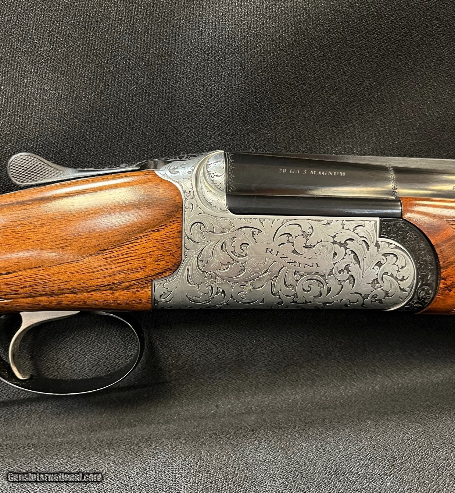 Description: B. Rizzini Round Body EM English Stock 20ga 29". LOP-14-1/2, DAC-1-1/2, DAH-2-1/4, Cast off-3/16", 6-1/4lbs. $4395. Buyer pays shipping. SOLD Shotgun Gauge: 20 Gauge |