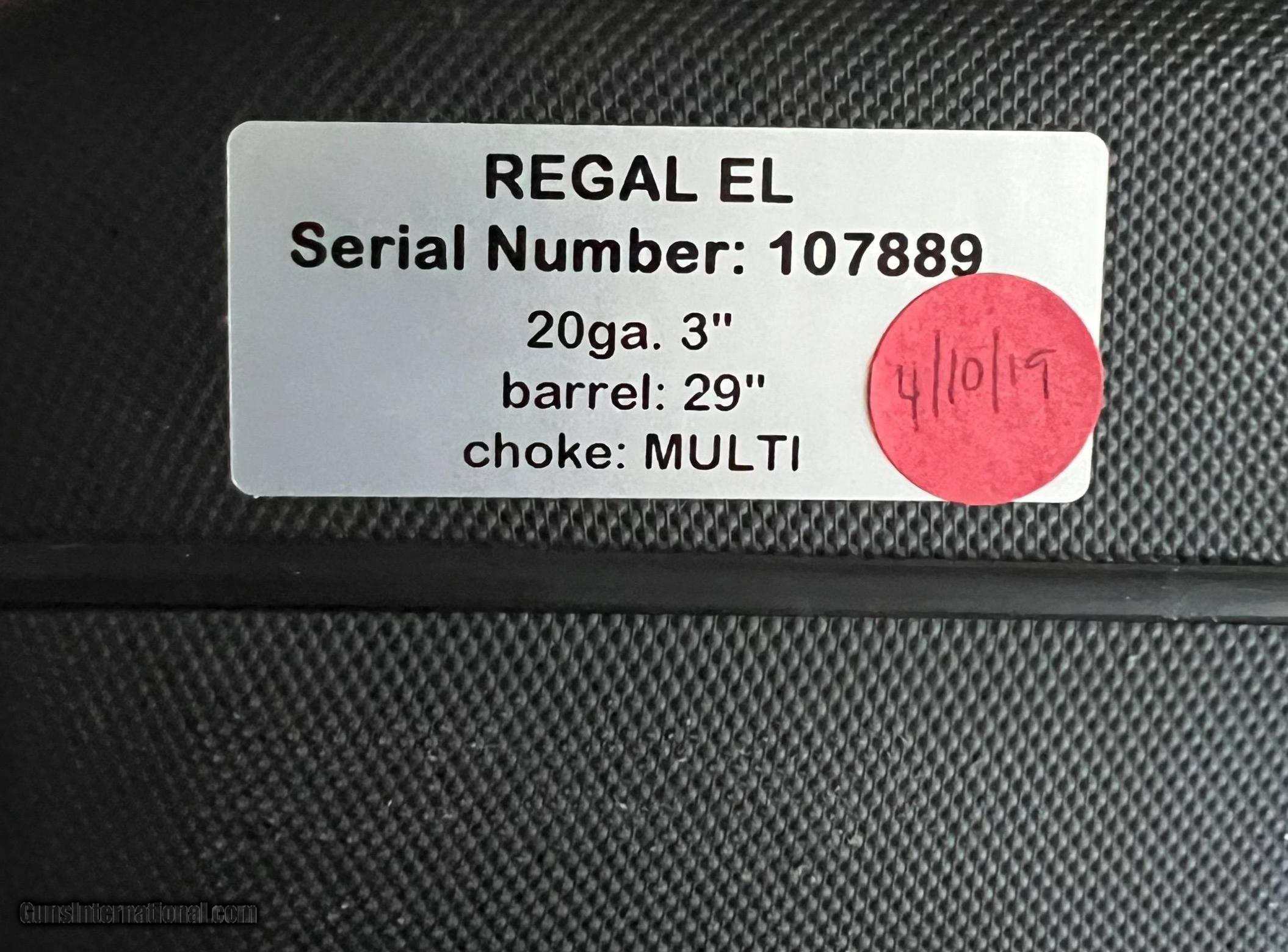 Description: Beautiful and great shooting Rizzini Regal EL 20 guage. Very good, like new condition - incidental handling marks. Bright, shiny barrels. Includes a few extra Briley chokes.