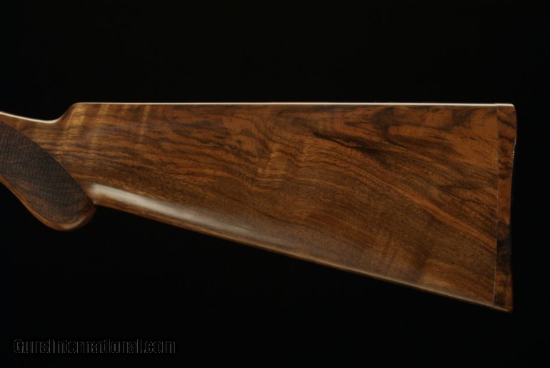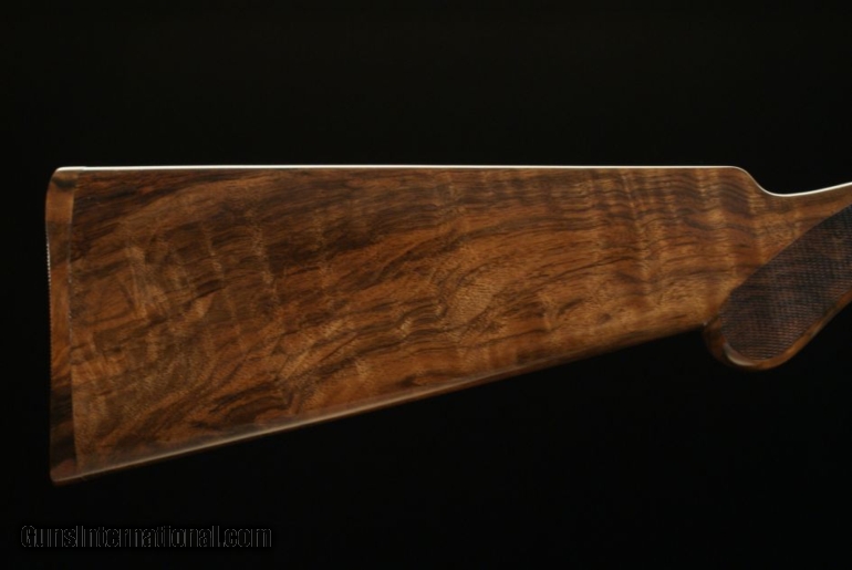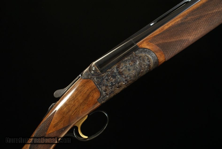 Description: Rizzini, B. Round Body Small Action, 28 bore, 2 3/4" chambers, 28" barrels with screw-in chokes, 5 lbs. 4 oz., 14 5/8" LOP over a wood butt plate, 1 1/2" DAC, 2 1/4" DAH, 1/8" cast off, round knob grip, single selective trigger, ejectors, bold acanthus scroll engraving, case hardened finish, highly figured European walnut, hand checkered, chrome-lined barrels, polished oil finish. Comes with hard case and extra choke tubes. New and in stock. Gun number 90283. SOLD |