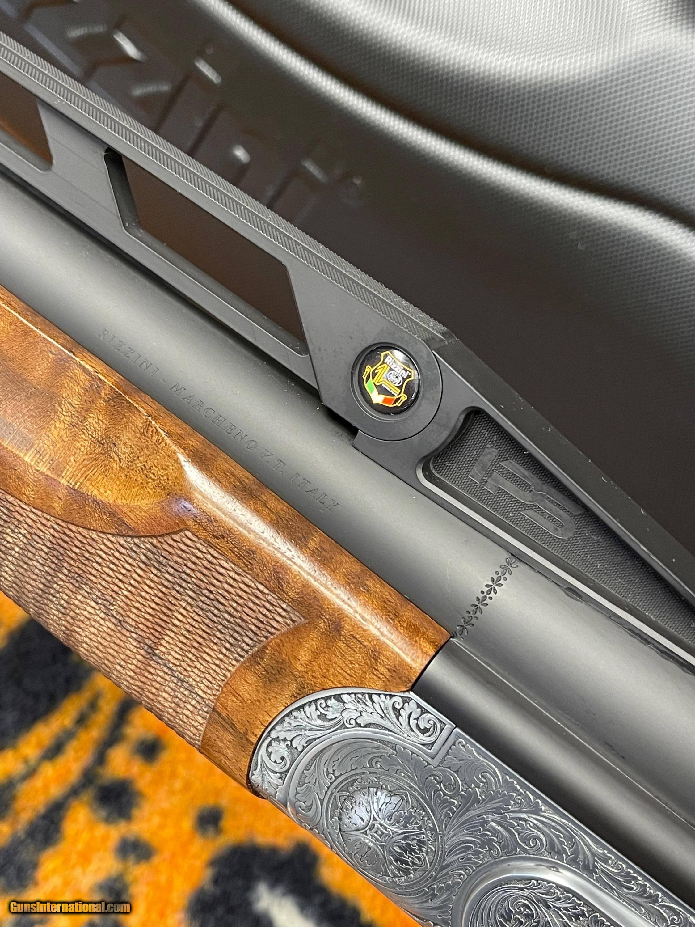 Description: SALE PENDING>>> The Rizzini S2000 IPS 32" with adjustable comb combines value, performance, quality and beauty in one serious competition shotgun! Price Reduced - Father's Day Sale!!! The S2000 Improved Performance System (IPS) is an elegant over/under competition shotgun. The deep scroll hand-chased engraved action and side plates by Bottega C. Giovanelli--craftsmanship at its best, sets it apart from the rest. Accompanied with fine Turkish walnut upgraded wood stock, the 26 lines-per-inch checkering flows into your hand. The S2000 not only is a clay buster but a head turner for sure. The IPS is built with an adjustable rib featuring tool-free adjustment for (3) setting: 50/50 | 60/40 | 70/30.