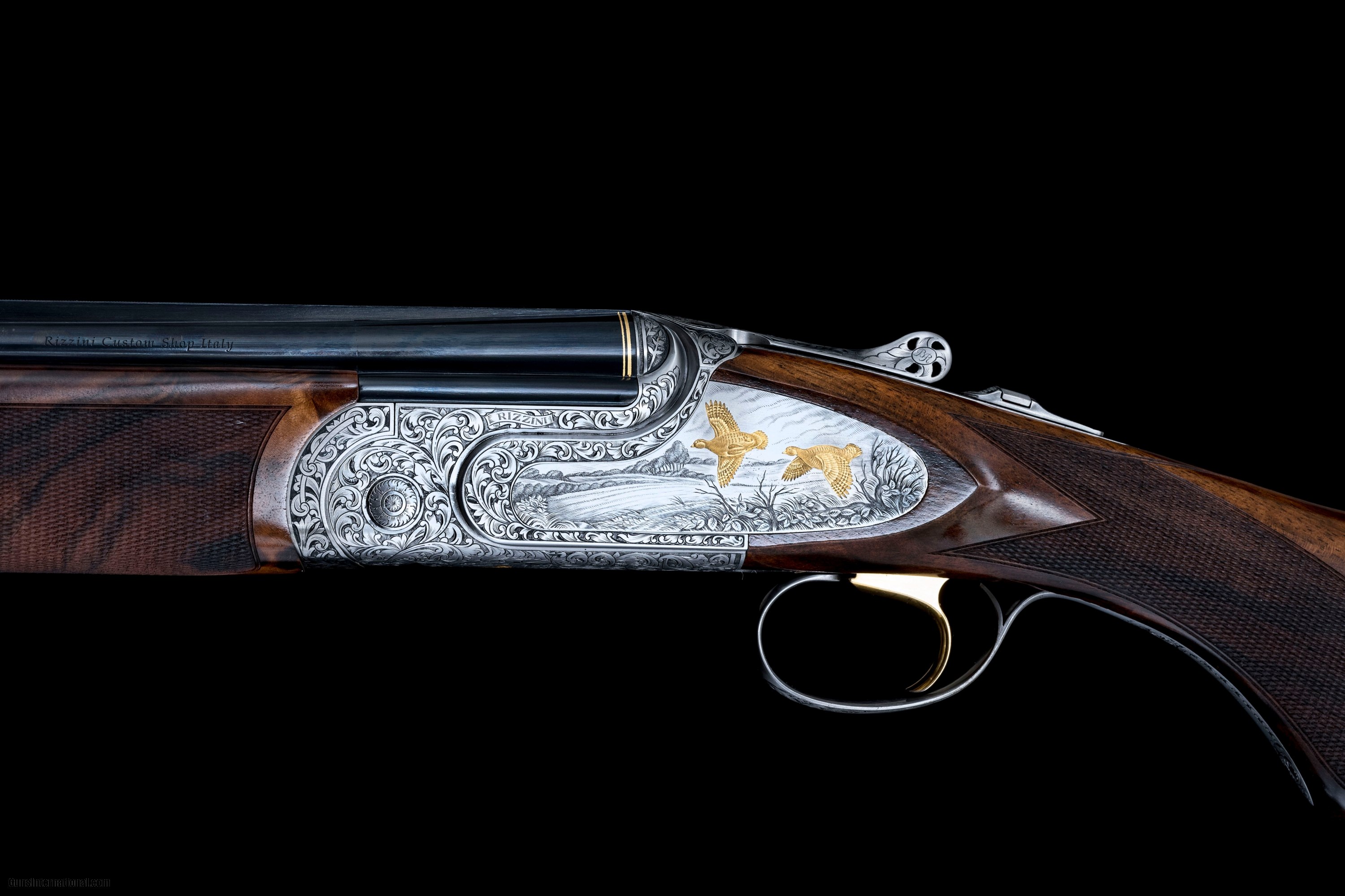 Description: The Rizzini S782 EMEL features hand engraving by Botega Giovanelli. Another quality attritbute the custom shop gun has are; golden pheasant and quail scenes on either side of the reciever. The S782 EMEL comes eqipped with a round knob, and a long tang as SOLD Manufacturer: Rizzini Model: S782 Emel Caliber Info: 20 Gauge Barrels: 29 Barrel Type: Over / Under Triggers: Single Gauge Info: 20 Gauge Stock Comb: 1-1/2 Stock Heel: 2-1/2 Stock Cast: 1/8" Off LOP: 14-1/2 Rib: Solid hand filed Weight: 6.14 Chokes: Interchangable |