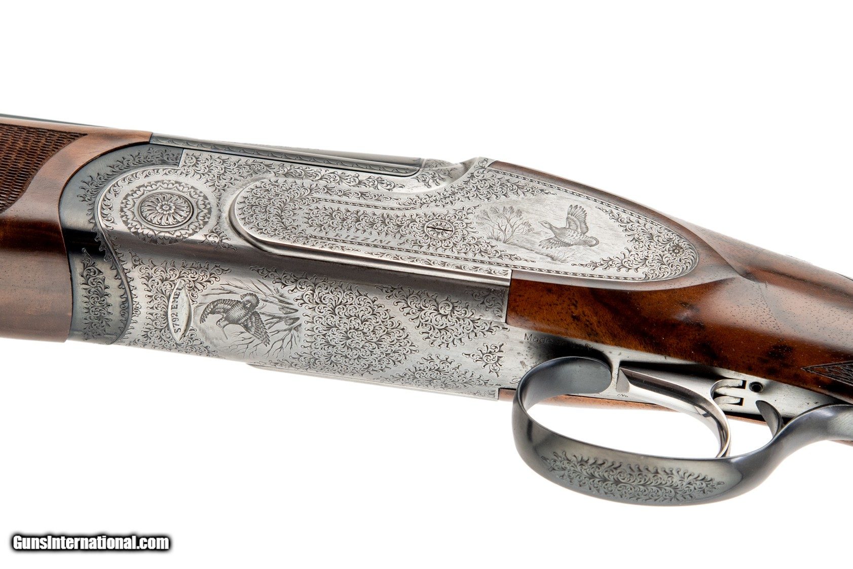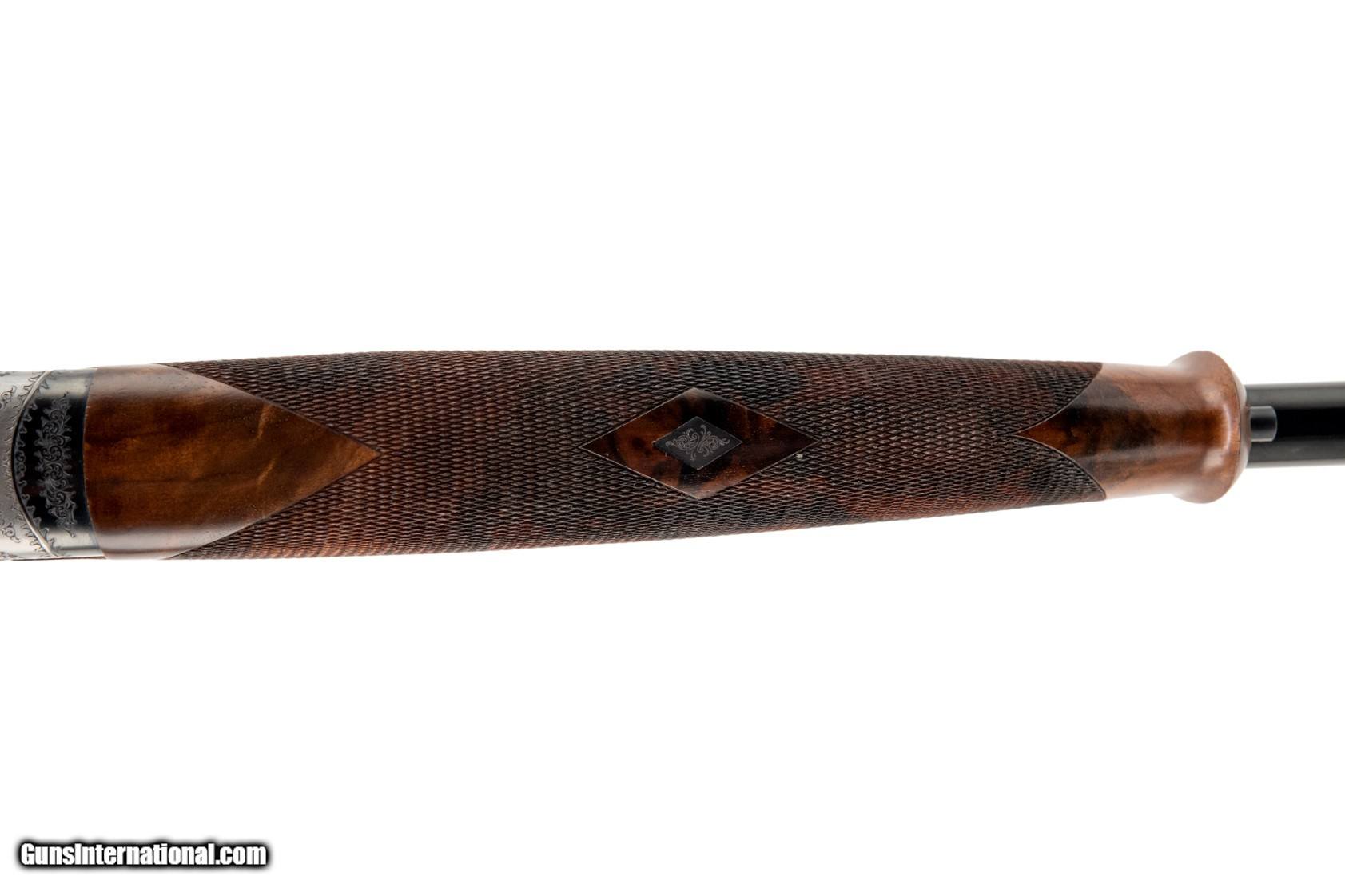Description: 28" VENT RIB IC AND MOD 3" CHAMBERS 7 AND 13 CONSTRICTION SINGLE TRIGGER EJECTORS SCHANABEL FOREARM ENGLISH GRIP CHECKERED BUTT MAKERS CASE EXCELLENT CONDITION WITH LIGHT MARKS IN THE WOOD 6LBS 1 OZ 2 3/8 DAH 1 1/2 DAC 14 1/4 LOP SOLD |