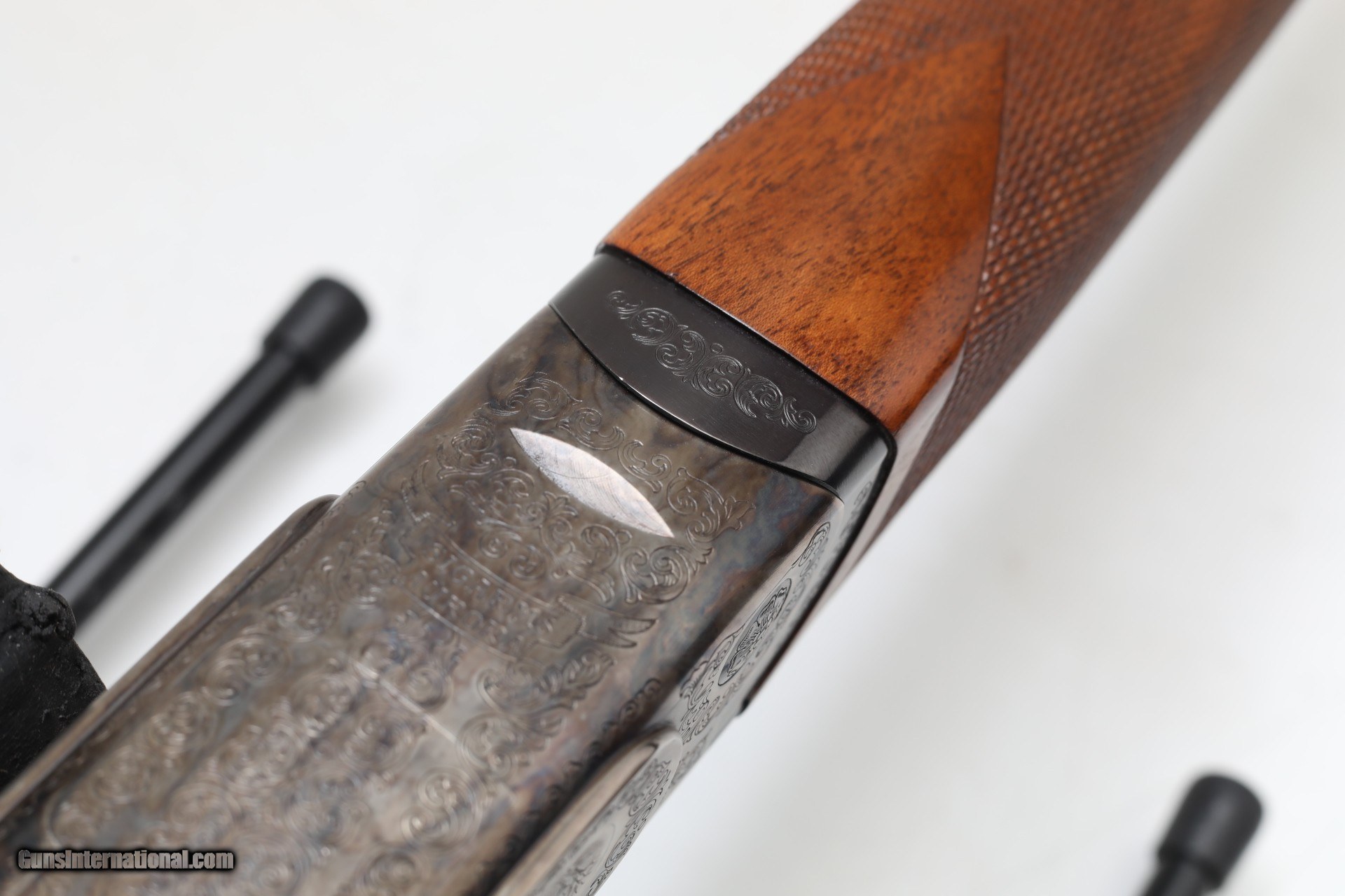 Description: ***This is a Rizzini, SIGARMS AURORA, TR40U over and under shotgun THREE BARREL SET. It comes with three sets of barrels with forearms, 28ga, 20ga, and 410. The 28 gauge barrels are 28 inches long, 2 3/4 chamber, vent rib, screw in chokes and has matching serial number to the receiver. The 410 barrels are 28 inches long, vent rib, screw in chokes, with red hi-viz front bead. The 20 gauge barrels are 30 inches long, magnum chamber, solid rib, screw in chokes. The bores are great for each barrel, mirror bores with no issues or sign of wear. The length of pull is 14.5 inches long from the gold trigger to the factory rubber butplate. The engraving was done by Bottega Giovanelli. It is neutral cast, standard drop at comb 1.5) and drop at heel (2.5), no palm swell....weighs 6.5 lbs +/- depending on bbl installed. It has wonderful case color and gold enlay along with the full coverage engravings, making this a BEAUTIFUL shotgun. The wood has no cracks or issues that would take away from the value of this shotgun, a light patch on the left side of the stock where your cheek would meet the wood while shooting. The blue is beautiful on all parts, only the lightest sign this was used. It comes in a nice Rizzini fitted gun case and includes all the chokes shown for each set of barrels. A full set of pictures is available upon request. Ships to your dealer for $100. SOLD Manufacturer: Rizzini Model: TR40U Serial Number: EX05310 |