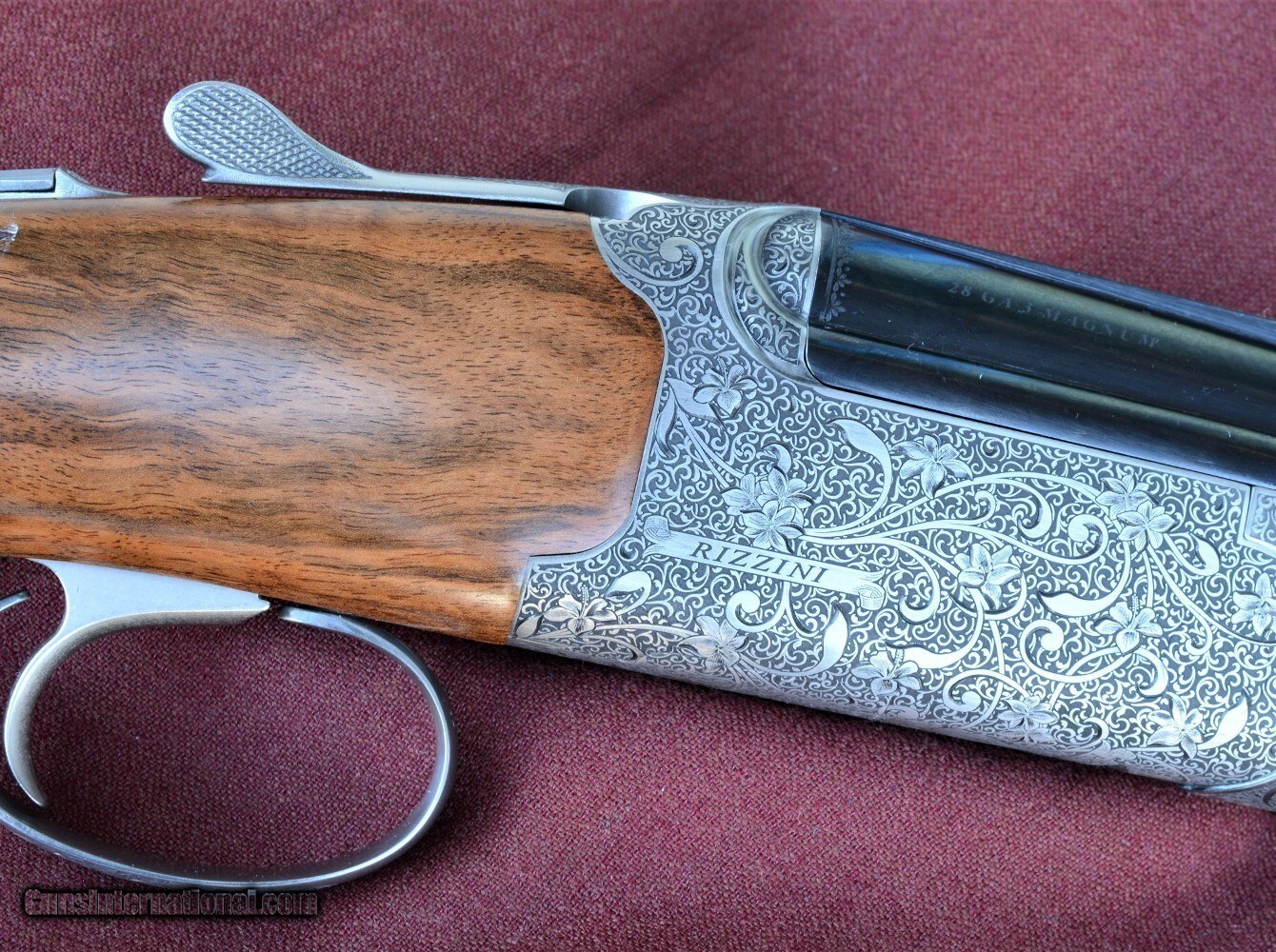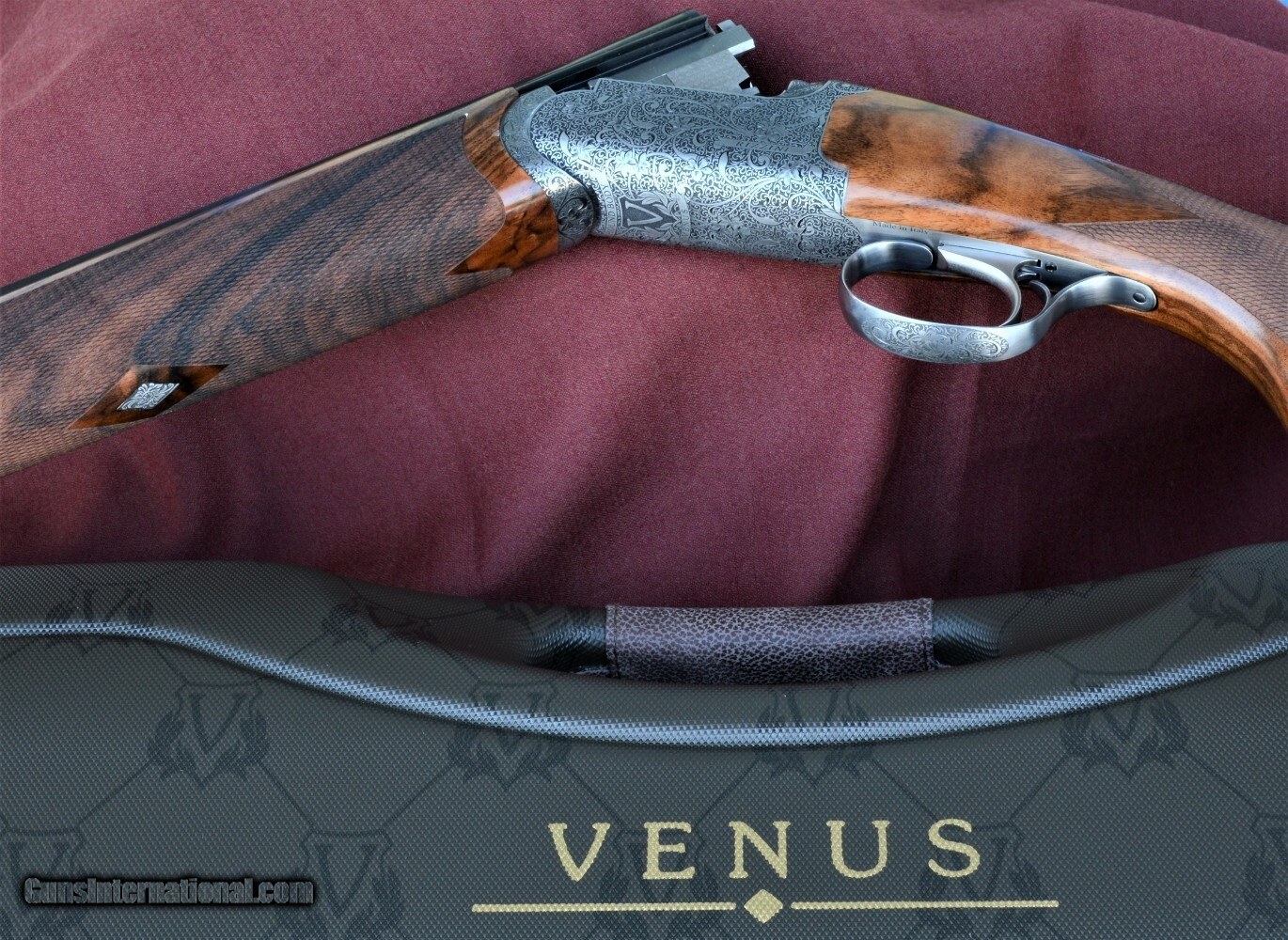 Description: For sale is a new Rizzini Venus Field in 28g with 28" barrels. Comes cased with five choke tubes. The Rizzini Venus is specifically engineered and designed for ladies. Slight adjustments to the frame, stock, and forearm make the Venus a custom fit. The Venus is loaded with elegance from the unique and subtle floral-engraved round body frame to the smooth carrying case. FEATURES:
