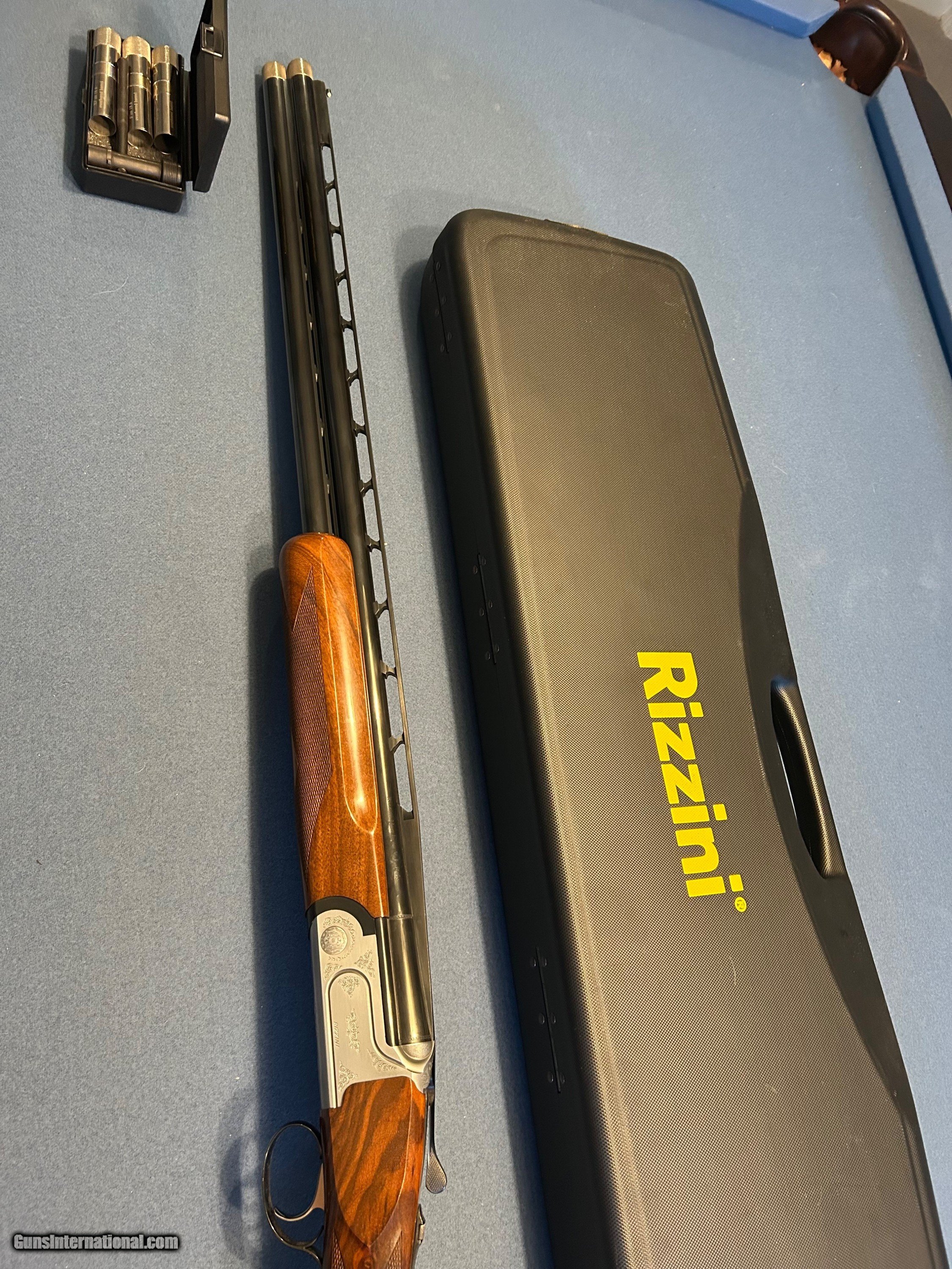 Description: SOLD TO DAVID IN CALIFORNIA Rizzini Vertex Sporting 12 gauge 30" barrels with 5 extended interchangeable chokes, adjustable comb buttstock with recoil pad in new condition complete with factory Negrini hard case. Dual bead sights, matted vent rib, interchangeable chokes (cylinder/improved cylinder installed), and 3 inch chambers with automatic ejectors. Action with light scrollwork by Bresciani, single trigger and manual tang safety/selector. Nicely figured, multi-point checkered forend and pistol grip stock with adjustable comb and factory recoil pad. Includes original factory Negrini hard case and three extra chokes (modified, improved modified, and full). Stock measurements: 1 3/4 inch drop at comb; 2 9/16 inch drop at heel; 14 5/8 inch length of pull; weight 8 lbs. 4 oz. This is a great quality shotgun for the trap range, sporting clays, 5 stand or the skeet range and more affordable than a Browning 525, 725, 825 or Beretta 686, 687, 688 or 690. Please view my other listings also SOLD Shotgun Gauge: 12 Gauge Manufacturer: Rizzini Model: Vertex Sporting Serial Number: 94239 Chambers: 3” Ejectors: Yes Condition: Excellent Barrels: 30” Triggers: Single selective Stock: Adjustable Stock Comb: 1-3/4” Stock Heel: 2-9/16” Stock Cast: Off for Right Hand shooter Fore End: Wood Butt Pad: Soft rubber LOP: 14-5/8” Rib: TTR Ventilated Rib Weight: 8 pounds 4 ounces Sights: Dual beads Chokes: 5 extended interchangeable chokes Engraving: Yes scroll work by Bresciani Extras: Chokes and stickers Case: Negrini hard case Item Location: South Carolina Proof:Nitro: Yes |