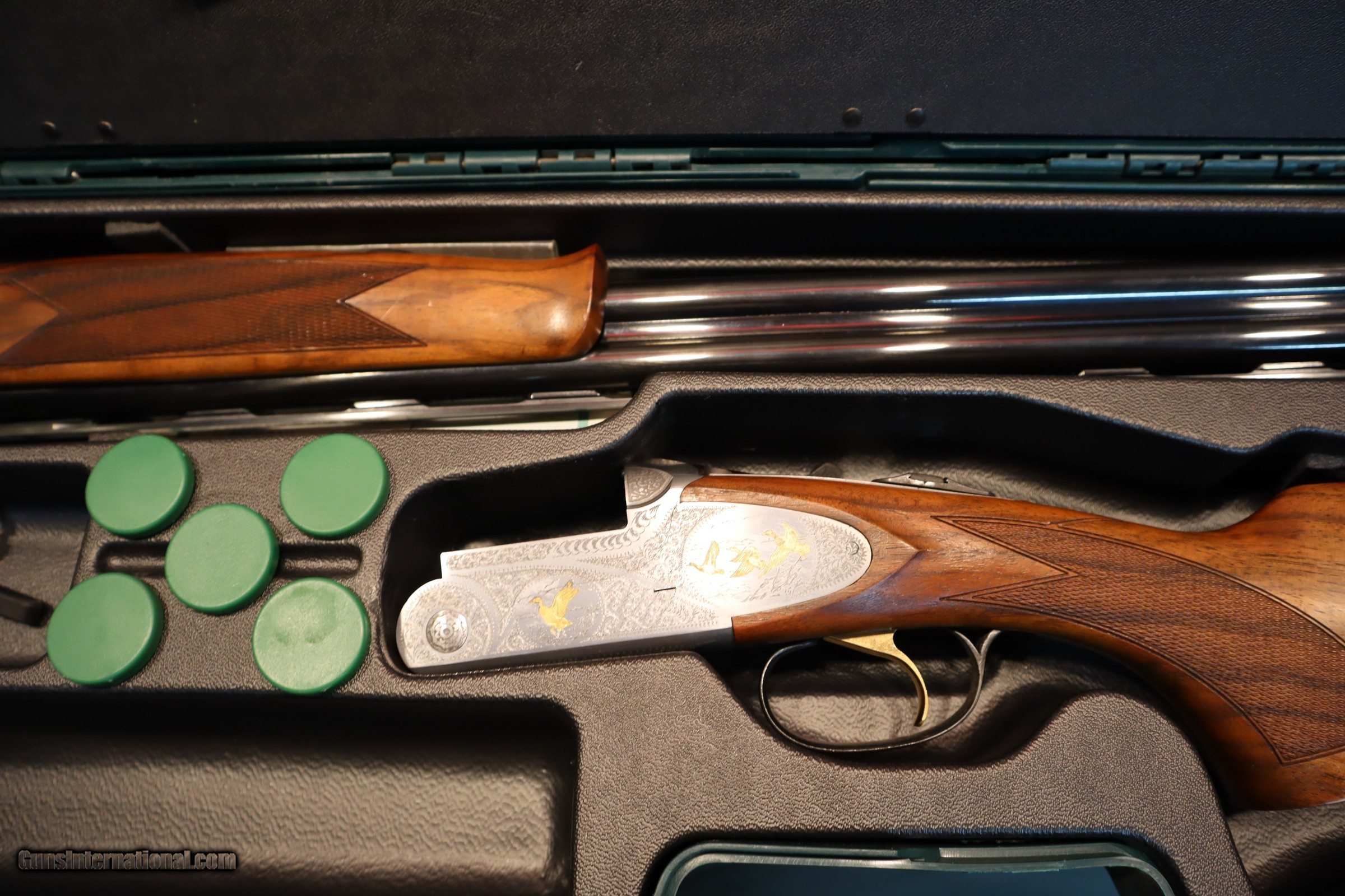 Description: Verona LX 692 Gold Combo 2 barrel set,20ga/28ga,20ga 3" 28" barrels,28ga 2 3/4" 28" barrels,with 10 choke tubes and wrench,single selective trigger,auto ejectors,engraved silver receiver with gold birds,pretty wood with figure,nice condition with the factory case.Made by Rizzinni. This is our 47th year in business. We offer 90 day layaways with 20% down. No return on layaways. Firearms will need to be transferred through a FFL dealer. Prices reflect a cash discount. There will be 3% added to credit card sales. We trade for gold and silver. THANK YOU! SOLD |