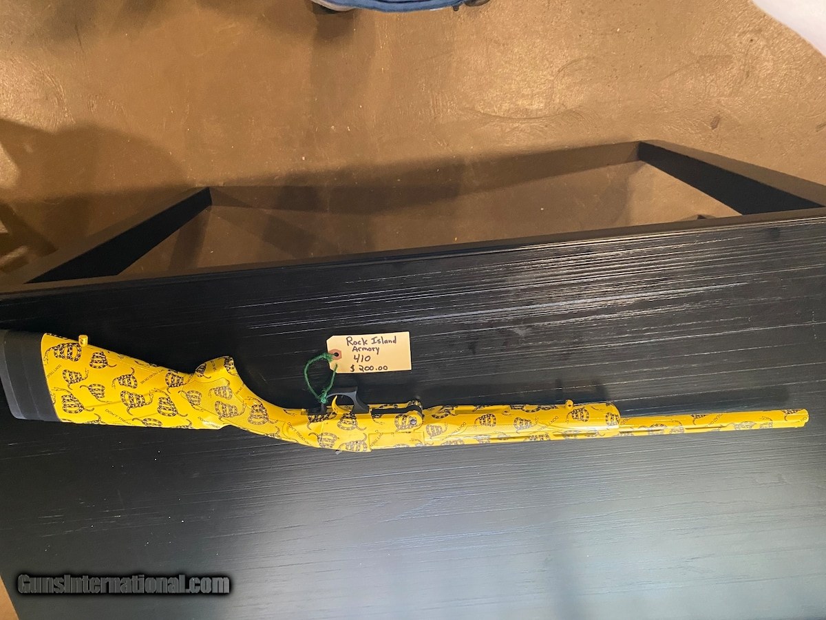Description: Guns Listing ID: 553269 Never Fired, \"Don‚‚t Tread On Me\" Patter SOLD Manufacturer: ROCK ISLAND ARMORY Model: Sr-104 Caliber Info: .410 GA Condition: Used - Non-Certified Barrels: 18 BARREL Finish: CUSTOM |