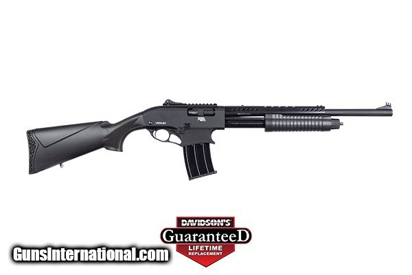 Description: Armscor Rock Island VRPA40 PUMP 12 ga. 20"bbl BLK SYN #VRPA40 Home Defense Shotgun w/Twin Slide Action Bars & Heat Shield Bringing the pump action to the VR family of shotguns, the VRPA40 12ga shotgun is coming in with a force to become the ultimate home defense shotgun. Constructed from 7075 T6 aluminum, and coming with a heat shield, the VRPA40 is unmatched in pump shotguns. Interchangeable magazine with other RIA VR Series Shotguns. Multi-Choke (Full, MOD, IC), Black Rubber Recoil Pad. Adj. sights.