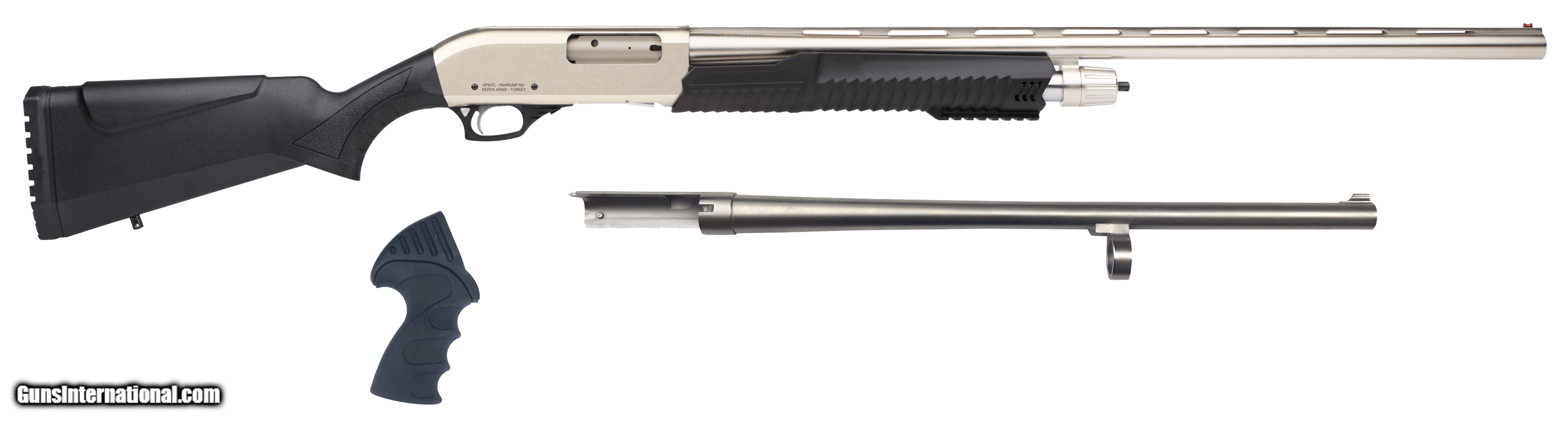 Description: Guns Listing ID: 462479 This three-in-one shotgun comes ready to tackle any self defense, tactical or sport shooting need. Built with 18.5\" cylinder bore smooth barrel and 28\" vent rib barrel with a 5+1 capacity. Add a synthetic rear removable stock and optional pistol grip to form a shotgun package that can provide in the field or defend in the perimeter. Black and Chrome. SOLD Manufacturer: ROCK ISLAND Model: Meriva 3-in-1 Combo Condition: new Barrels: 18.5" barrel Gauge Info: 12 GAUGE Finish: BLACK |