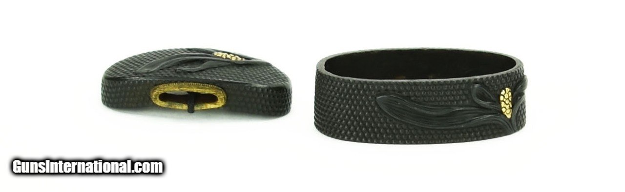 Description: "Fuchi Kashira.Flower with gold Highlights. Large nanako. Excellent condition. Goto signature. SOLD |