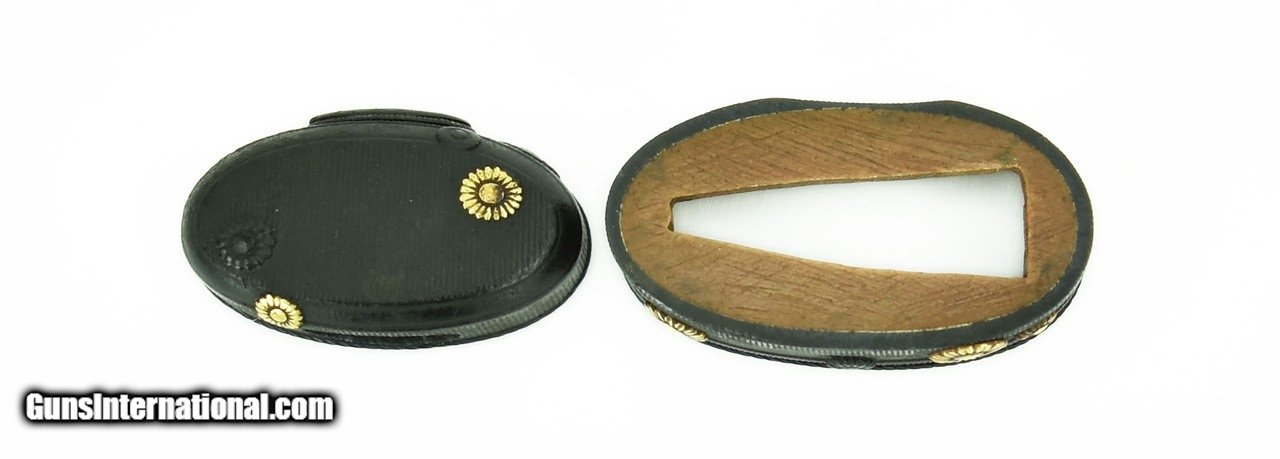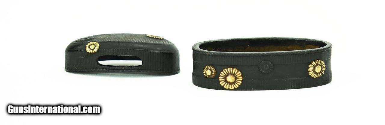 Description: "Fuchi Kashira Flowers with gold highlights unsigned. Excellent condition. SOLD |