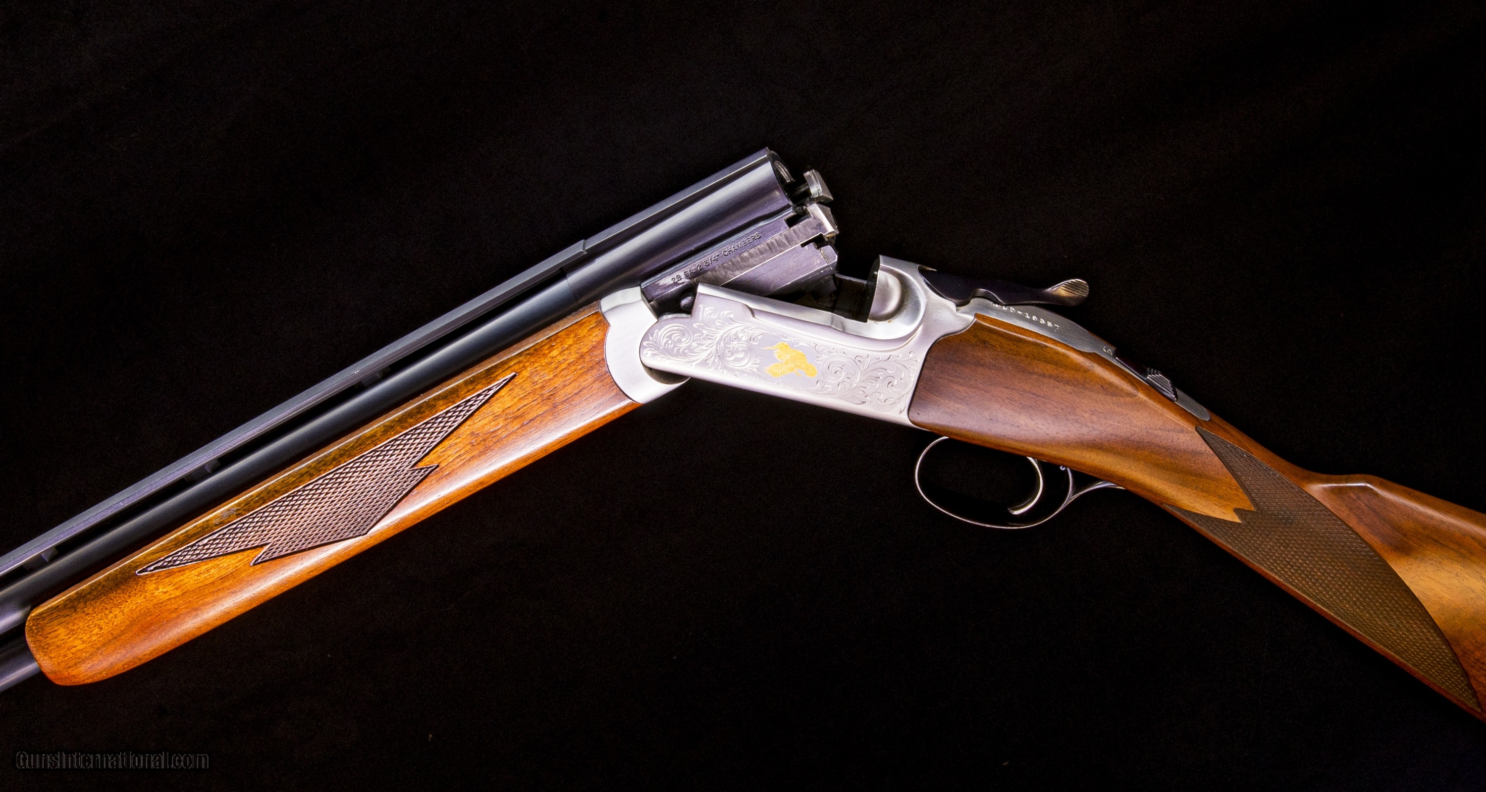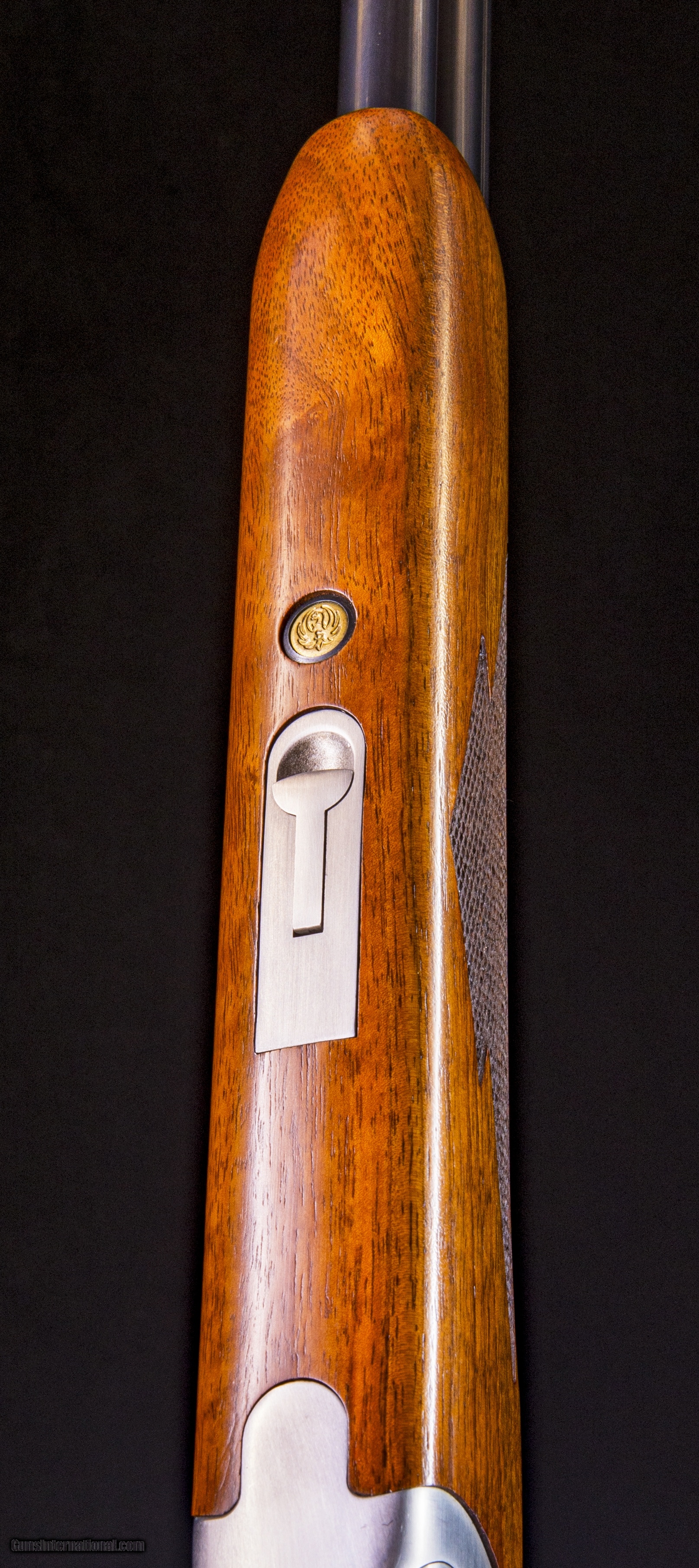 Description: Boxlocks - We don\'t normally sell what I call "Modern" guns but we do occasionally get some in an estate as is the case here. This gun handles well and has very few handling marks so it gets the almost "like new" gold star of approval. *** Note: To see this gun with high resolution photos and a zoom-in feature, go to the vintagedoubles main site and search for the gun ID: 5461 or browse the main site to see our full gun collection. SOLD Manufacturer: Ruger 28g Over/Under in very nice condition Model: None Serial Number: 420-19357 Ejectors: Yes Barrels: 28 Barrel Type: Steel Action: Boxlock Ejector Gauge Info: 28 gauge Stock Comb: 1 5/8 Stock Heel: 2 11/16 Stock Cast: 1/8 LOP: 14 1/4" with Ru Weight: 6 lbs. 4.5 oz. Choke Left: Upper .005 (Choke tu Choke Right: Lower .003 (Choke tu Proof:Nitro: 2 3/4 Minimum Wall Thickness Left: .033 Minimum Wall Thickness Right: .036 |