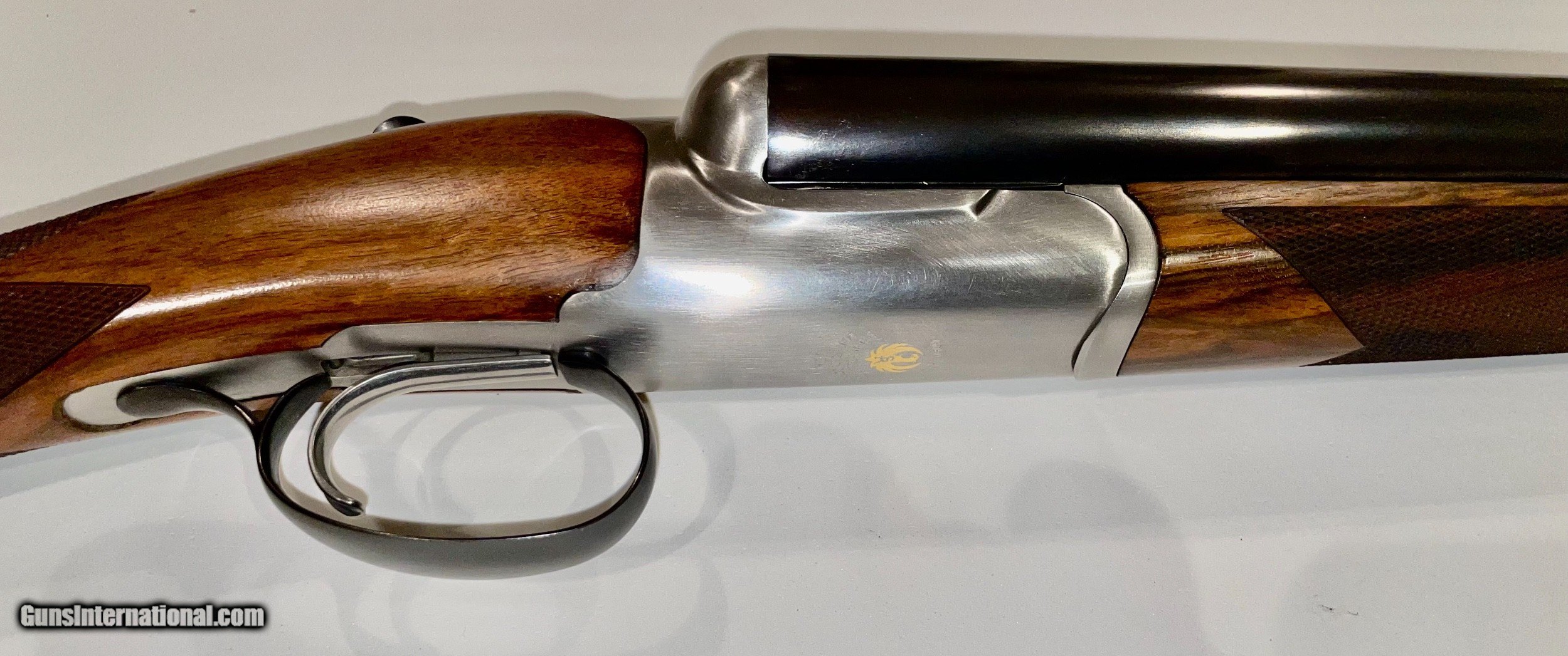 Description: Ruger Gold Label 12 Gauge Side by Side Shotgun with Box, choke tubes, and manual. English (Straight) Grip, with Very Nice figure. Has 5 choke tubes (IC, Skeet, Mod, Mod, and Full ) in total and factory choke tube wrench and Original Ruger Box and cardboard sleeve. Gun has been shot very little, and top lever is WELL right of center. Weighs just under 6lbs 9 ounces! Think about that! Very light for a 12 Gauge with 28" Barrels. 3" chambers, and safe for steel shot. These are lovely guns built in the style of a round action, and were only made in 2005 and 2006 if I am not mistaken. Great dimensions with LOP of right at 14 3/8". Drop at Heel runs about 2 1/4" and Drop at Comb approximately 1 3/8". Gun is an easy 98%, and shows very little use, just a few small handling marks. Thanks for your interest and please see my other ads. SOLD Shotgun Gauge: 12 Gauge Manufacturer: Ruger Model: Gold Label Barrel Length: 28 Chambers: 3 Ejectors: yes Condition: Excellent Metal Condition: Excellent Wood Condition: Excellent Bore Condition: Excellent Triggers: single Stock Comb: 1 3/8 Stock Heel: 2 1/4 Stock Cast: neutral LOP: 14 3/8 Weight: 6 lbs 9 oz. Chokes: multi Case: Original Box |