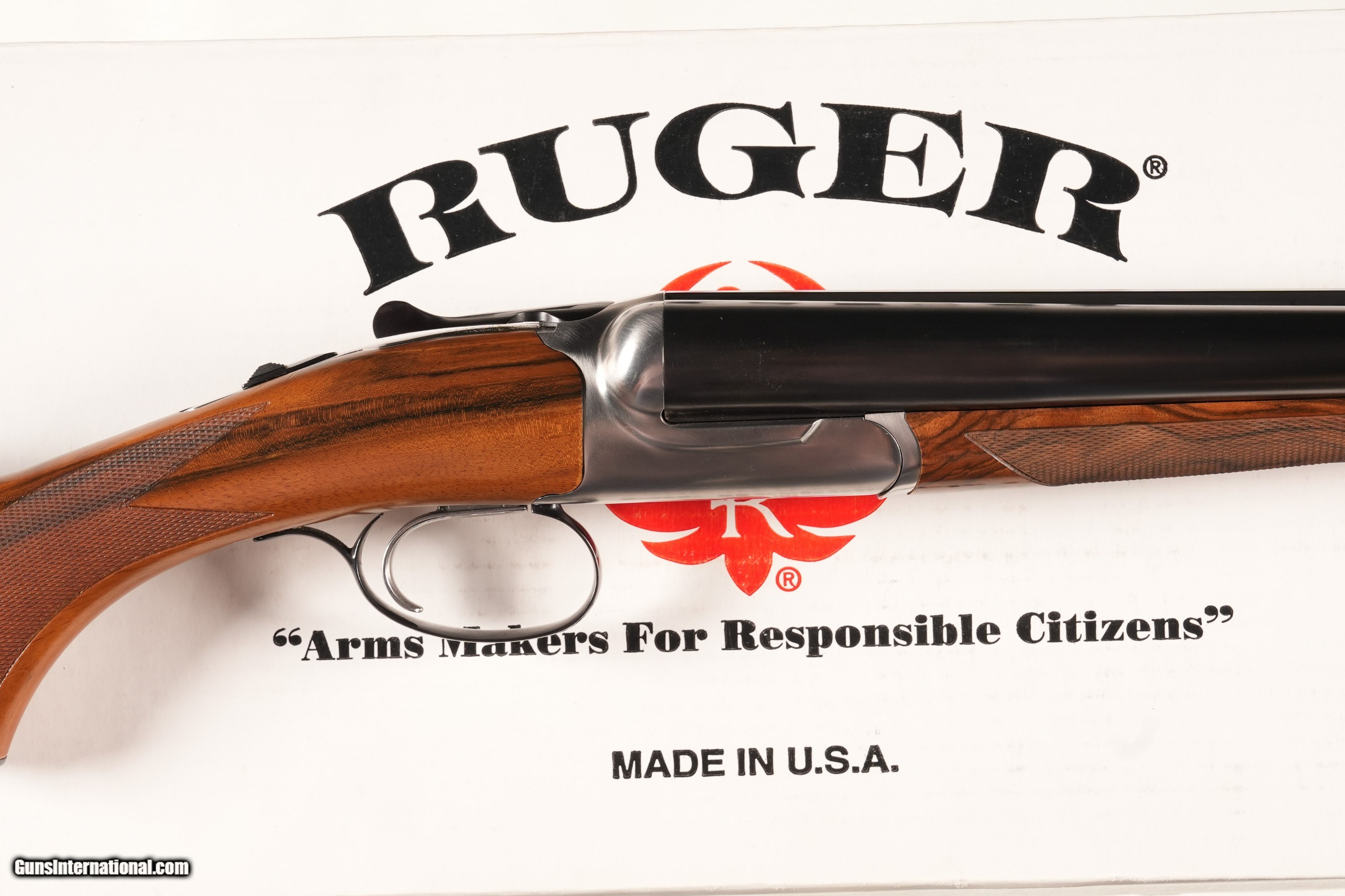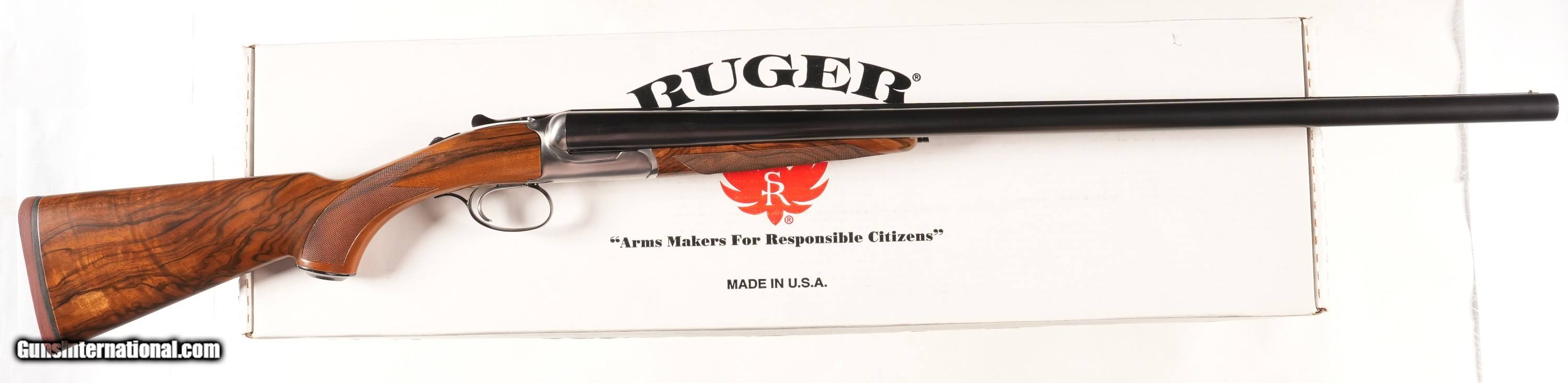 Description: Ruger Gold Label 12 Ga, side by side with 3" chambers 28" Bbl, with interchangeable chokes and wrench. Blue finished Bbl, with stainless steel receiver. Single selective trigger with ejectors. Factory red rubber butt pad. 13 1/2 LOP 1 5/8" DAC 2 1/4" DAH 6 lbs 7 oz. Mounted with very fine highly figured walnut checkered pistol grip stocks with steel pistol grip cap and splinter forearm. Comes in original factory numbers matching box with 3 additional (5 total) thinwall Briley choke tubes, lock, and instructions. Mfd, 2007. Condition, Extremely fine with brilliant bores and excellent overall condition with some very light handling. Mechanically excellent. • Free Shipping, No Credit Card Fees. • Lay-a-way available for this firearm. • 1/3 Down, a 1/3 in 30 Days, 1/3 in 60 Days. SOLD Manufacturer: Ruger Model: Gold Label Serial Number: 460-01840 Barrel Length: 28 |