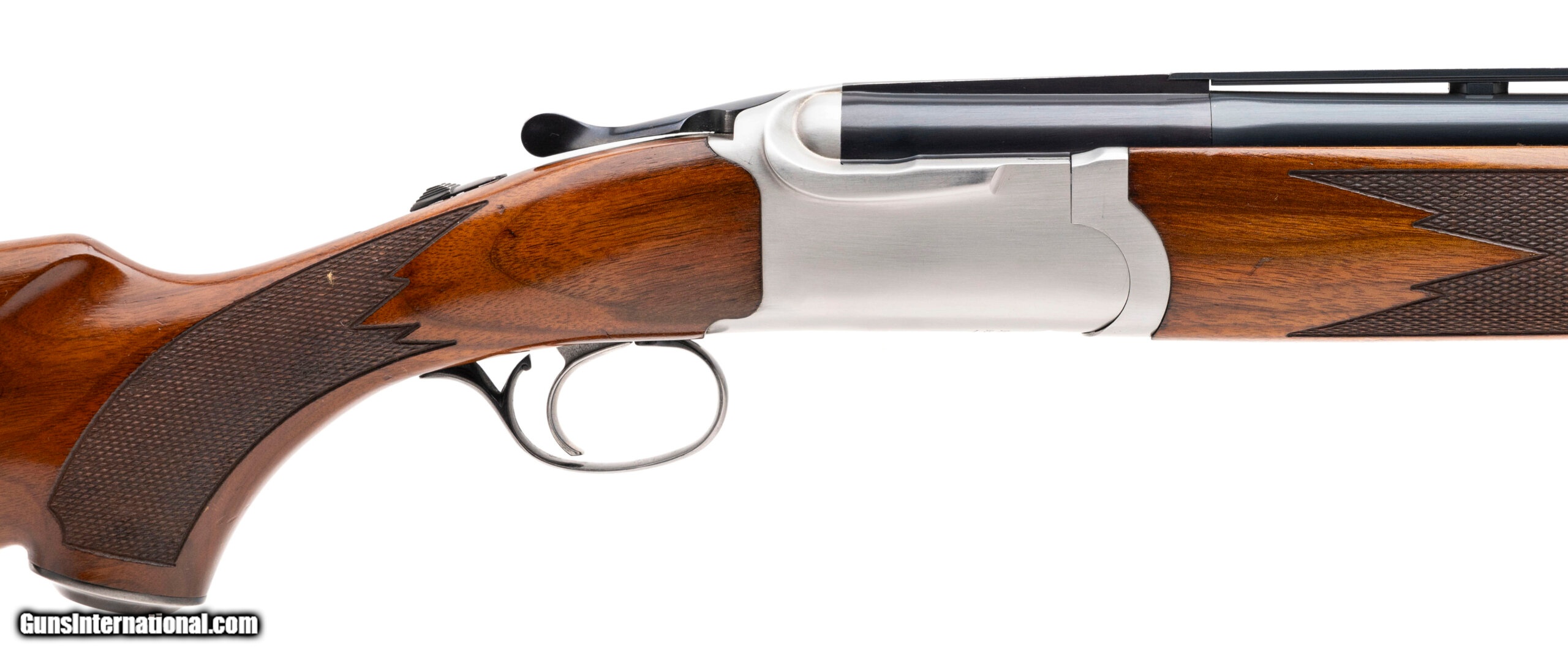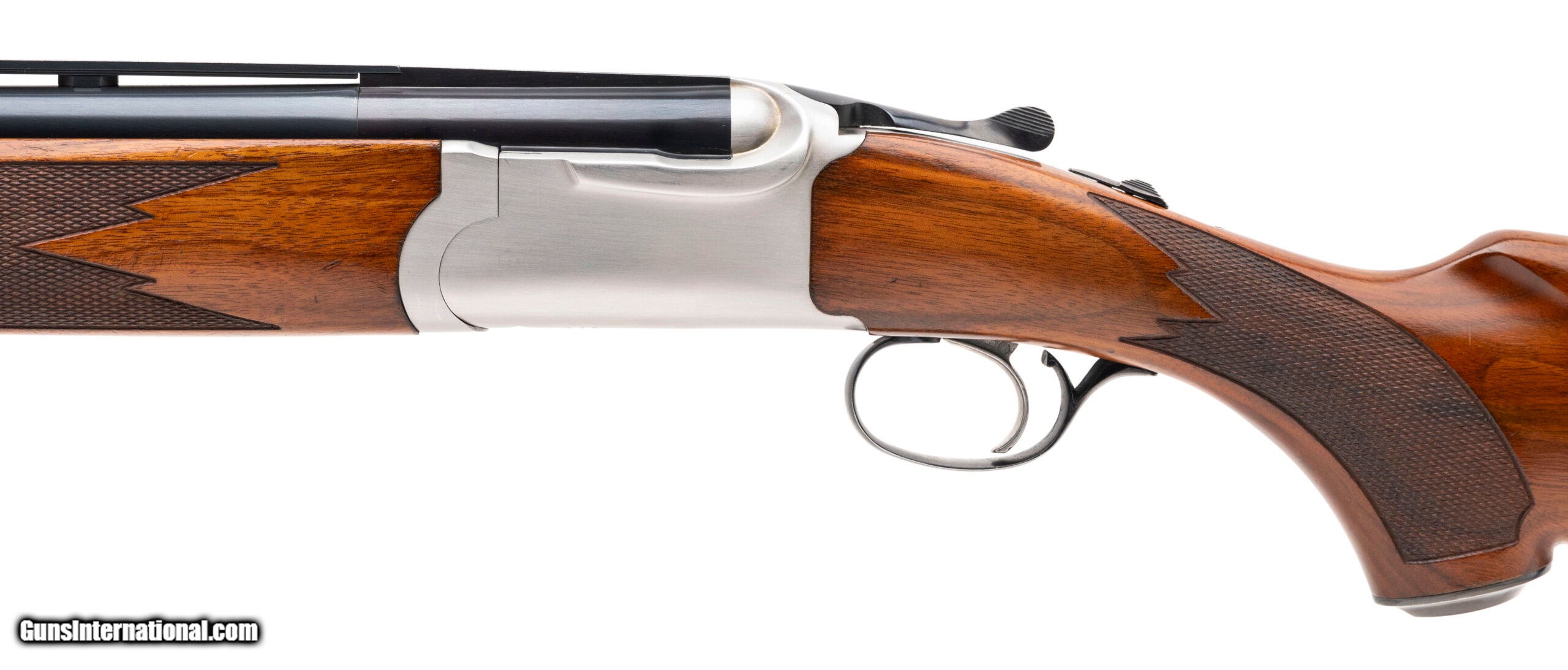 Description: "SN: 411-49844. Made in 2000. 12 Gauge Chambered to 3"" shells with 30"" vent rib barrels with screw in chokes. Bores are in excellent condition. O/U field shotgun with a stainless receiver. Finish is in excellent condition. Checkered walnut stock is in very good condition with field noted. LOP is 14"". Overall condition is excellent. SOLD |