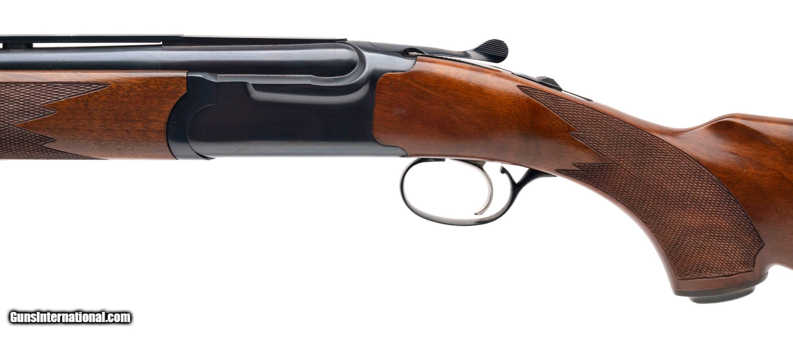 Description: "SN: 400-30935 made in 1981. 20 gauge over under with 26" vent rib barrels, 3" chambers and fixed chokes IC/MOD. Box lock with ejectors, single selective trigger and automatic safety. Blued metal finish and checkered walnut furniture with a 14" LOP to a White Line recoil pad. Overall in very good condition with some light wear and handling marks. Bores are excellent. SOLD |