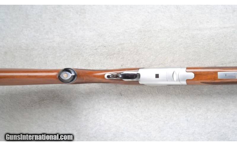 Description: This Ruger Model Over and Under is a 12 Ga. Shotgun. It has 28 inch barrels with ejectors and a top barrel ventilated rib. A brass bead front sight. With 3 inch chambers it comes with choke tubes. The butt stock is a checkered grip walnut pistol grip with a black cap. The forearm is a checkered grip walnut. It has a Single Select Trigger. 12 Gauge SOLD Chambers: 3 inch. Metal Condition: Very Good. A few minor handling marks. Wood Condition: Very Good. A few minor handling marks. Bore Condition: Shiny. Barrels: 28 inch barrels with ejectors and a top barrel ventilated rib. Triggers: SST Stock Dimensions: LOP 14 inches. Fore End: Checkered grip walnut. Butt Pad: Ruger black rubber pad. Weight: 8 lb. 2 oz. Sights: Brass bead front. Chokes: Comes with choke tubes. Item Location: Richfield, WI |