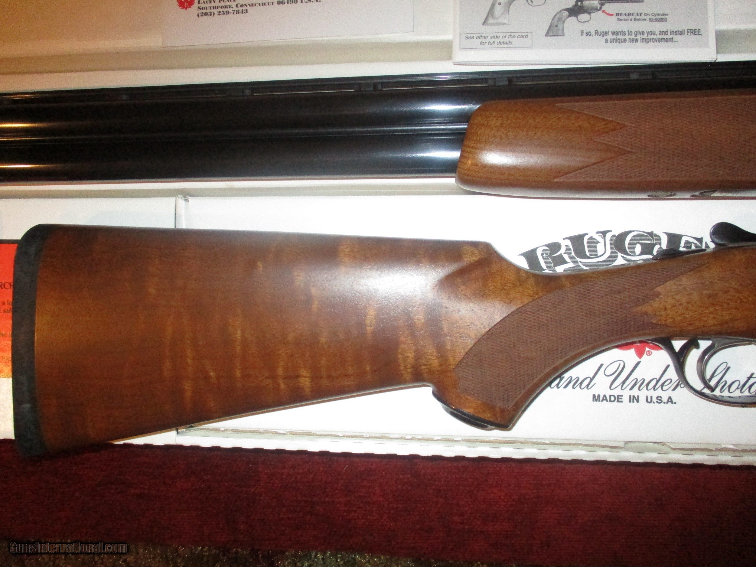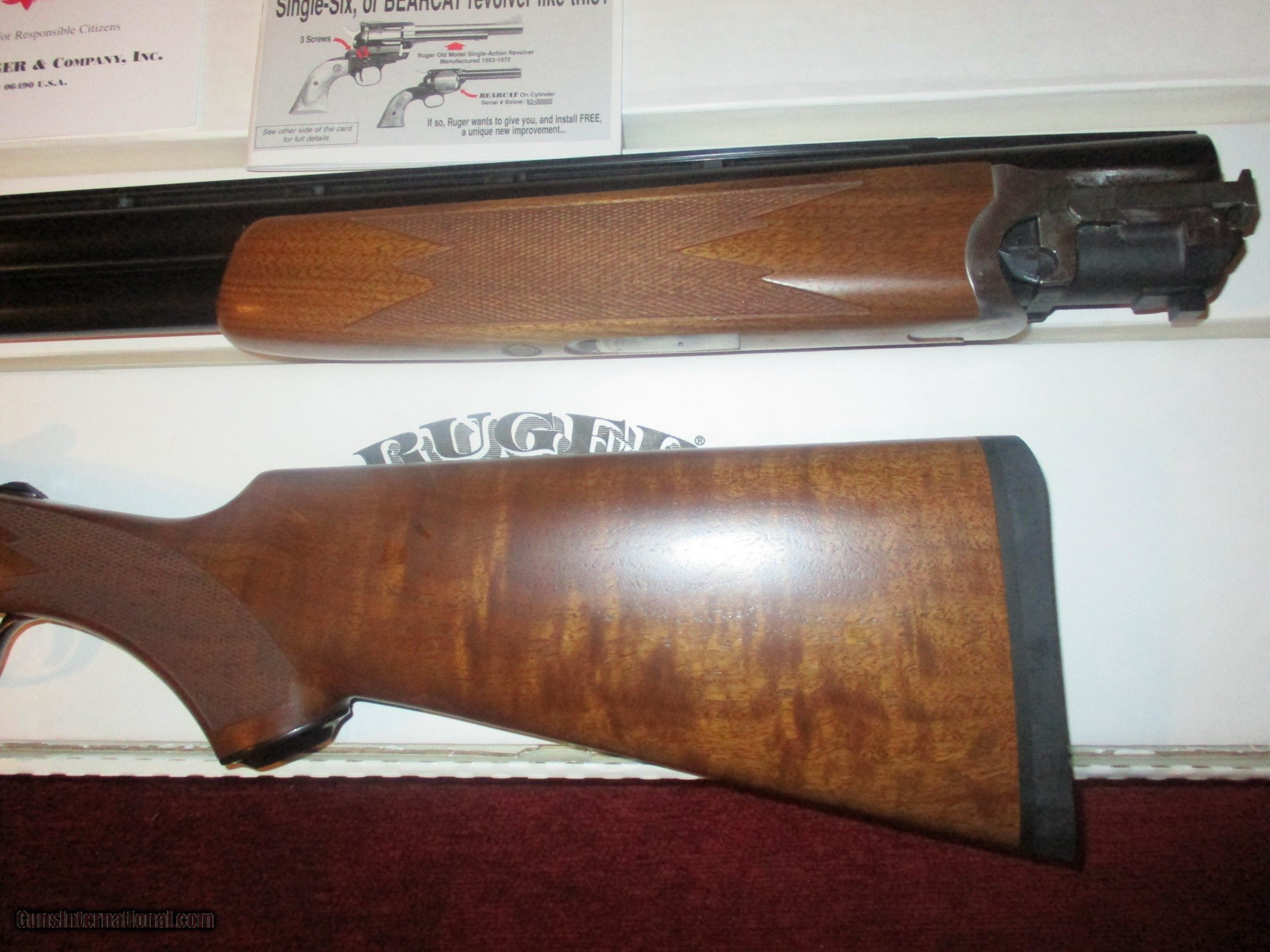 Description: #" chambers28" VR 5 Ruger chokes, single select trigger, ejectors, nicely figured Circassian walnut, 14 3/8" LOP over 3/4" factory pad, unfired, unassembled, in box, manual, great duck/turkey piece!! SOLD |