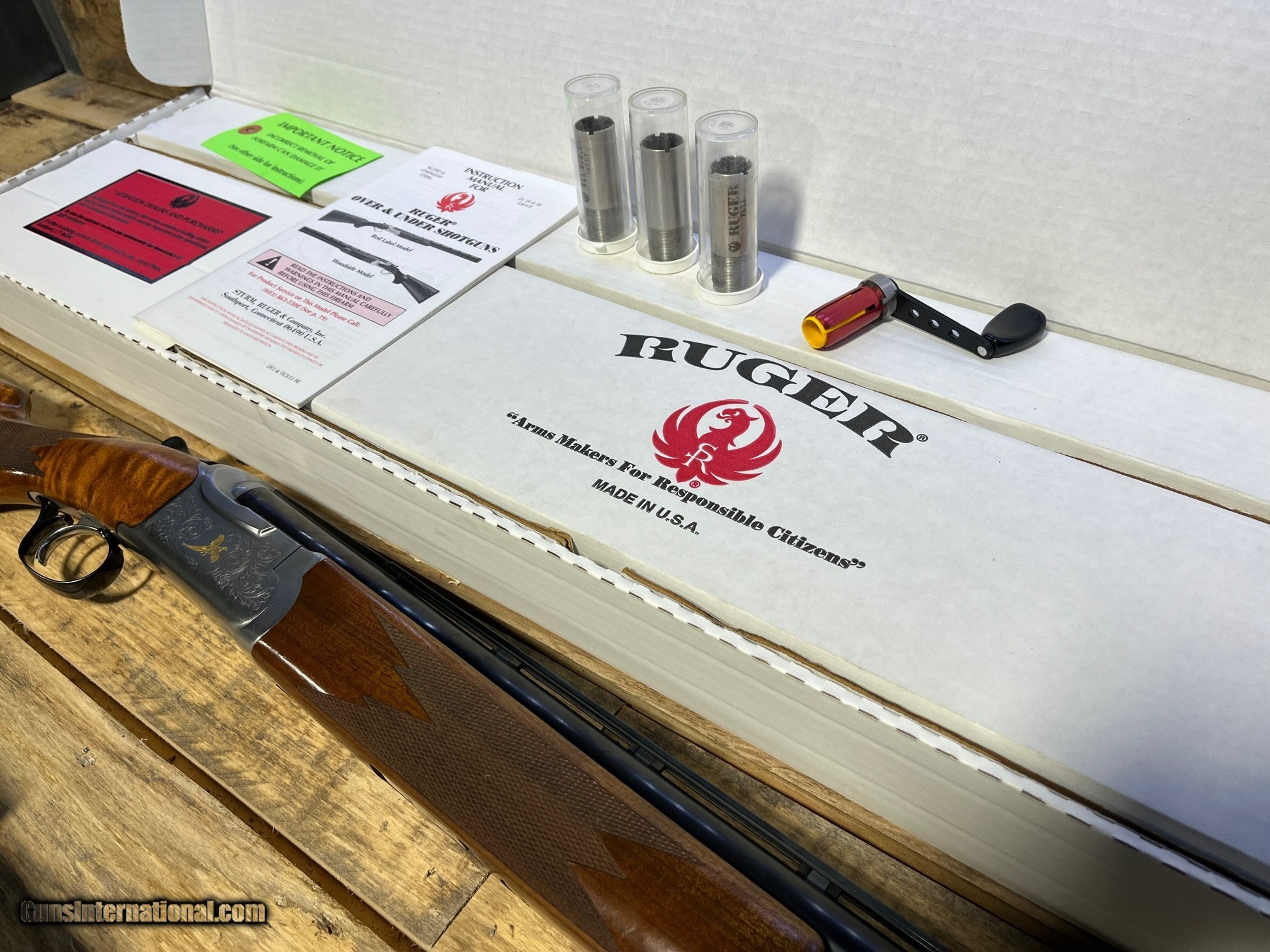 Description: Very Clean Representation Original Box and Paperwork 5 Chokes w/ Wrench SOLD Shotgun Gauge: 12 Gauge Manufacturer: Ruger Model: Red Label Barrel Length: 411-66714 Chambers: 3 Ejectors: Yes LOP: 14 Rib: Vent Weight: 7 lbs 11.2 oz Sights: Single Bead Chokes: 5 Engraving: YES Extras: Original Box, Paperwork Case: Original Box, Paperwork |