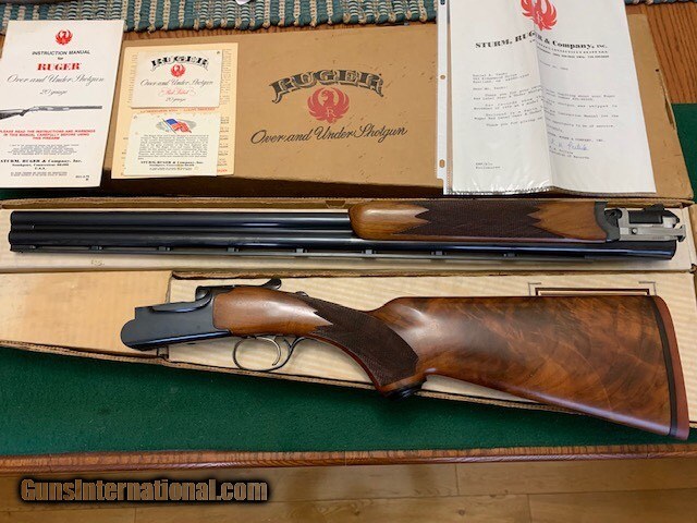 RUGER RED LABEL 20 GA.,26” SKEET & SKEET, BEAUTIFUL BURL WALNUT WOOD, 99% COND. IN THE BANJO BOX WITH OWNERS MANUAL