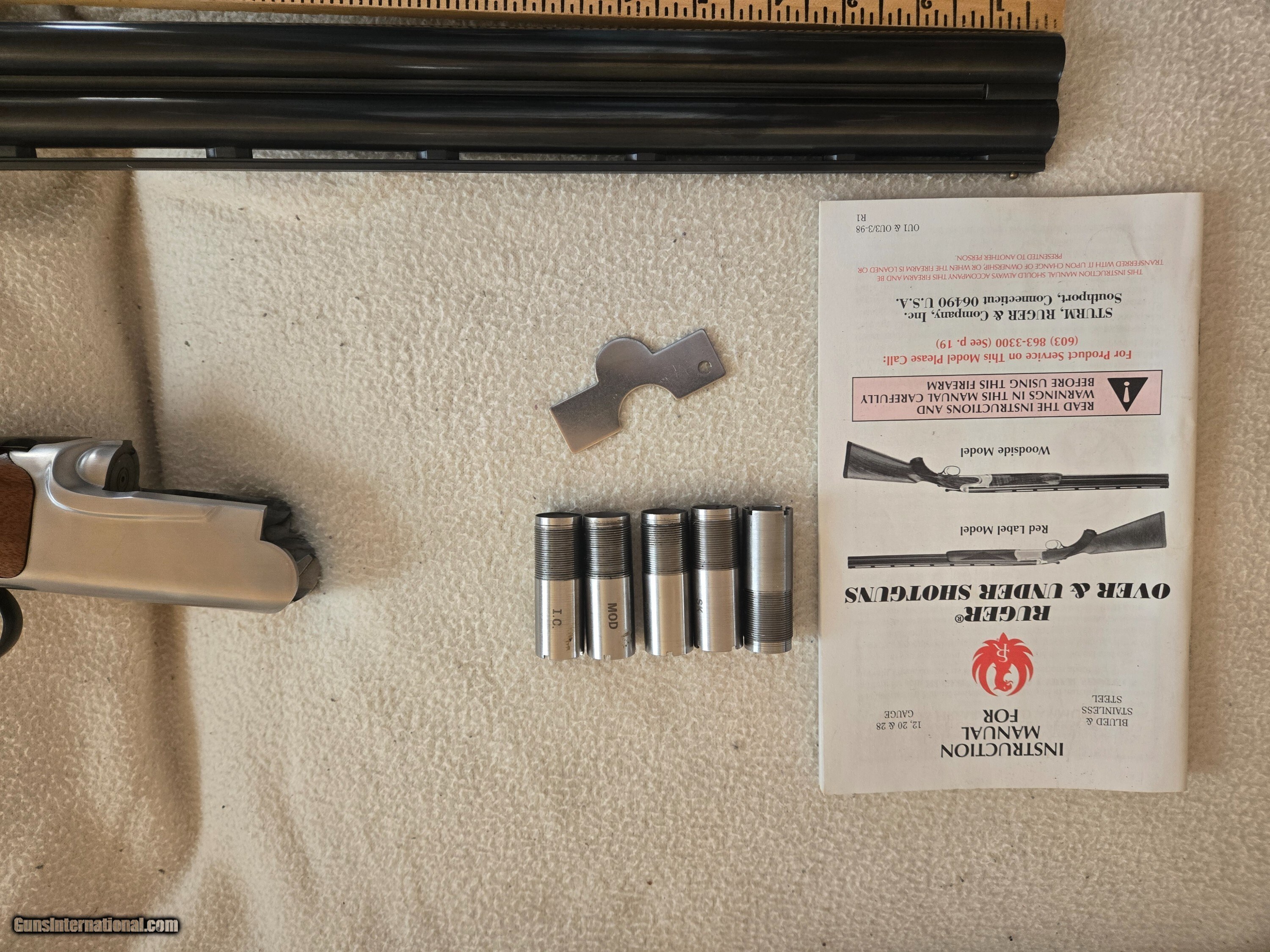 Description: As new no box. Has been fired but not a mark on this gun. Comes with 5 chokes and wrench and owner manual. The only thing missing is the box! Full,mod,IC, and 2 skeet tubes. Barrels are 26" as pictured. 3" chambers. Beautiful addition to your shotgun collection . Shotgun Gauge: 20 Gauge Manufacturer: Ruger Model: Red label Serial Number: 401-09900 Barrel Length: 26 Chambers: Excellent Condition: Excellent Metal Condition: Excellent Wood Condition: Excellent Bore Condition: Excellent Barrel Type: O/U Triggers: One Chokes: 5 Price: $2,350.00 Shipping: $50.00 Contact Seller |